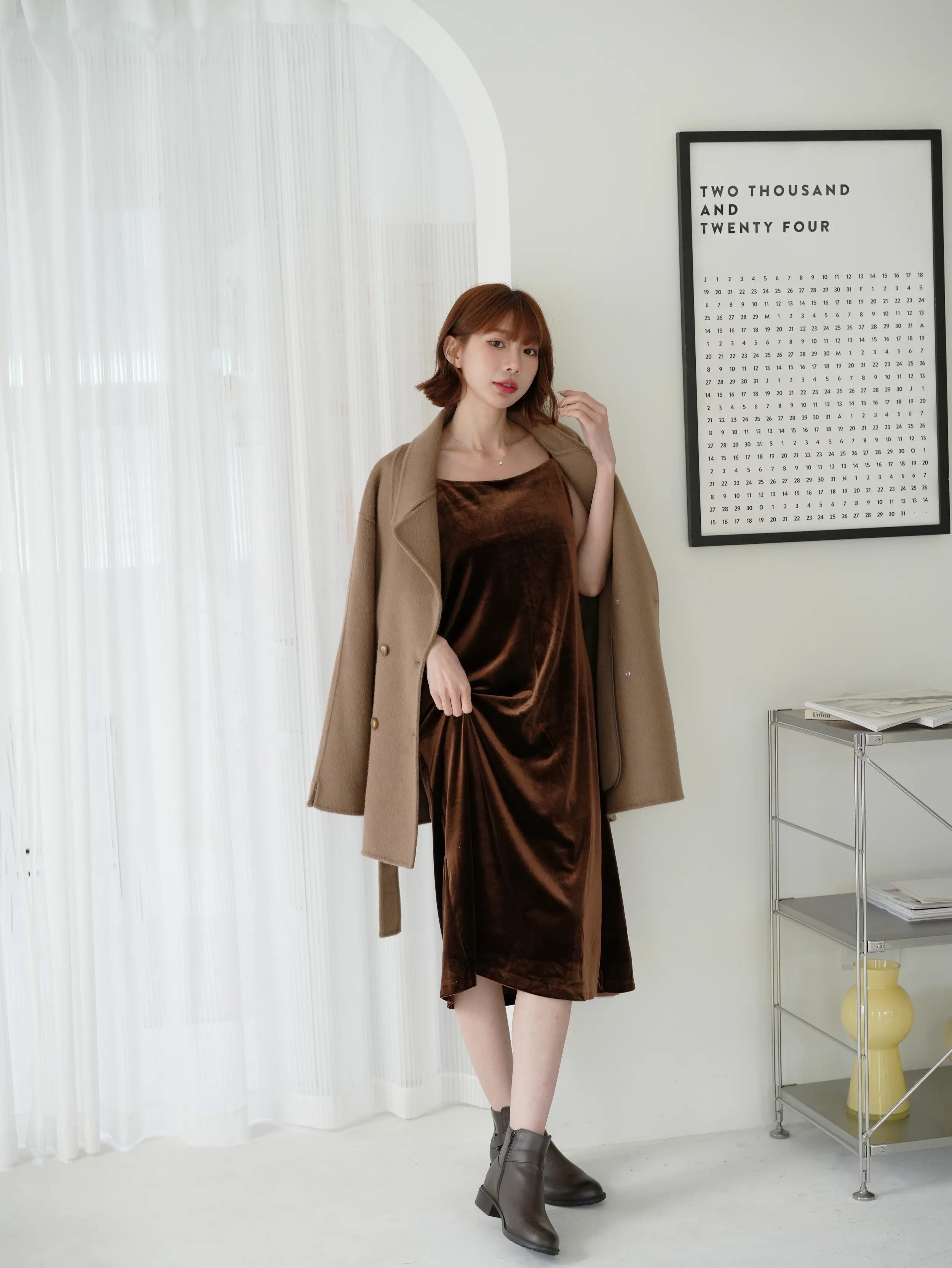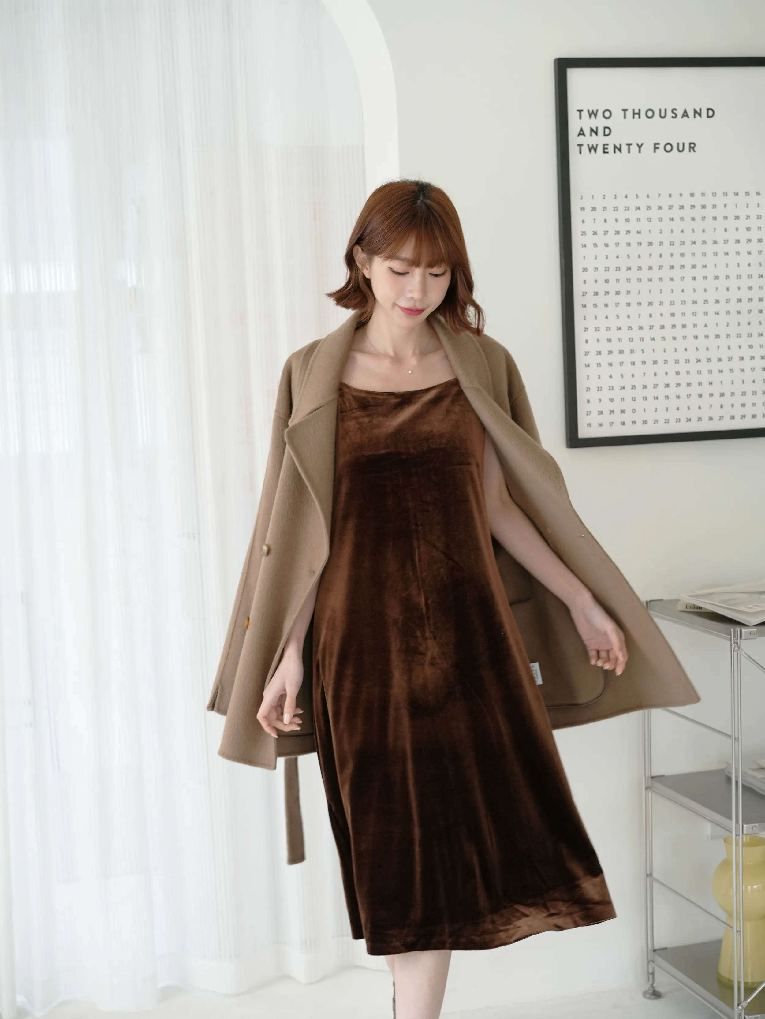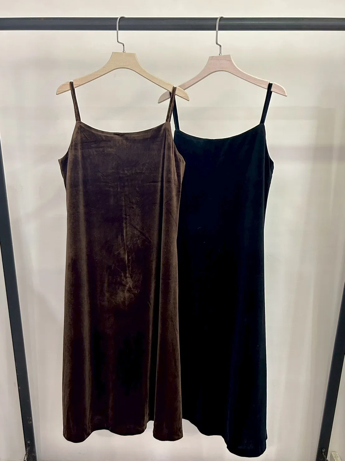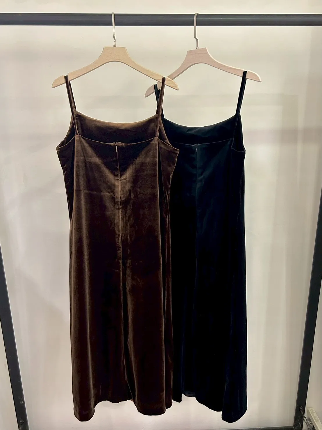 J07 天鵝絨後拉鍊細肩帶洋裝
