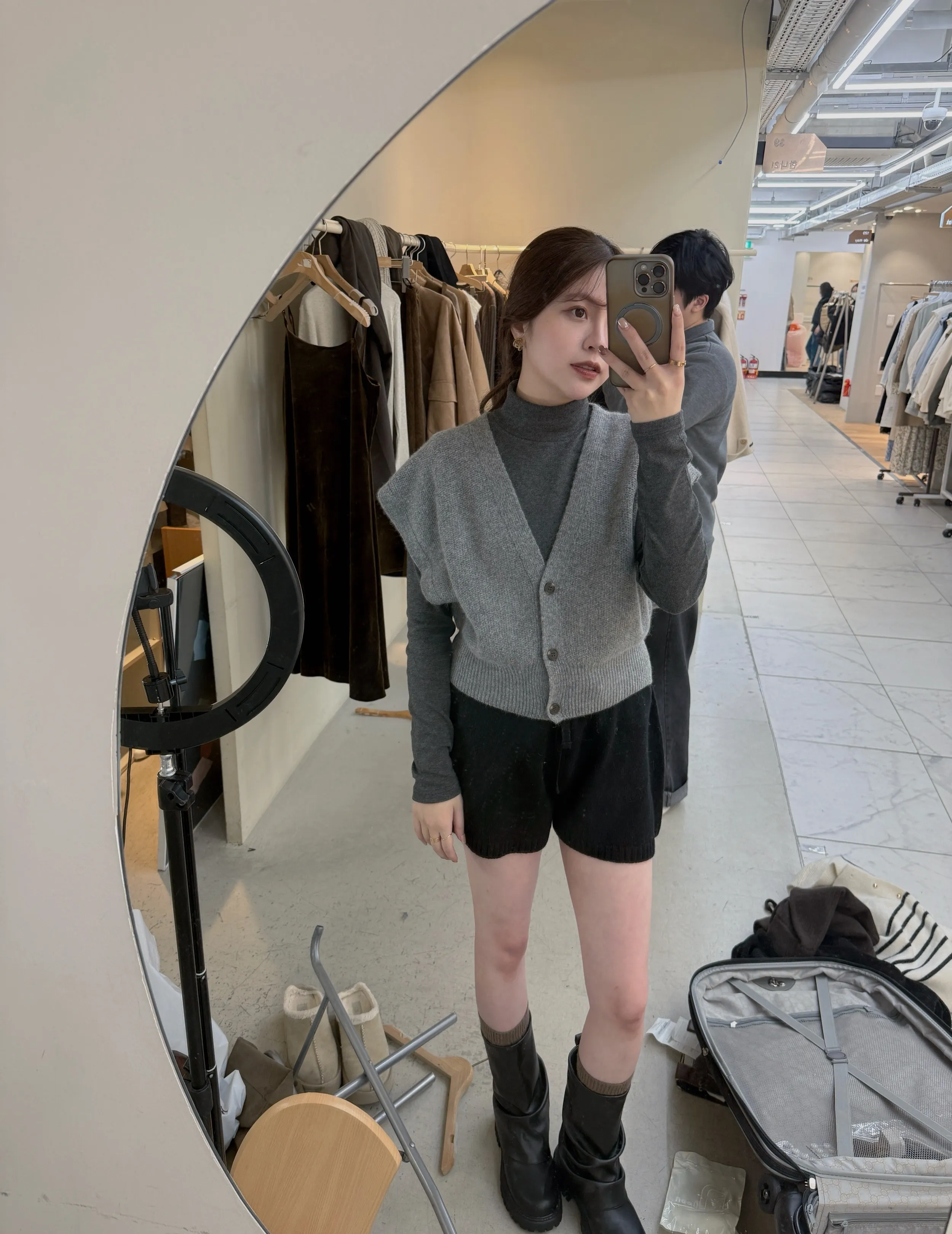 J10 Cashmere30%羊毛落肩V領排釦背心