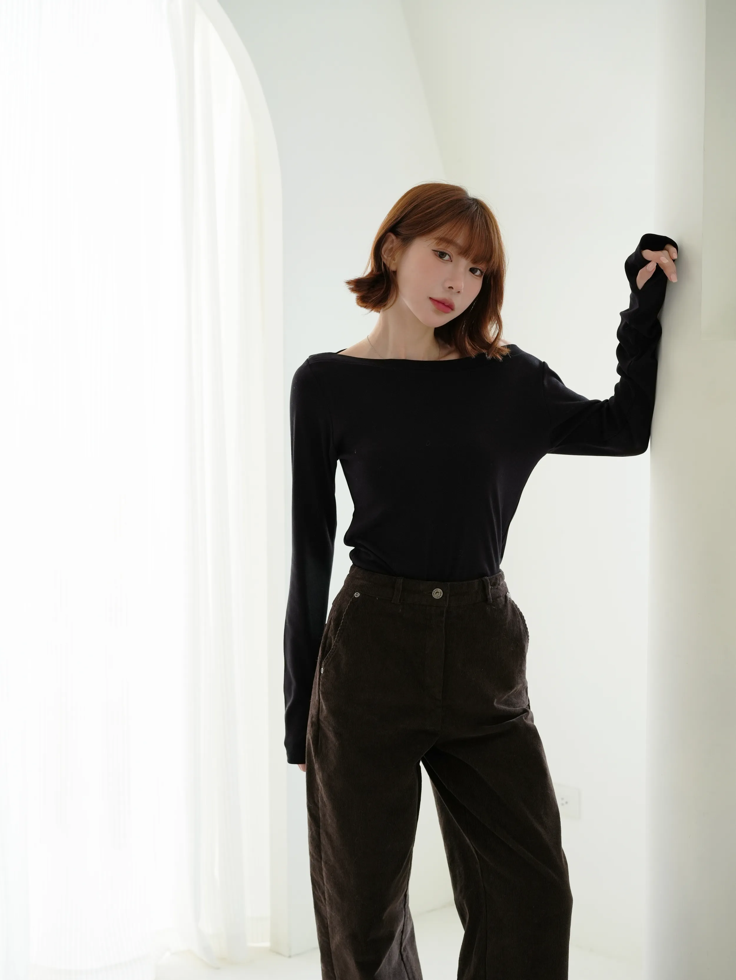 Y14 直坑條微寬直筒燈芯絨長褲
