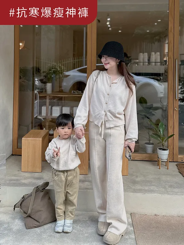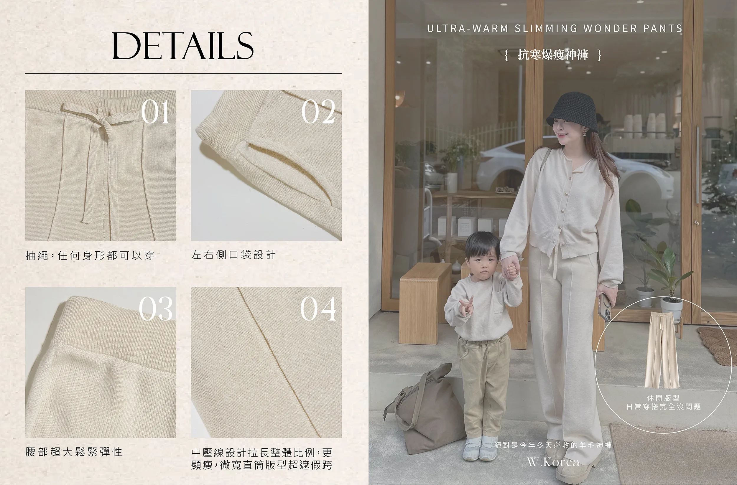C01 #抗寒爆瘦神褲 10%羊毛中壓線鬆緊抽繩爆瘦微寬直筒休閒神褲