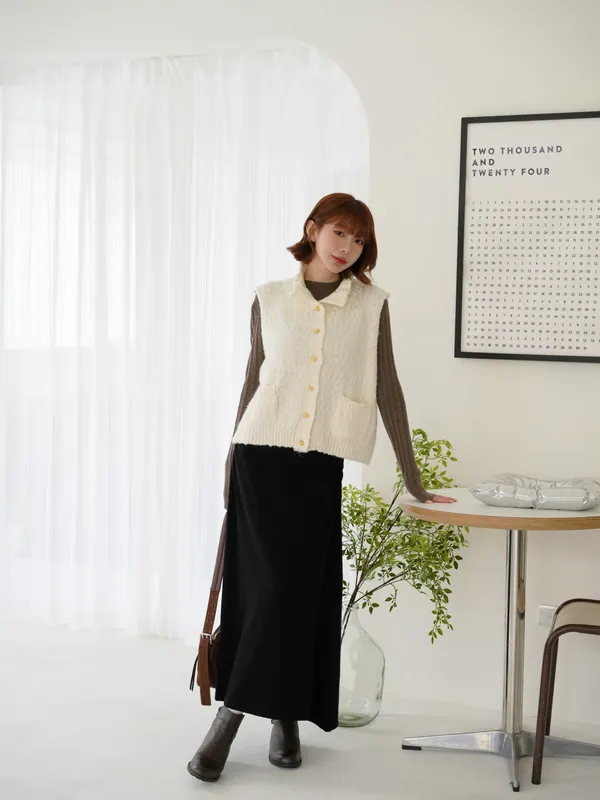 C02 #敲響聖誕 25%羊毛金釦立領雙口袋背心