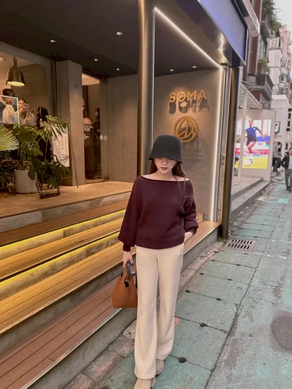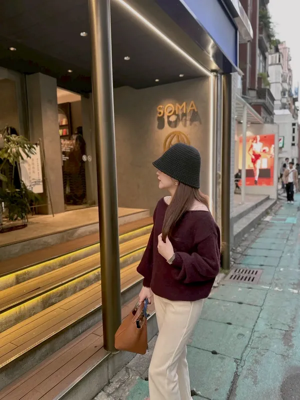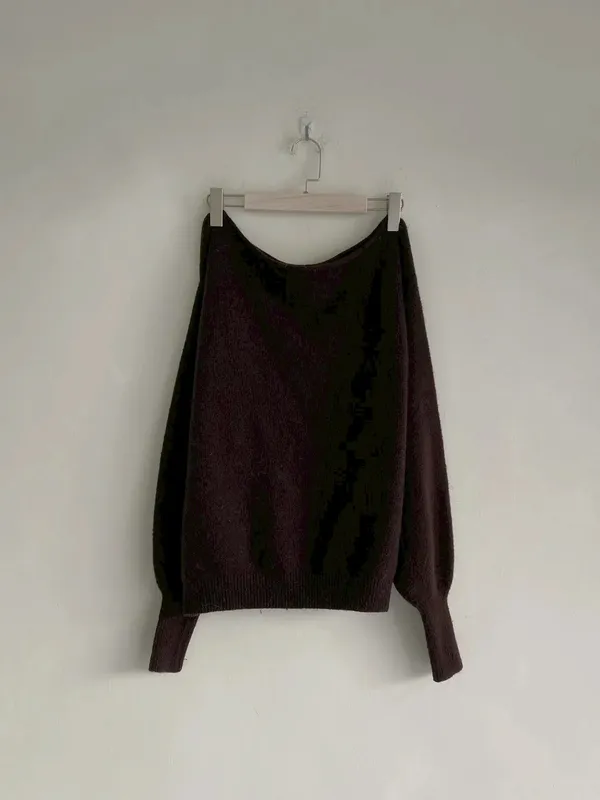 B08 30%馬海羊毛斜肩針織上衣