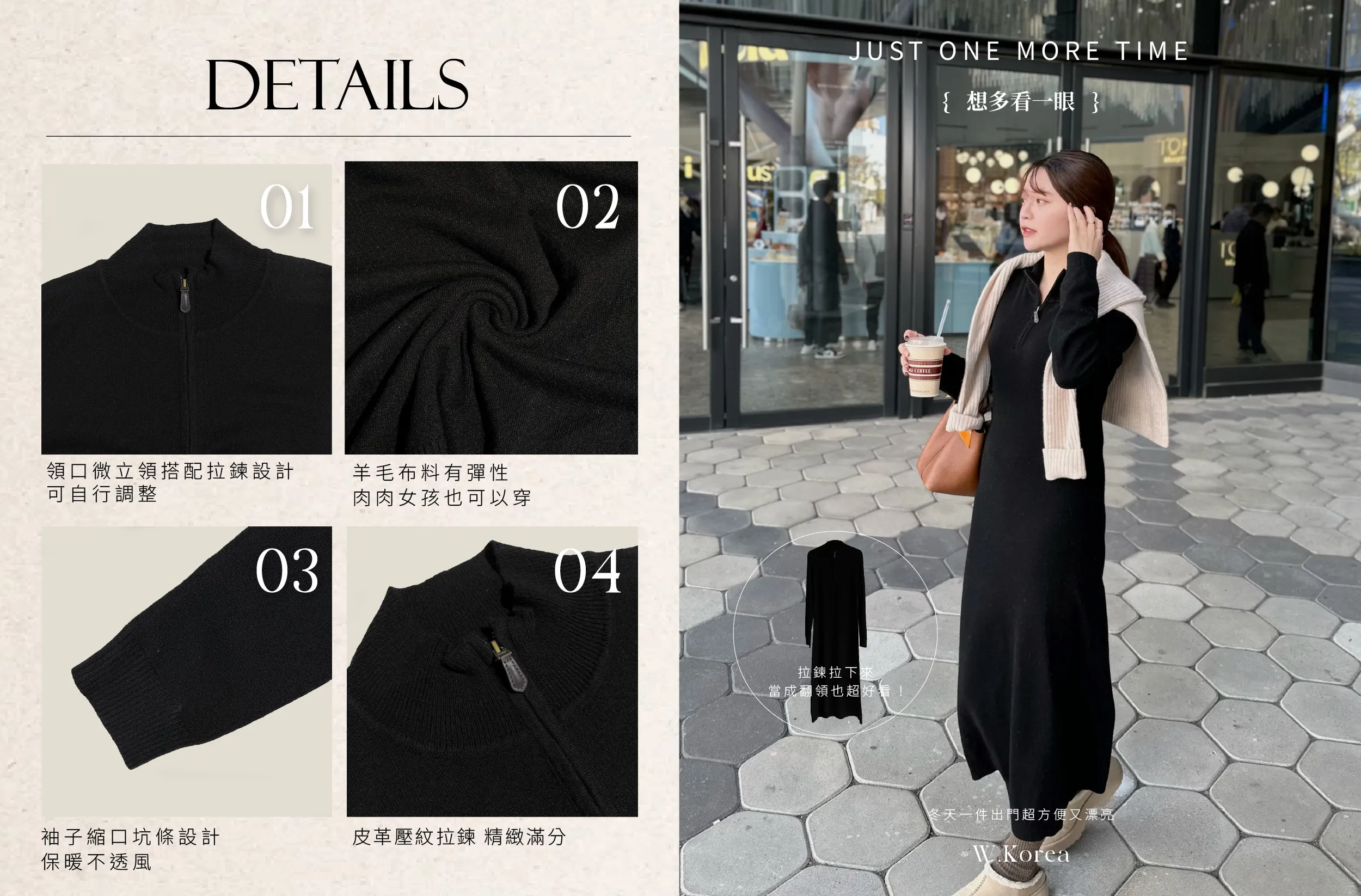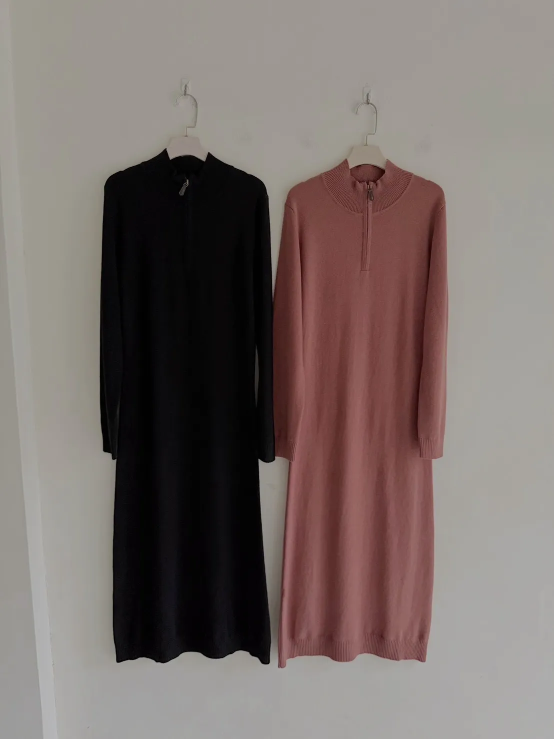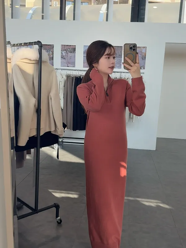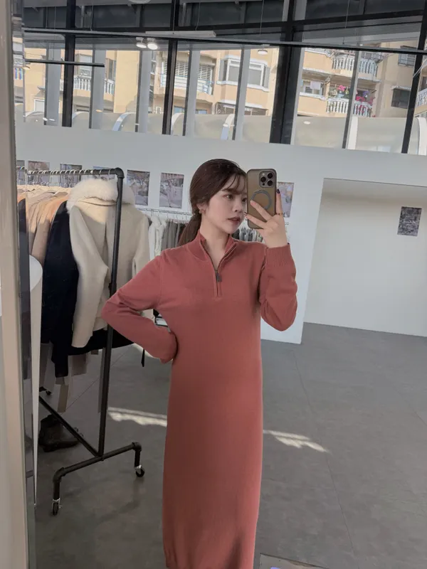 T02 #想多看一眼 Cashmere+美麗諾羊毛25%翻領拉鍊連身長洋