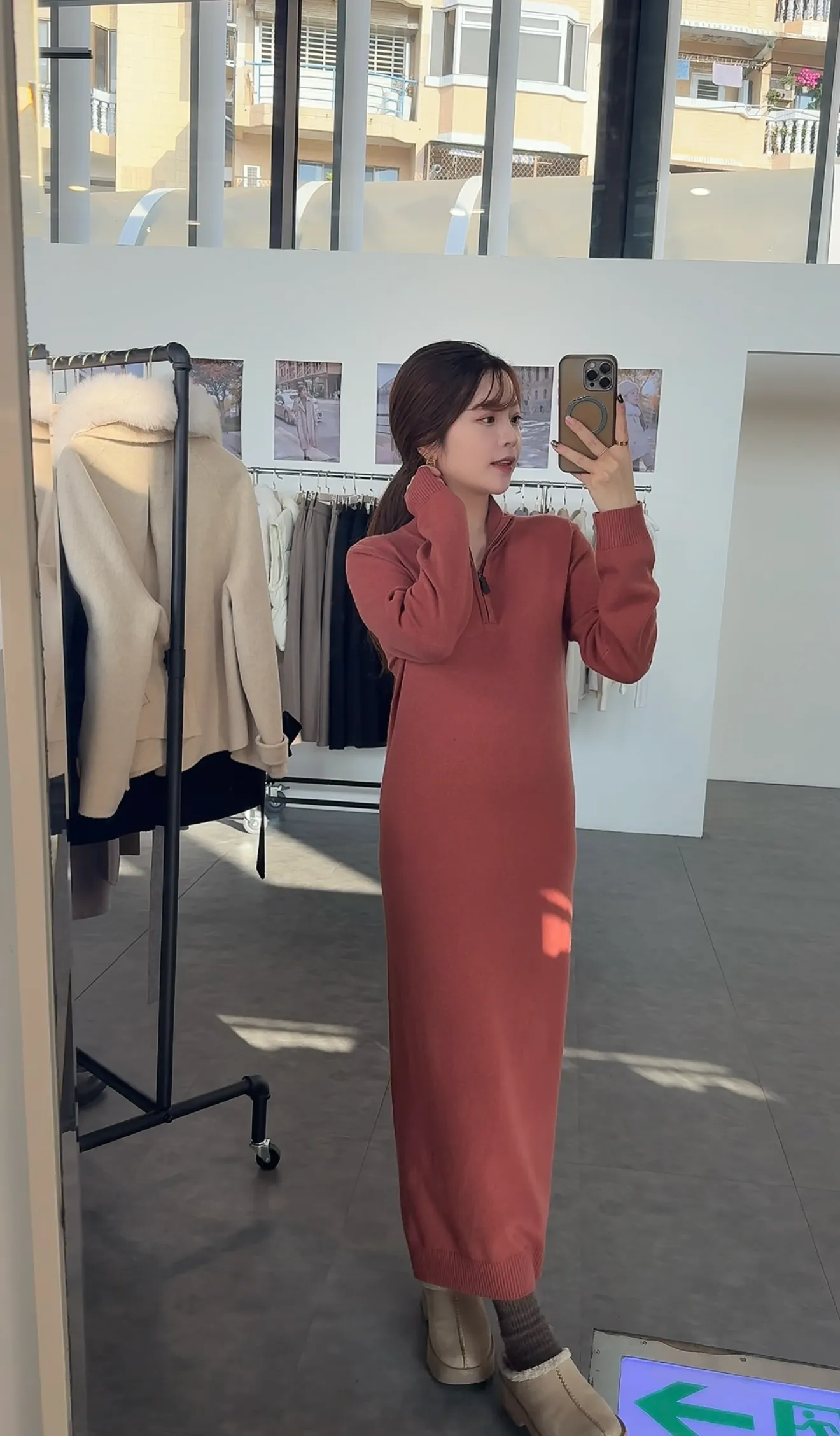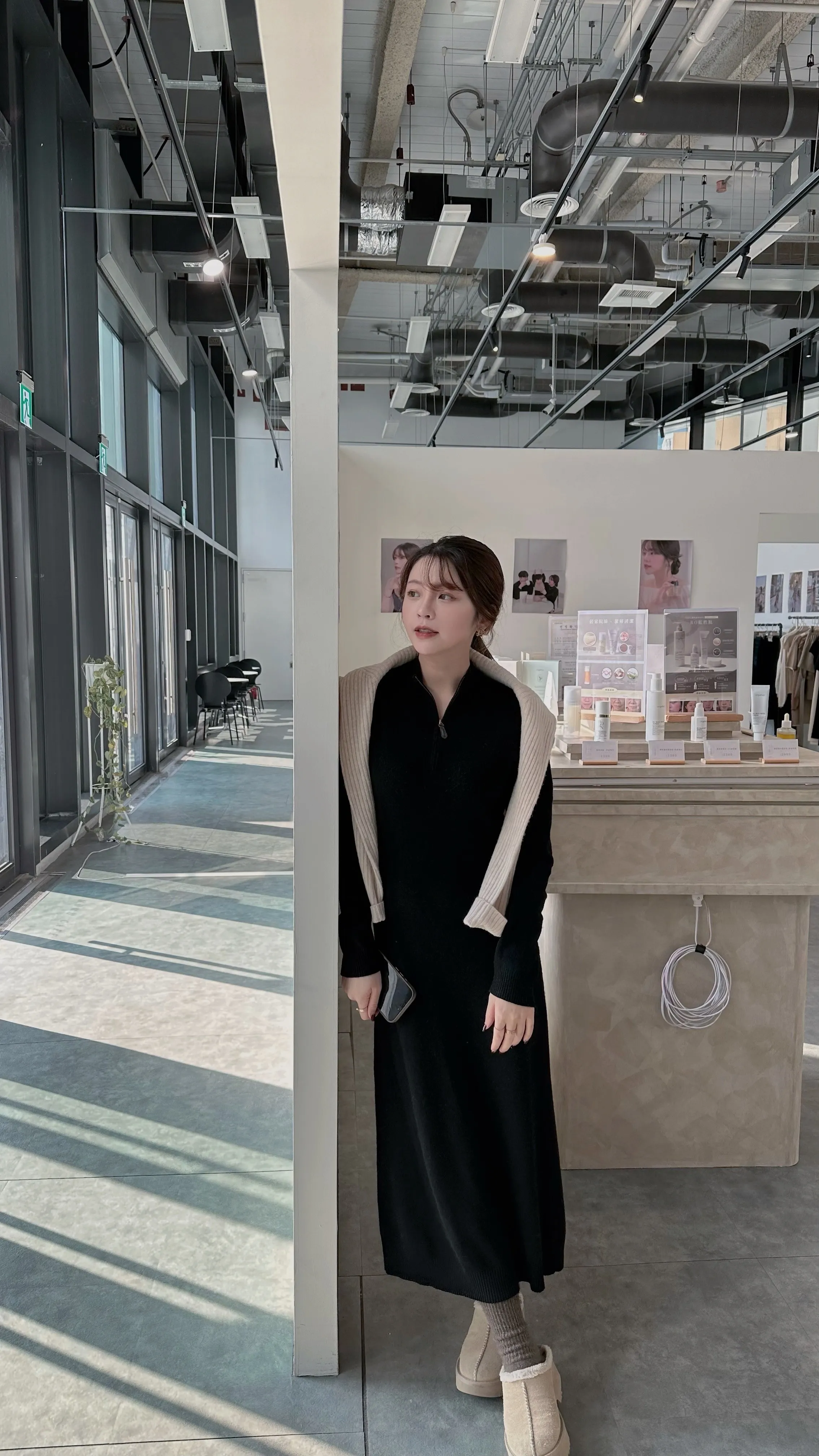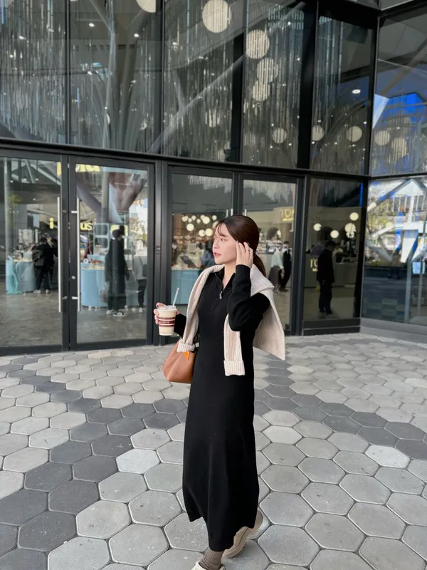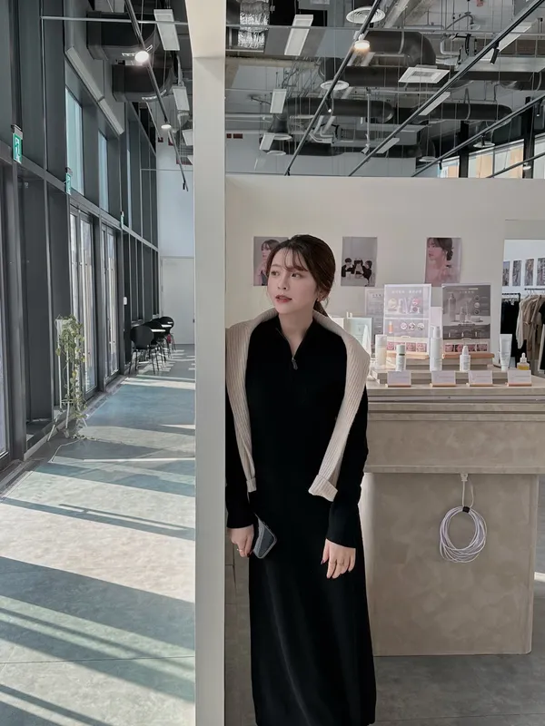 T02 #想多看一眼 Cashmere+美麗諾羊毛25%翻領拉鍊連身長洋