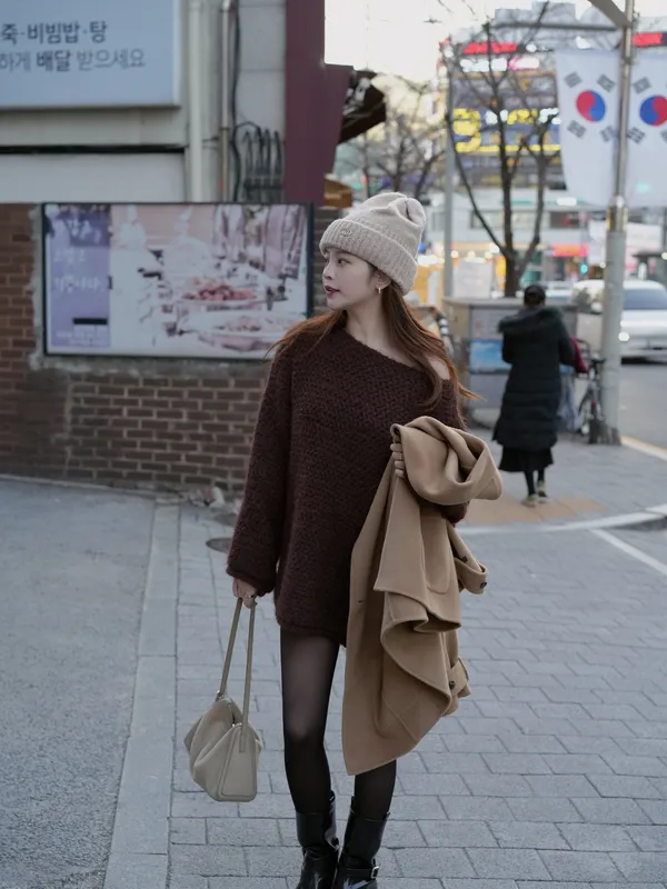 T14 大領口粗針織上衣