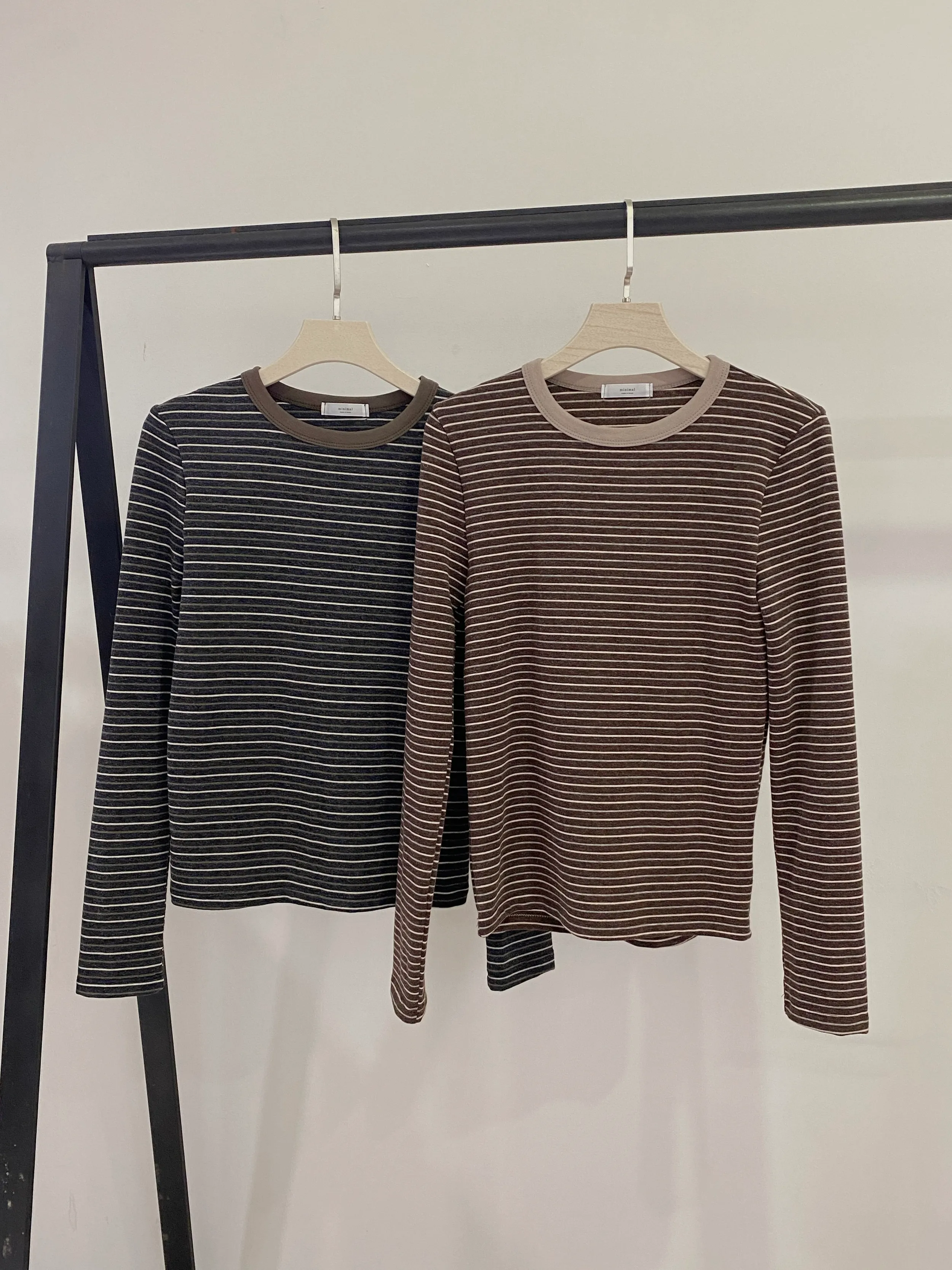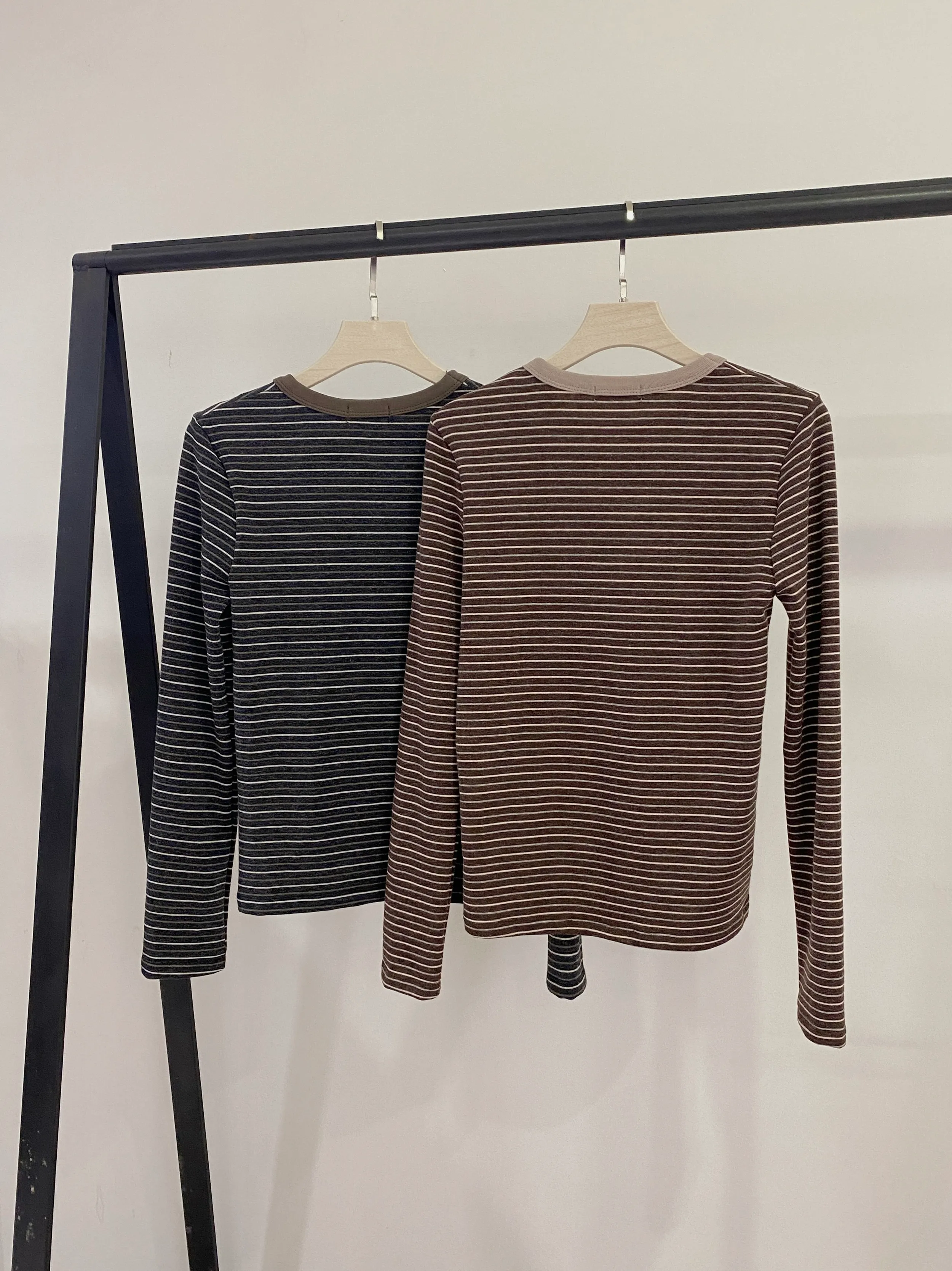 T19 撞色領條紋長袖上衣