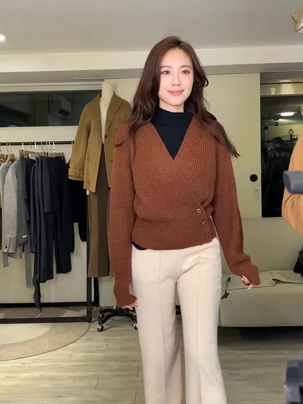 H04(高級區限量現貨)50%羊駝毛V領側排釦針織開衫