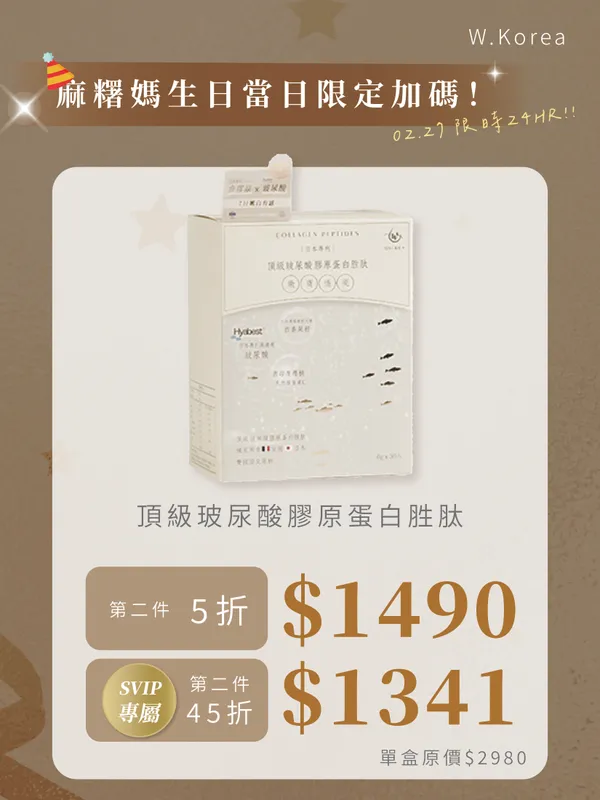 W.Korea 水女人 頂級玻尿酸膠原蛋白胜肽【2盒】