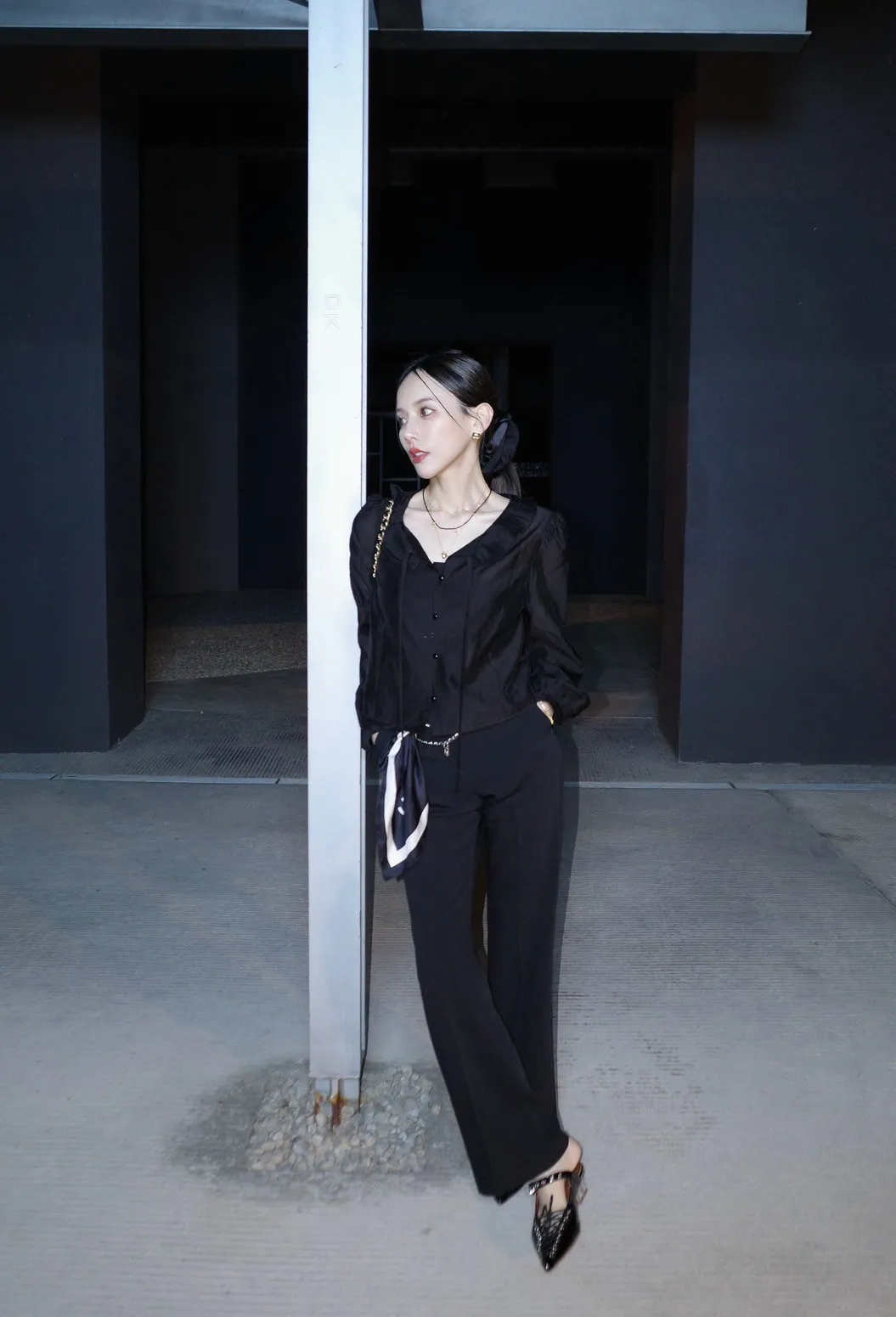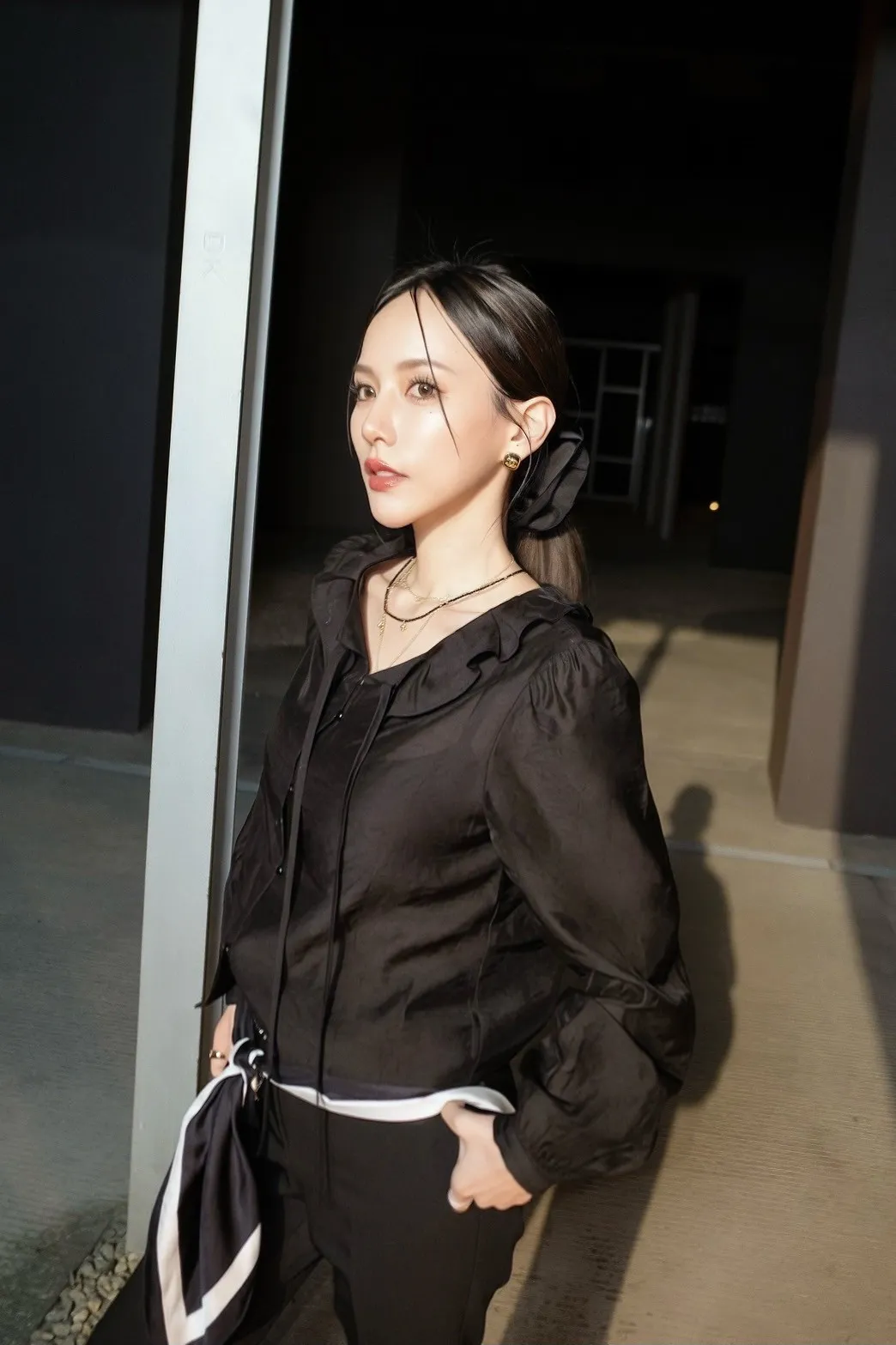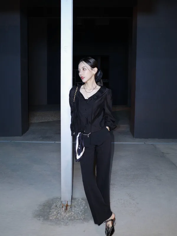R13 荷葉百褶領綁帶上衣