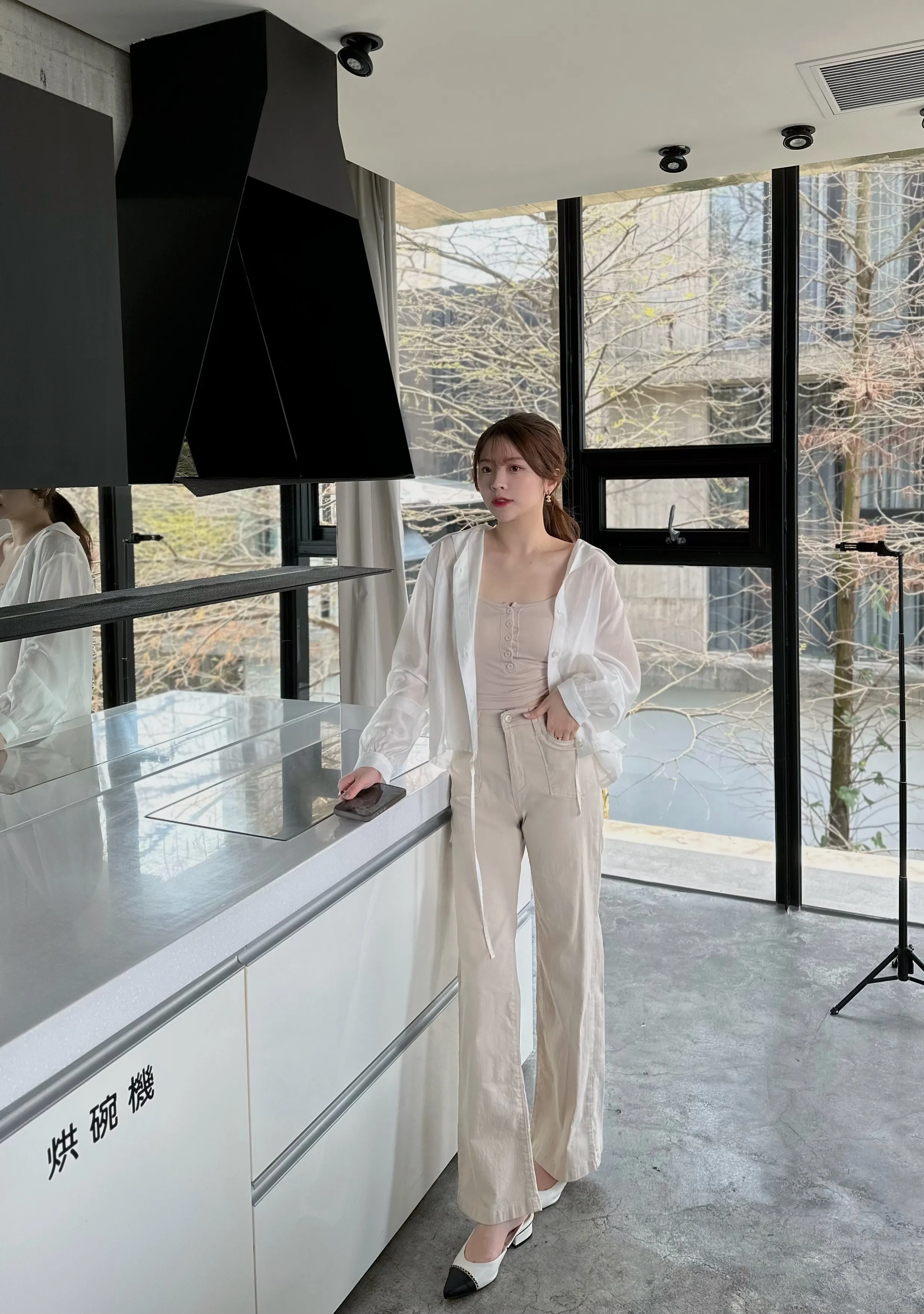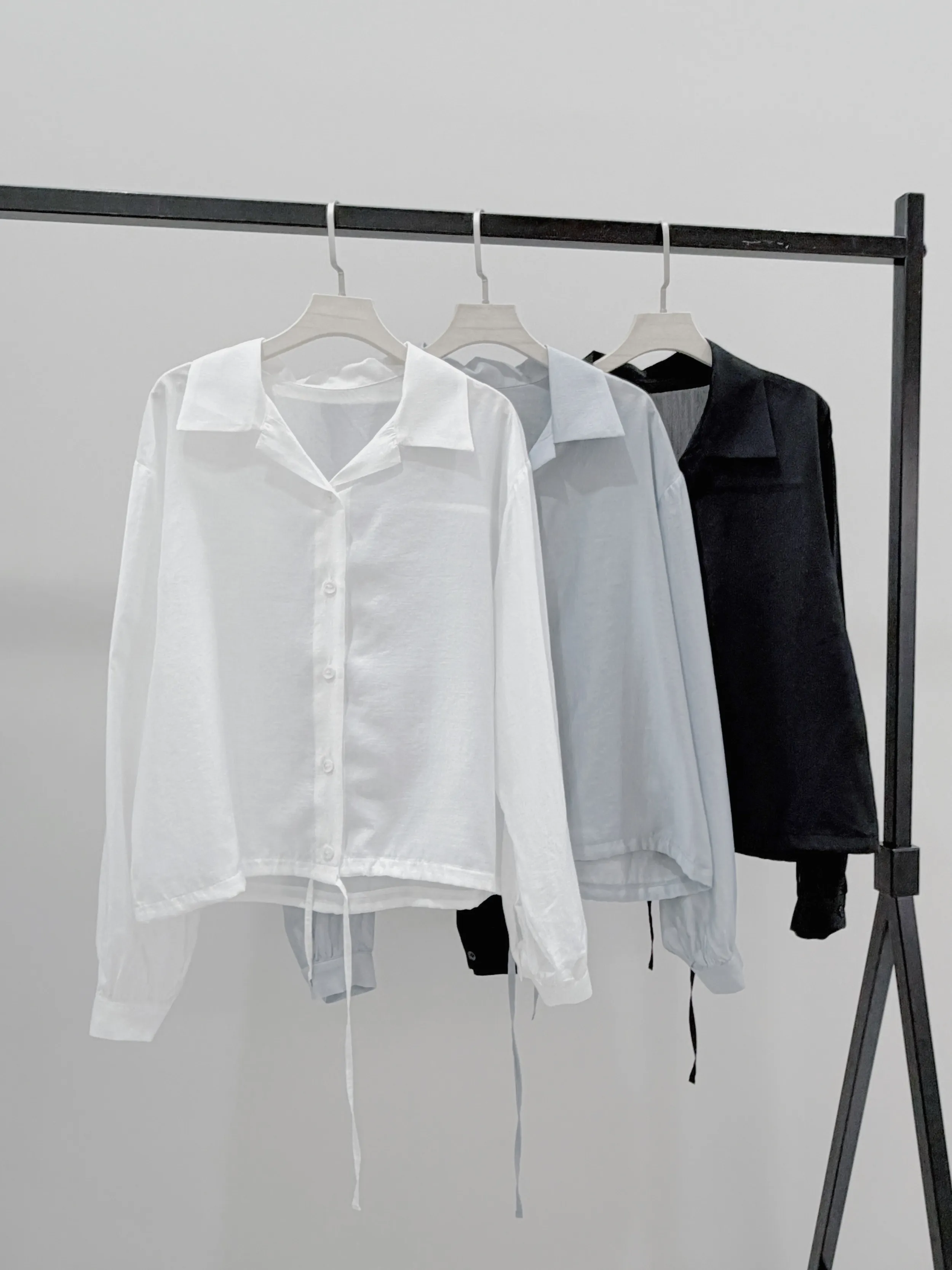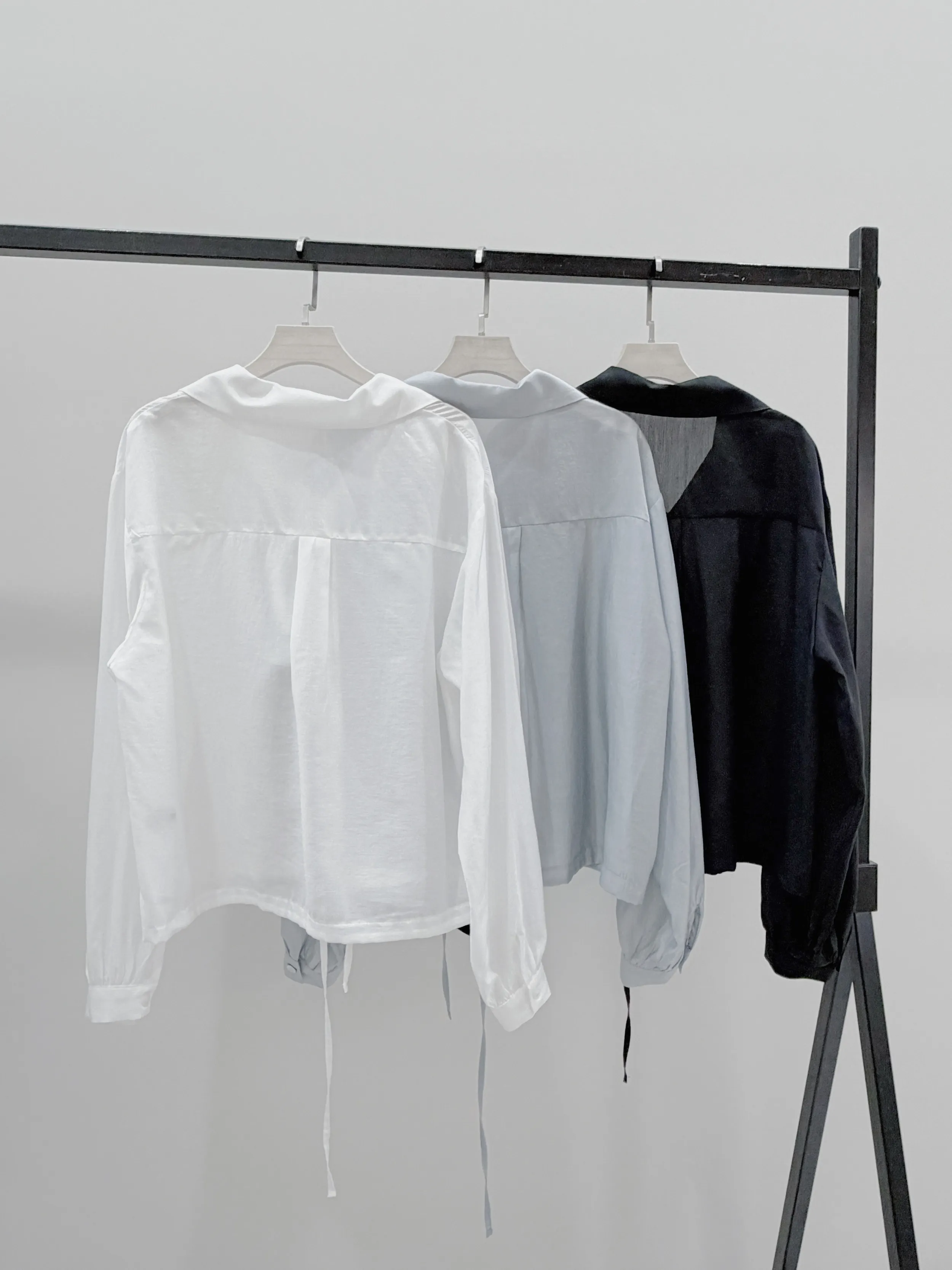 M01 天絲下擺抽繩微透膚壓褶襯衫