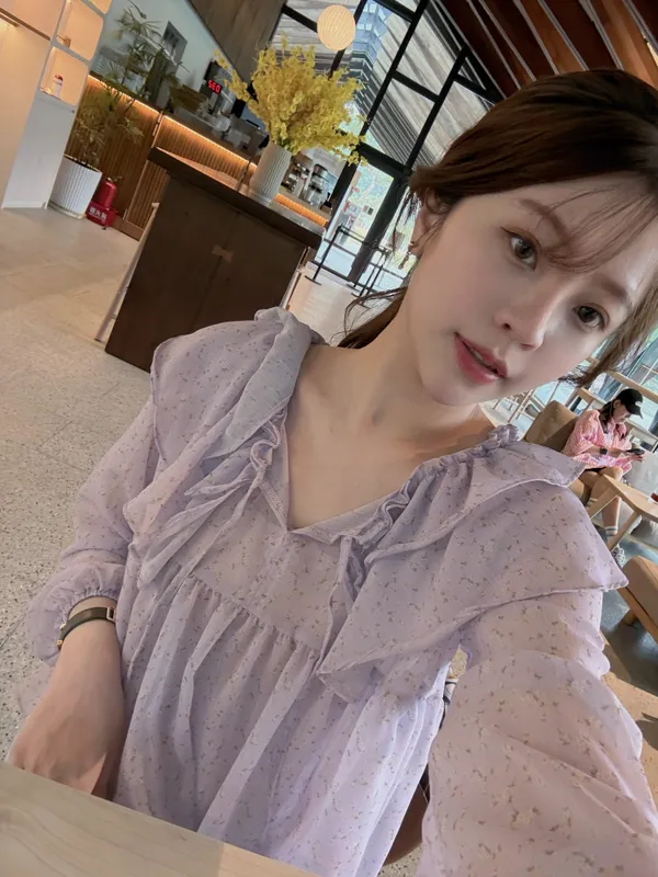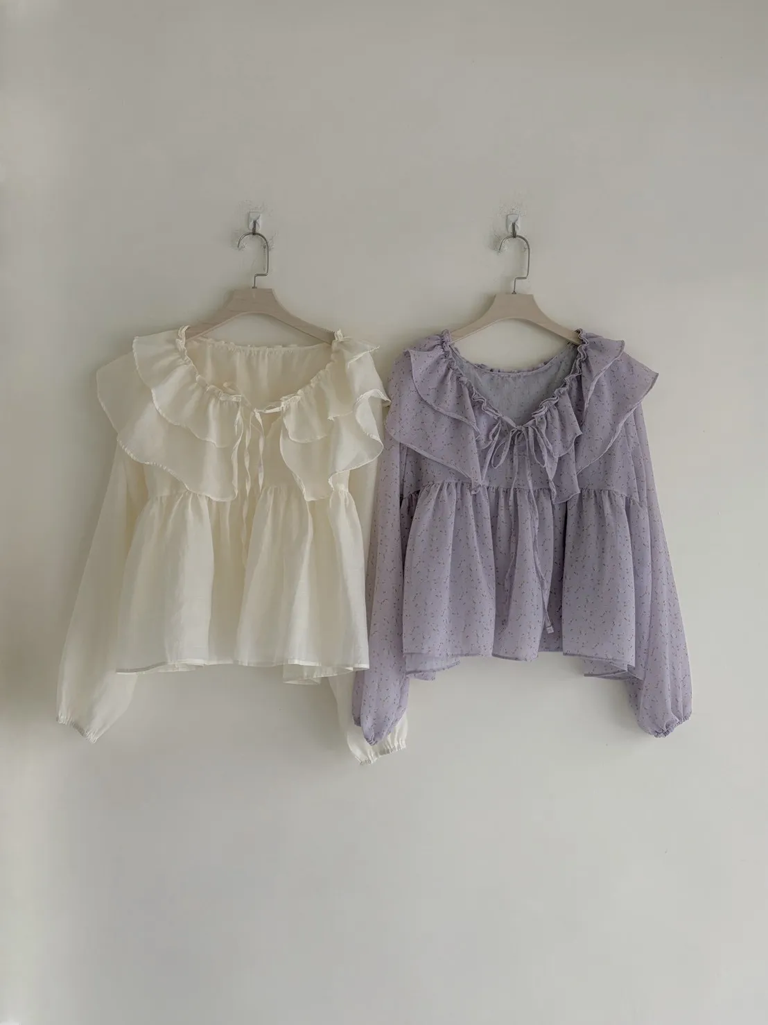 M05 #春日晨光 微透膚蛋糕領綁帶上衣