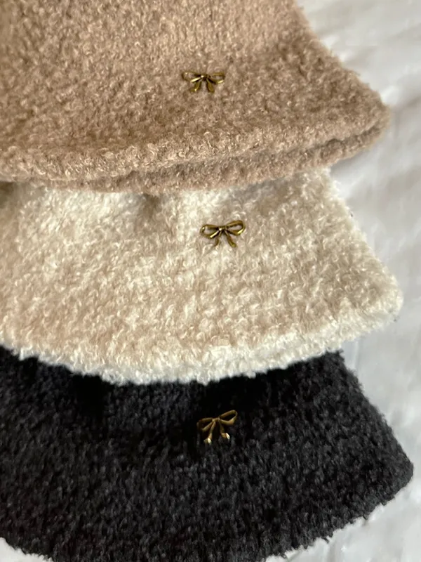 (完售釋出)A101515 蝴蝶結高級金釦瘦臉鐘型帽