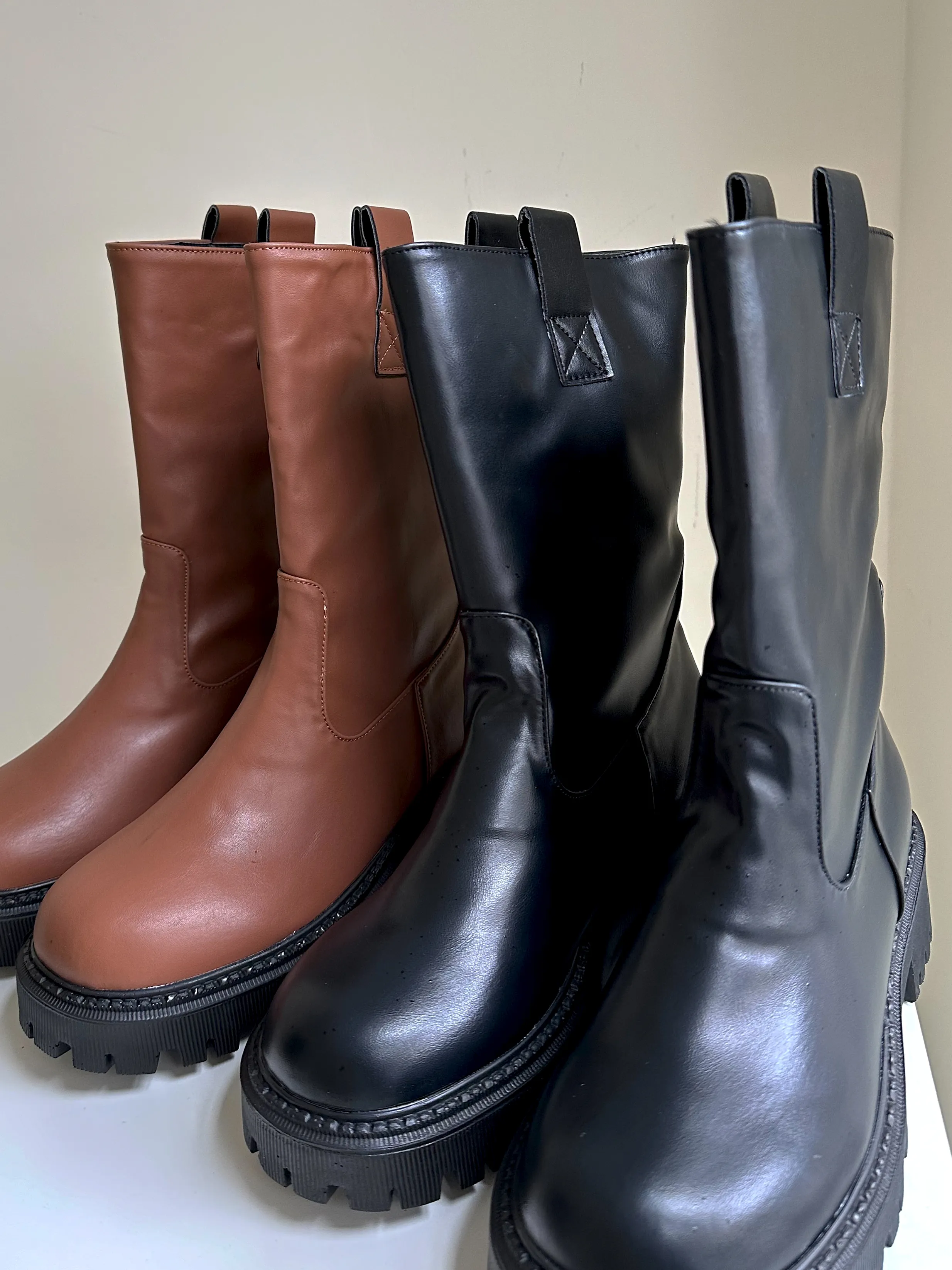 A102312 #步京雲 厚底圓頭中高筒修飾皮靴
