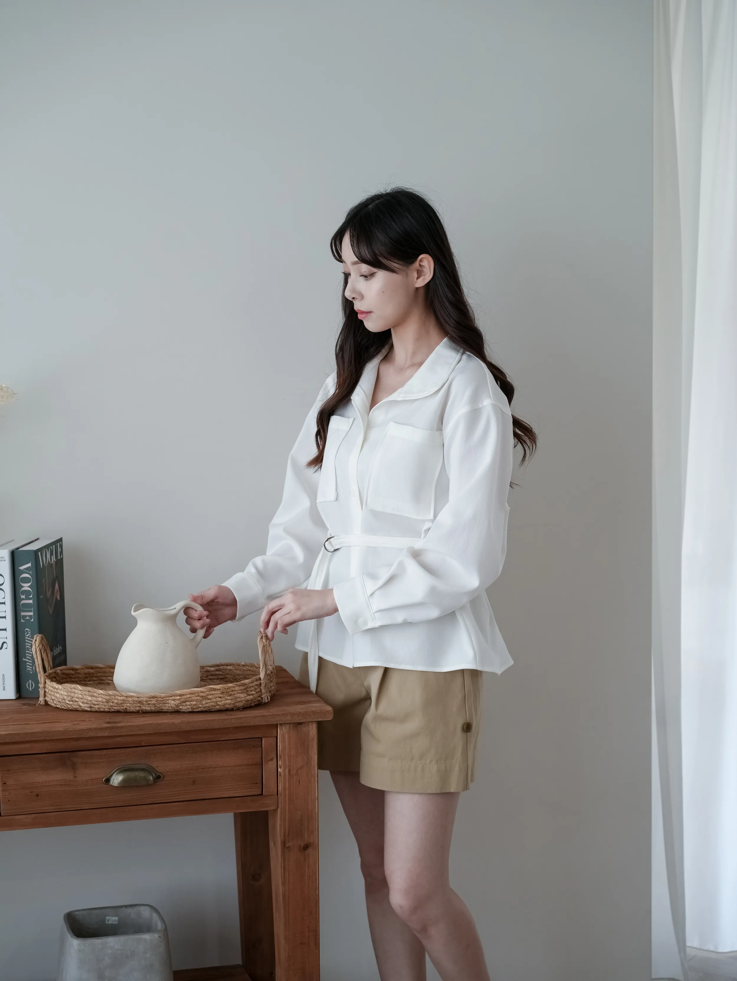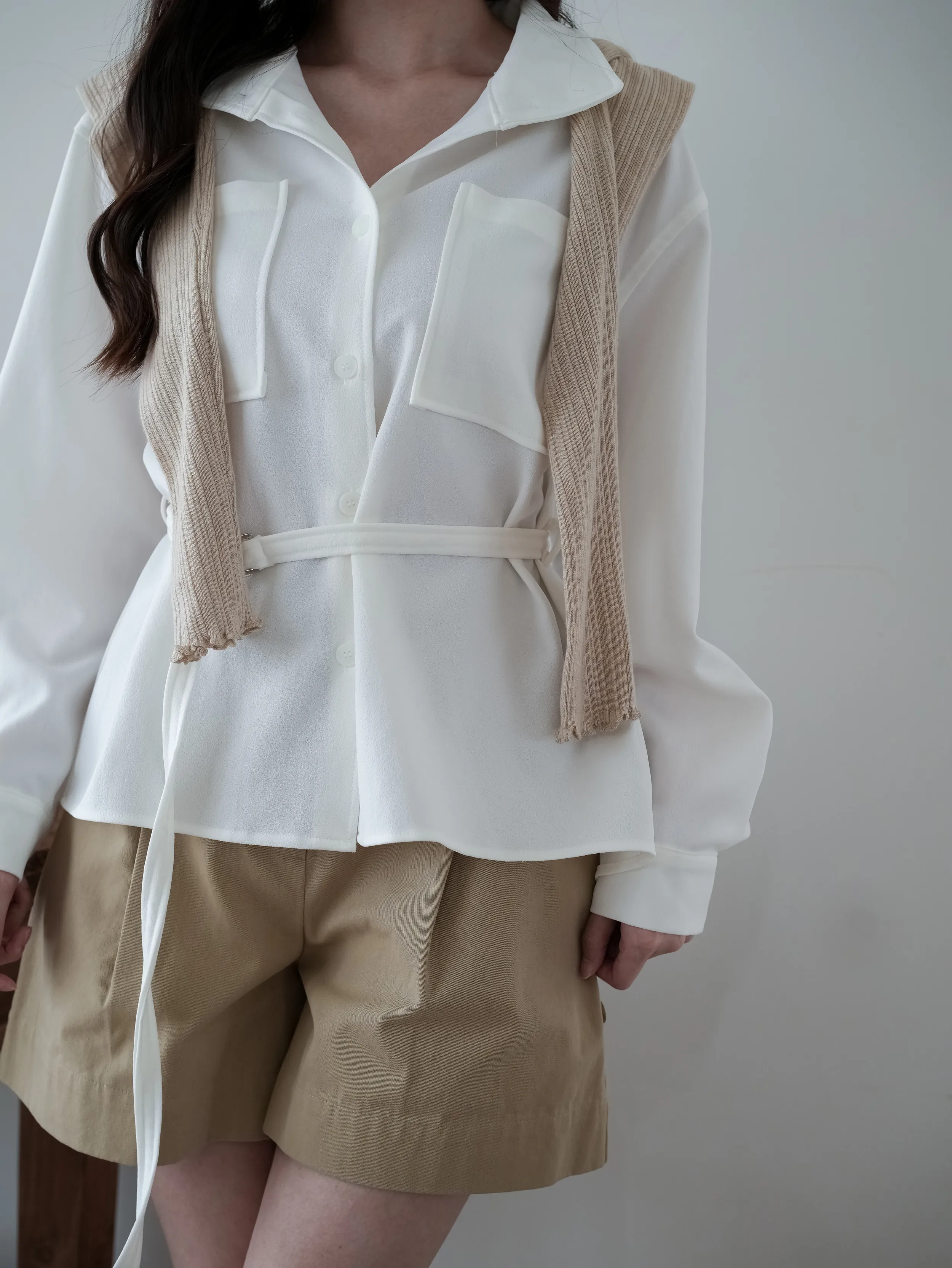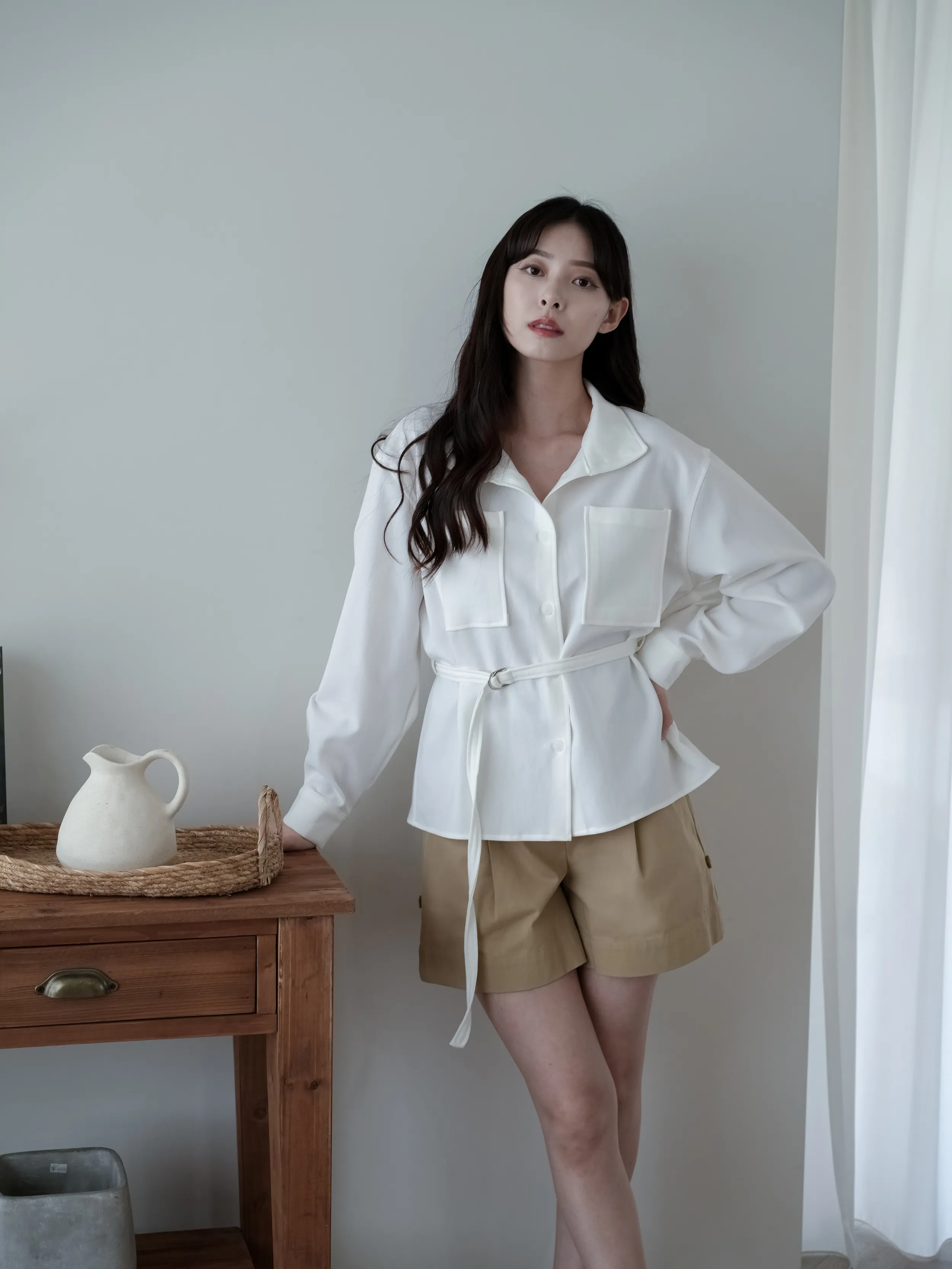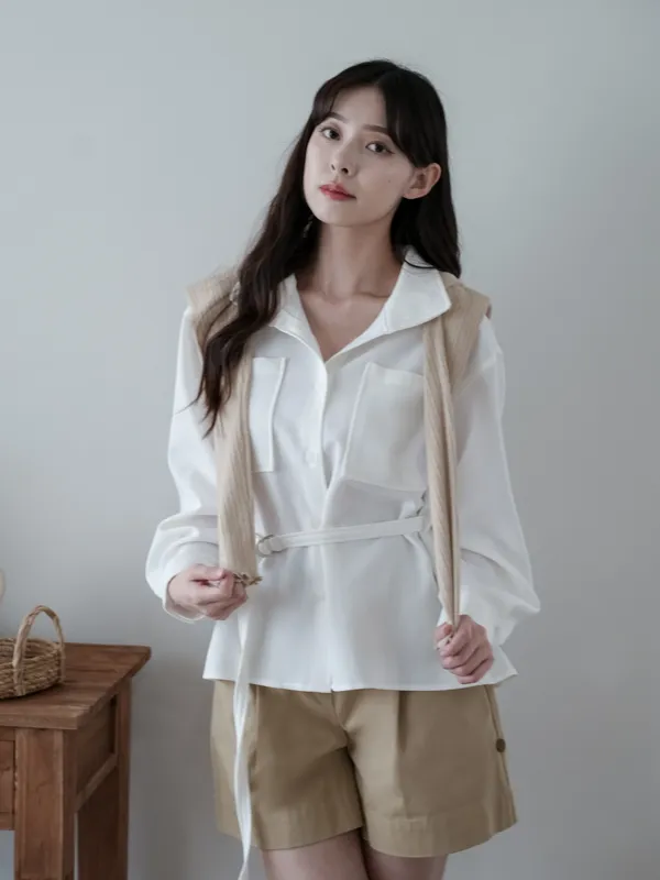 A10903 #一眼就愛上 大口袋琥珀釦襯衫(附腰帶)
