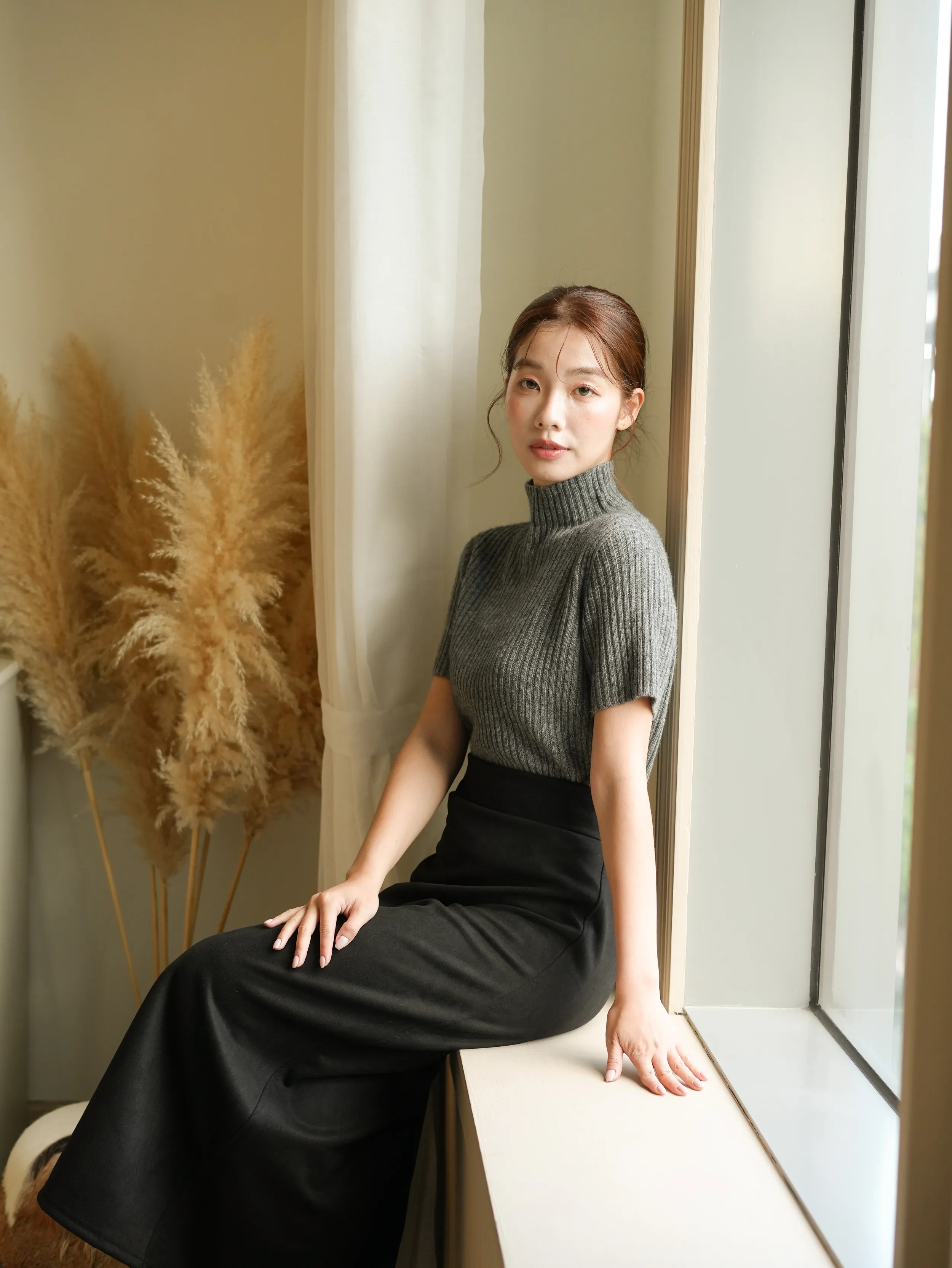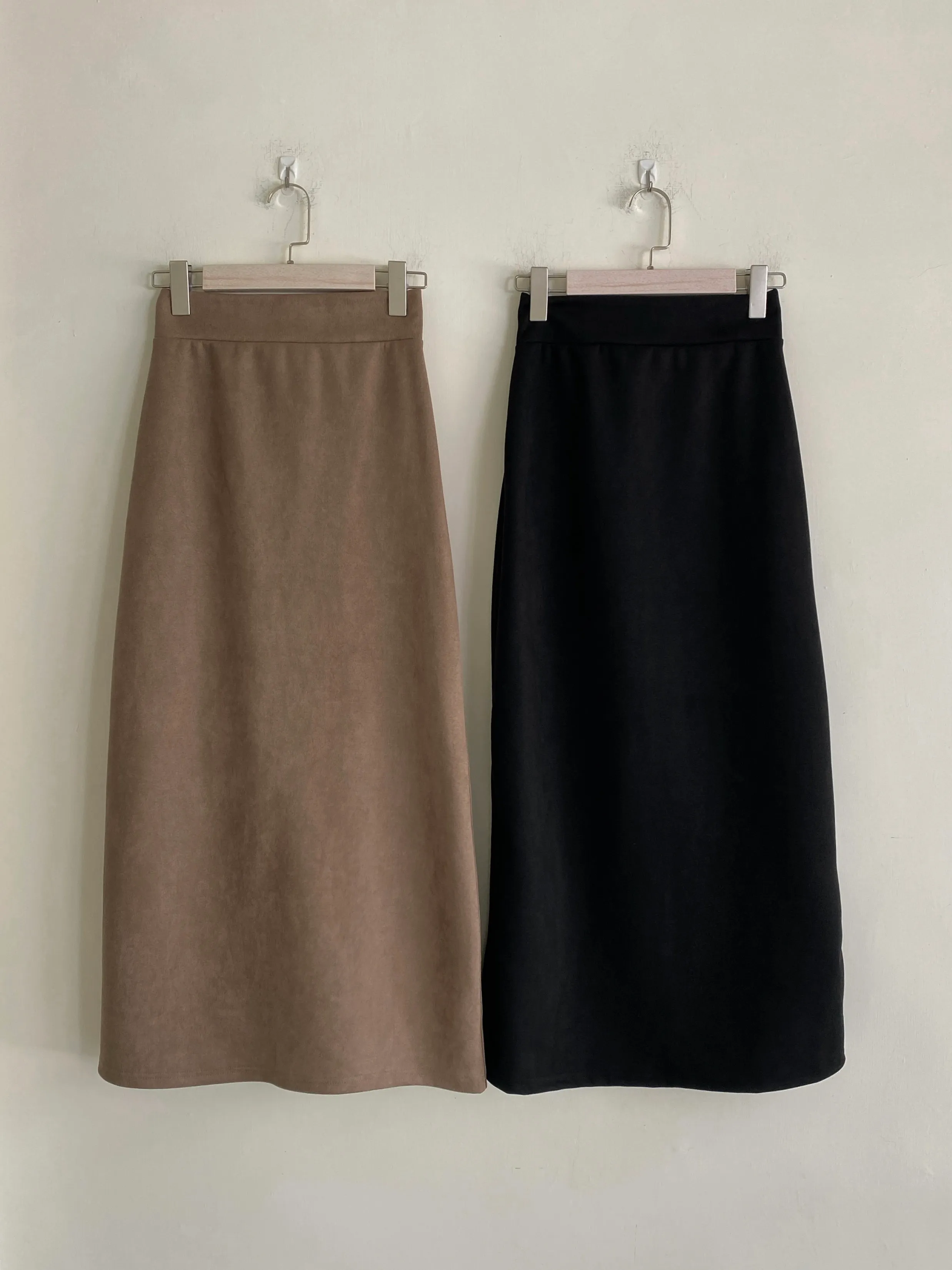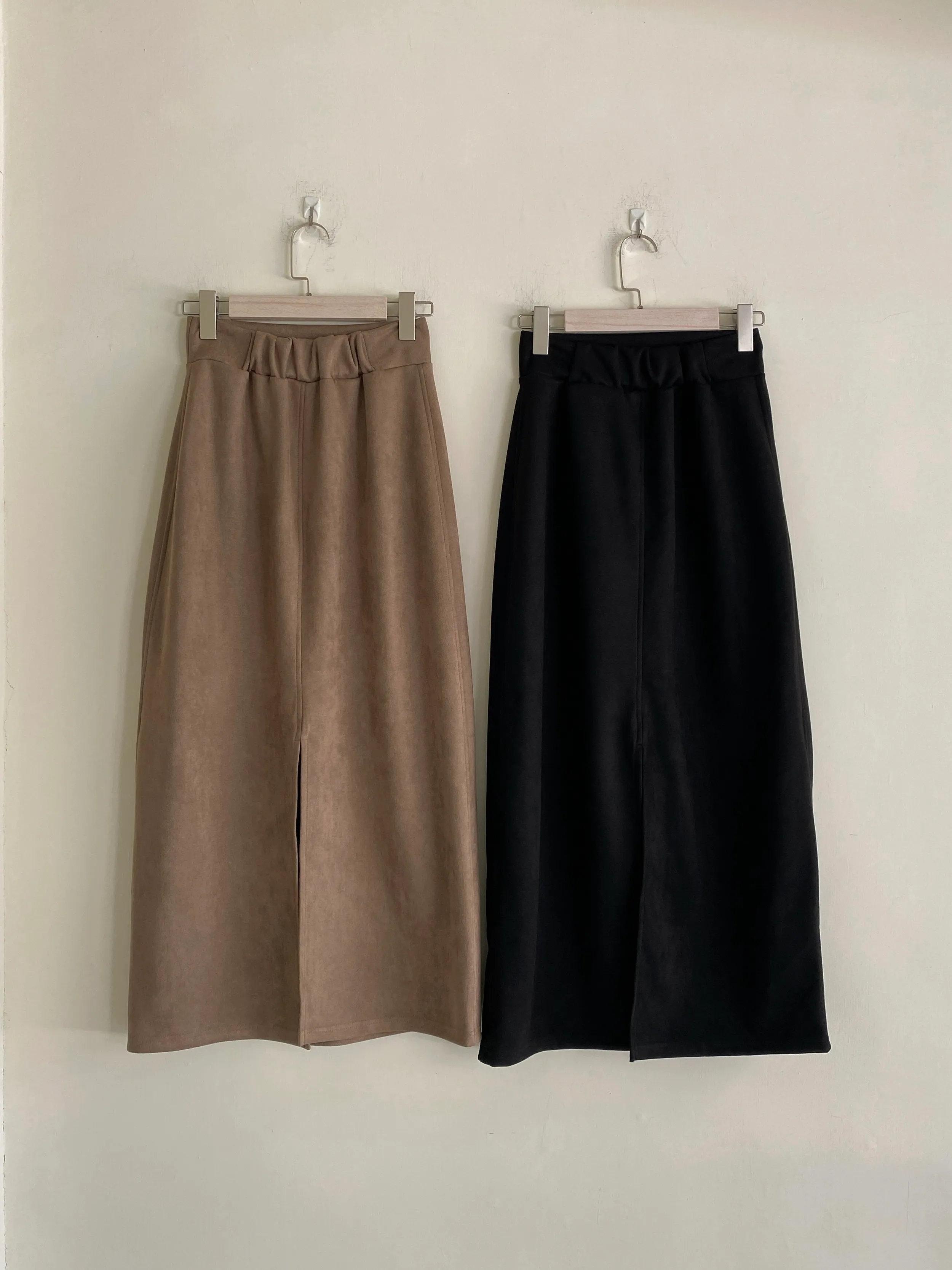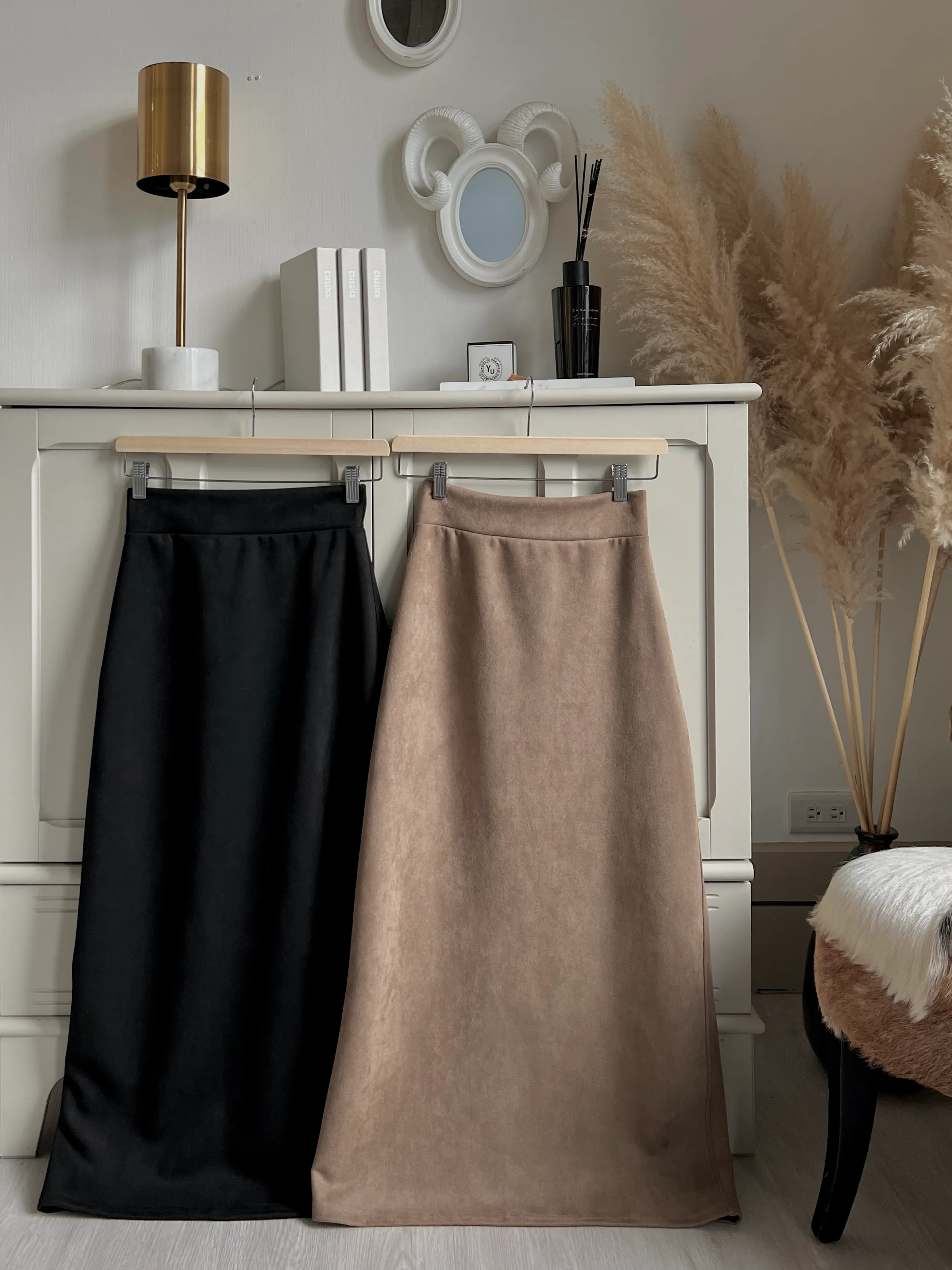 A10905 #維多利亞衣櫥 後鬆緊開衩麂皮修身長裙