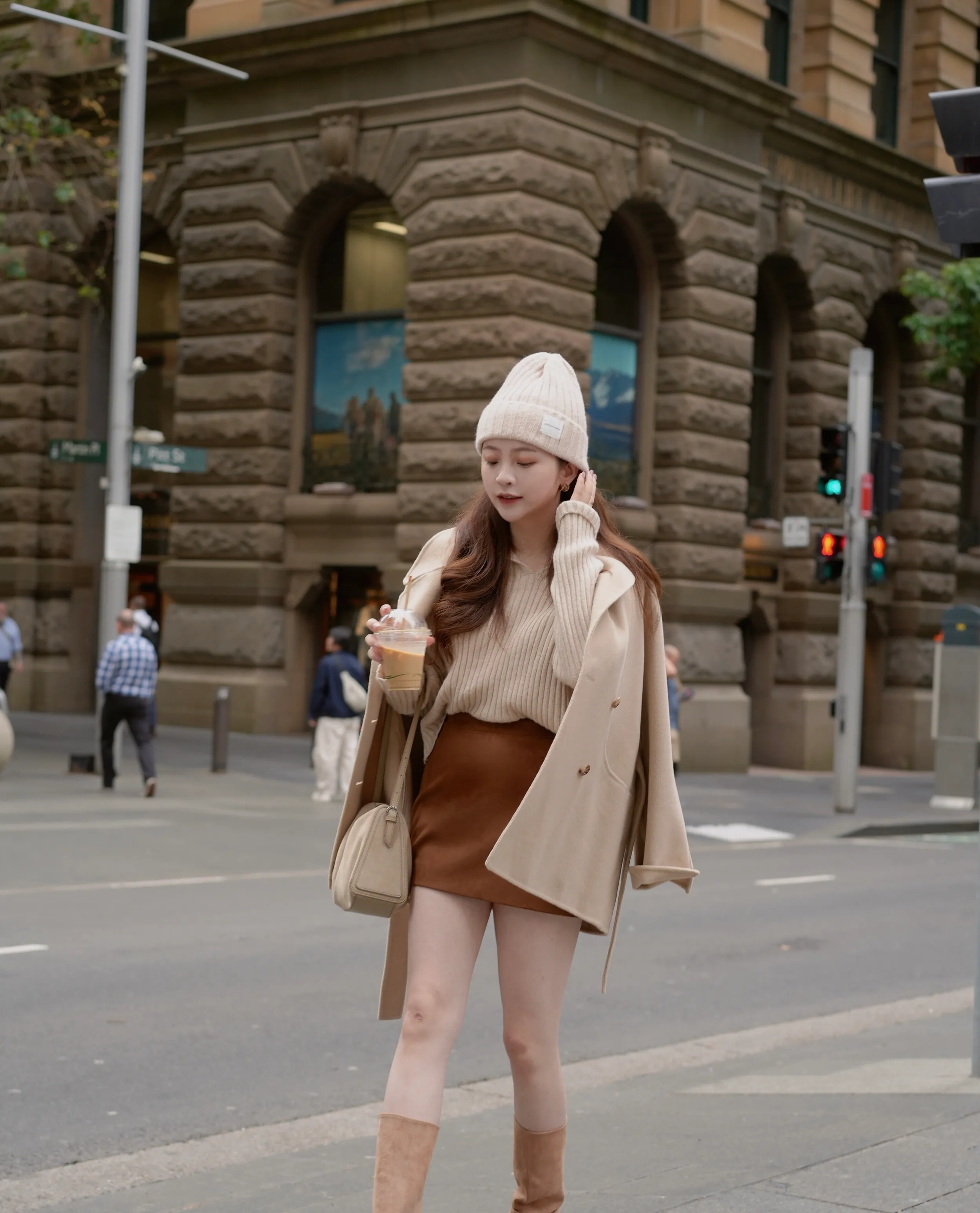 A10907 #日落後的雪梨 顯瘦麂皮短裙