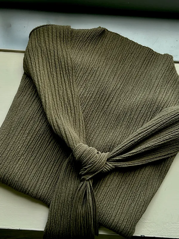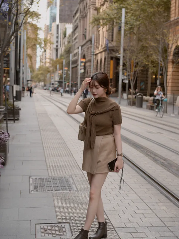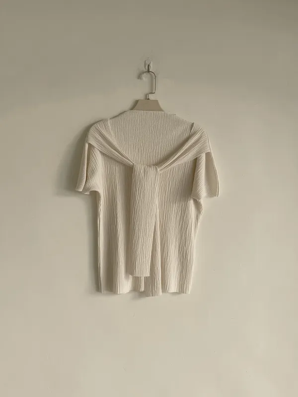 A10908 #不單調穿搭 紋路感綁帶微高領短袖上衣