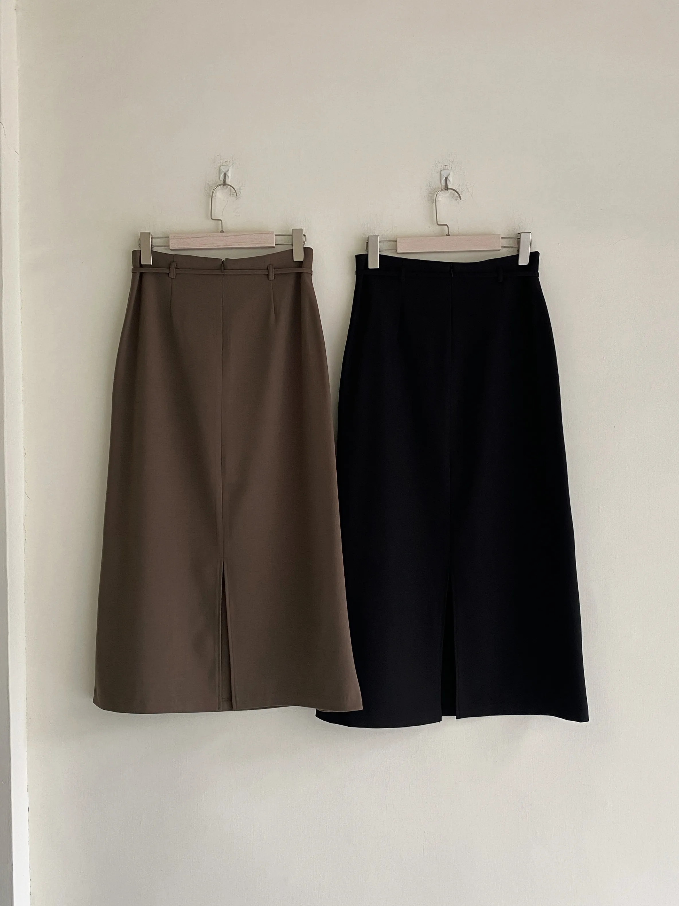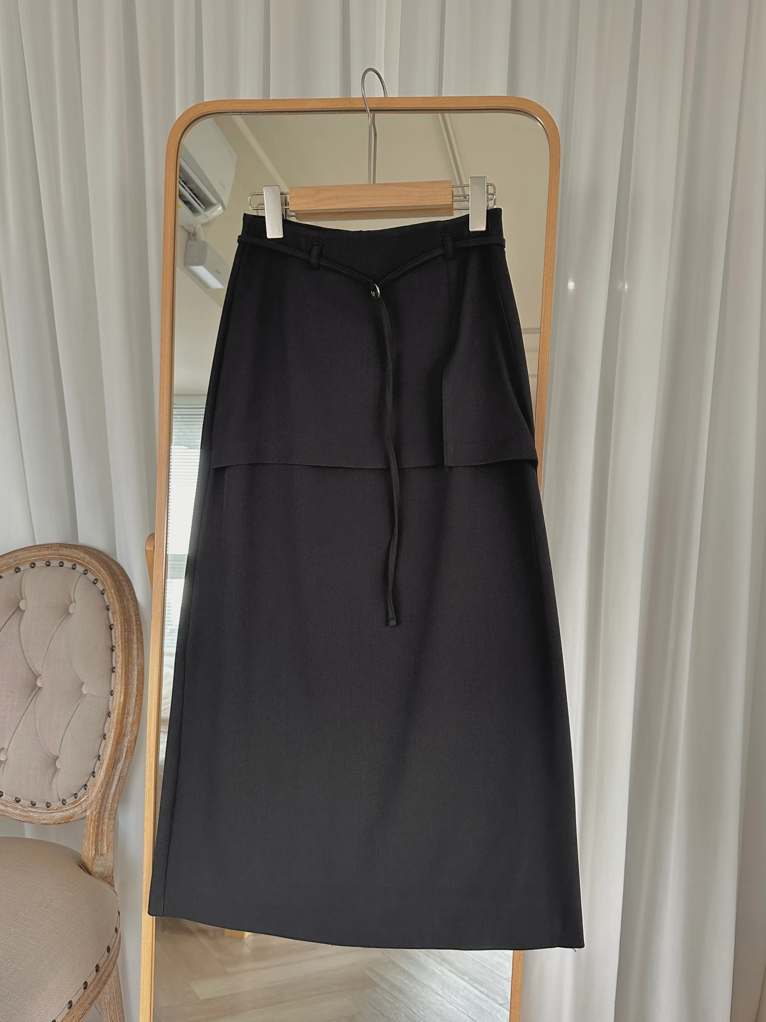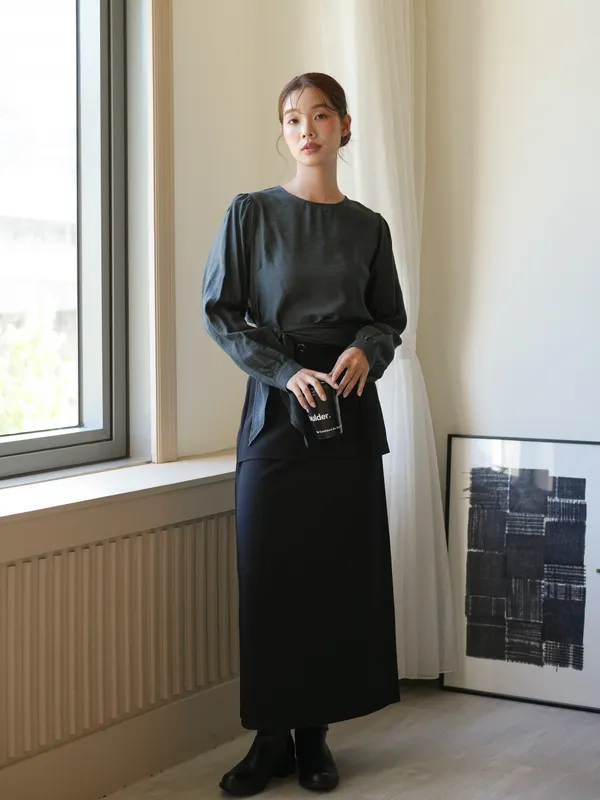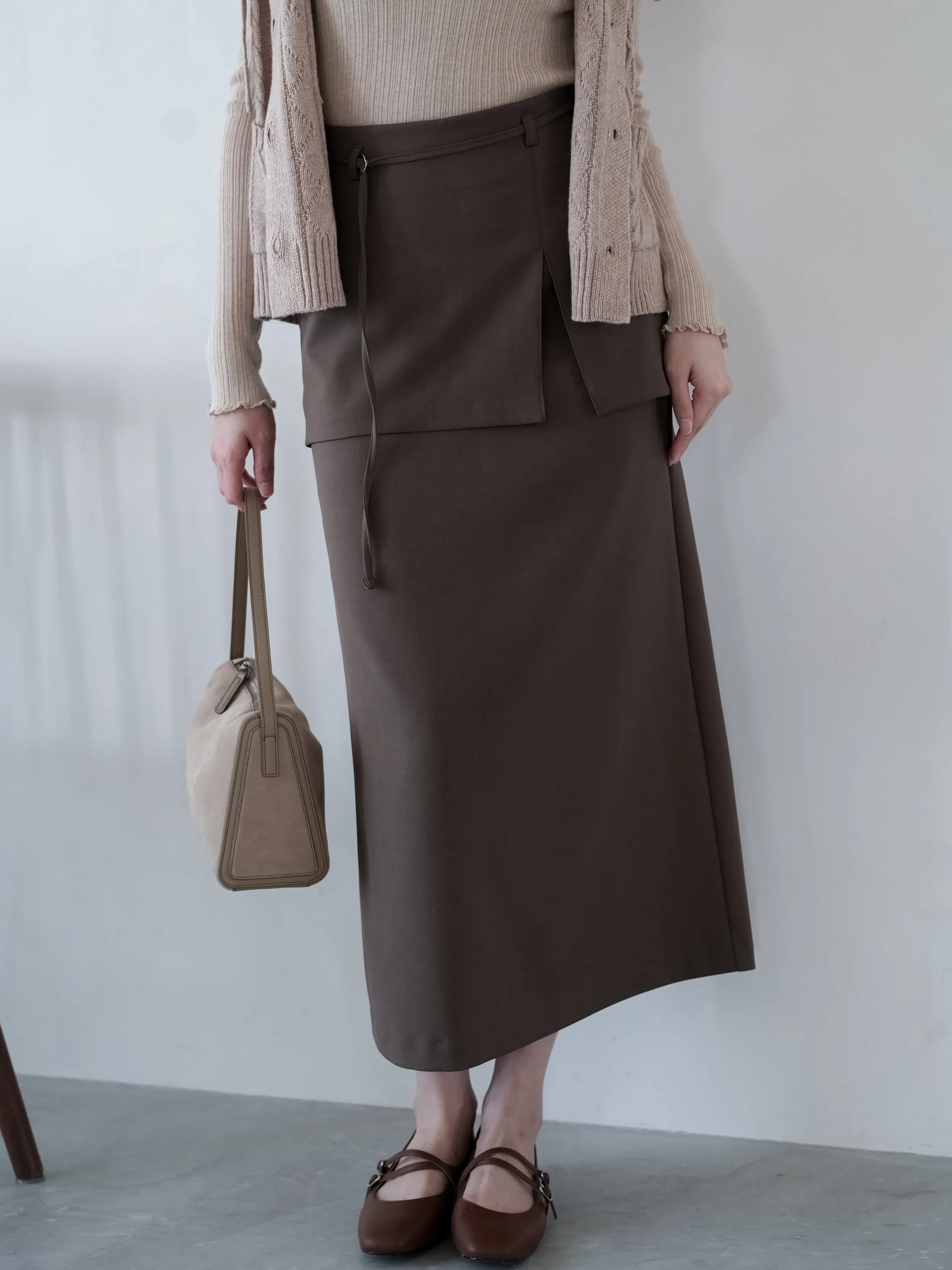 A10914 #漢南洞午後 造型前片後開衩長裙(附綁帶)