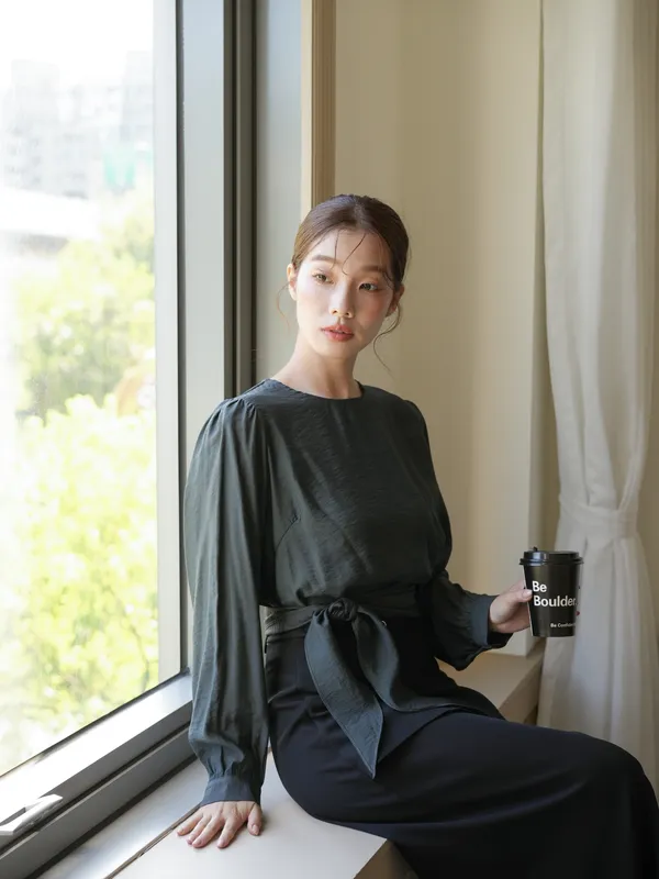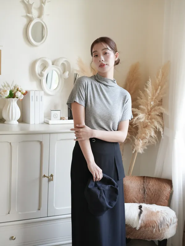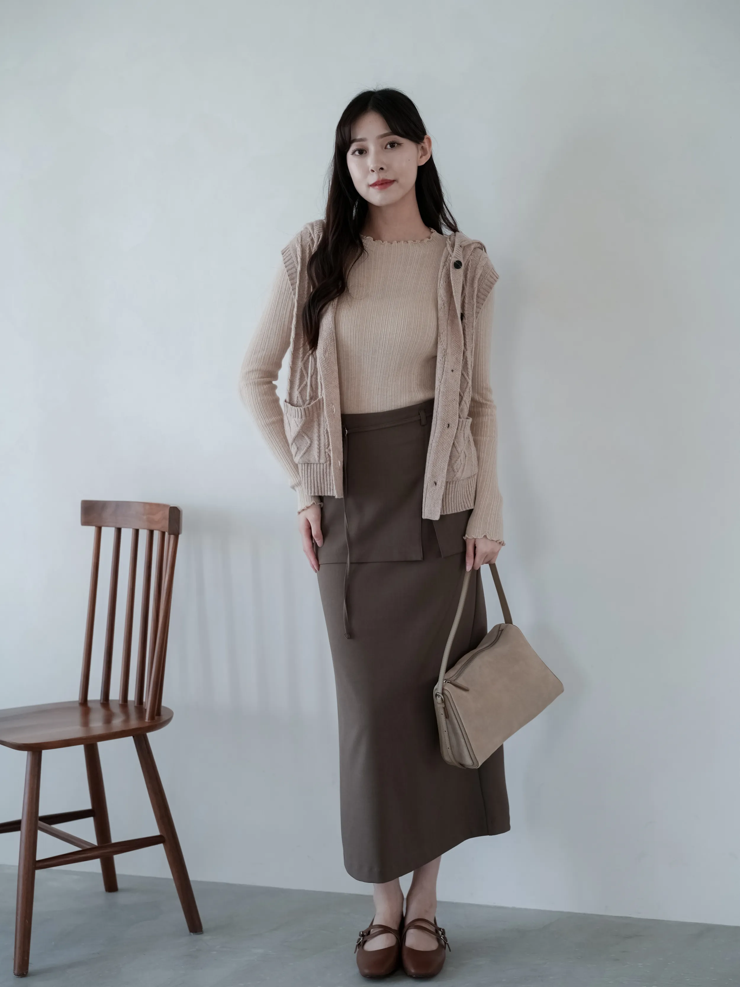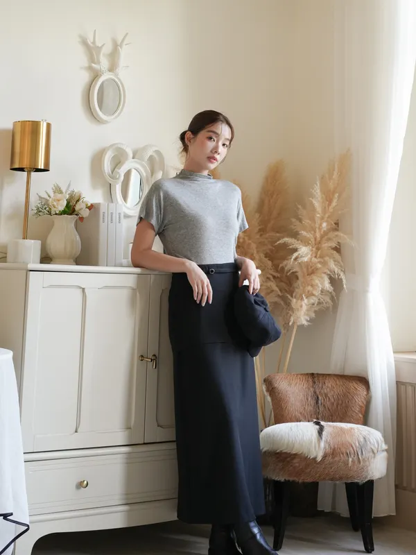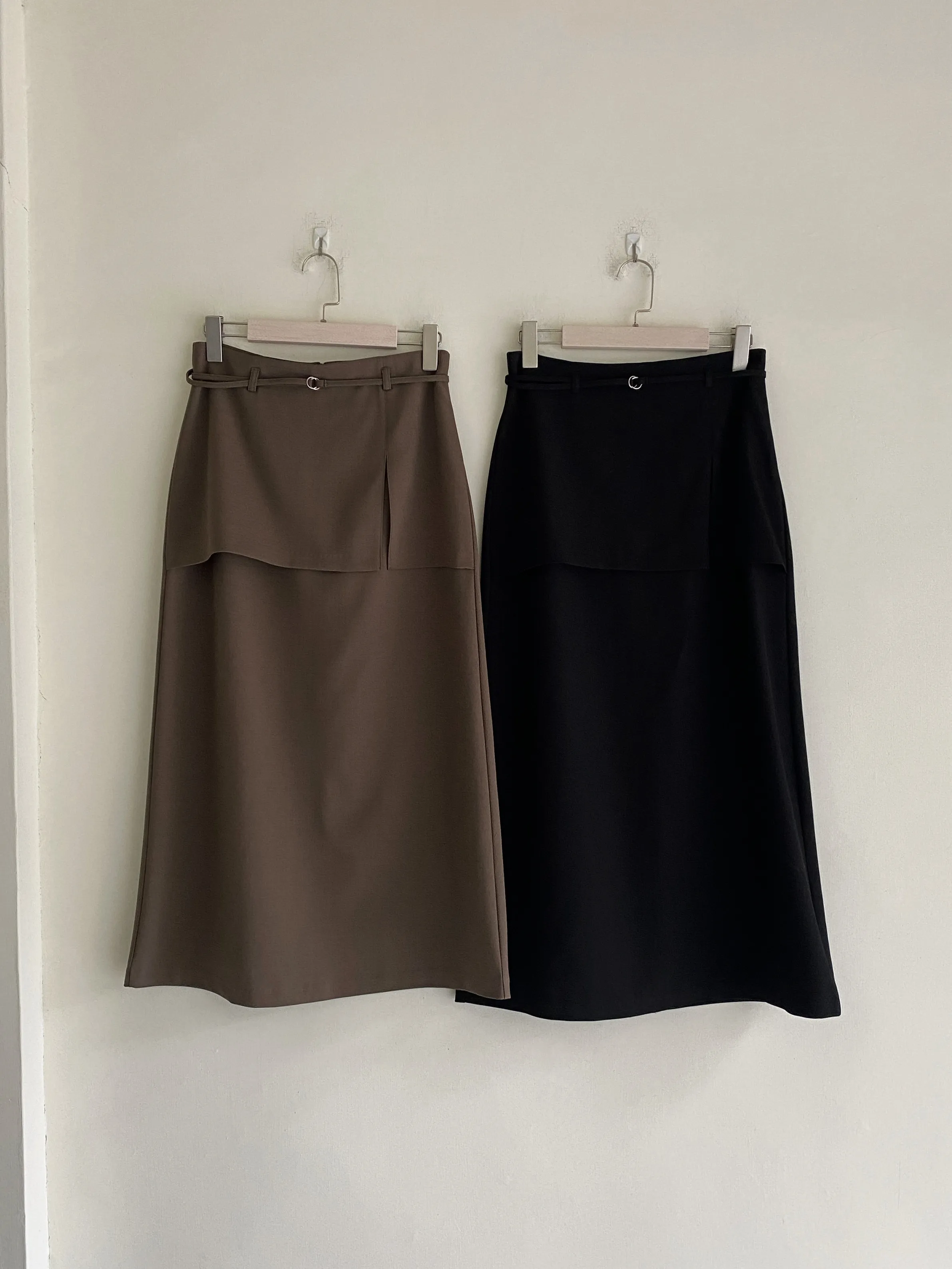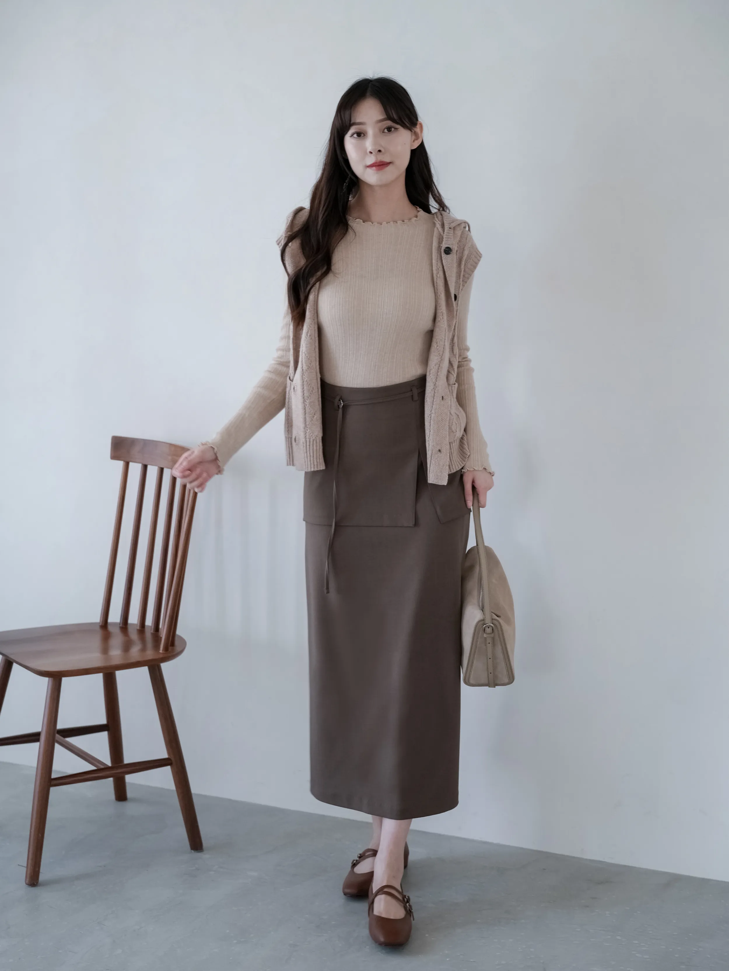 A10914 #漢南洞午後 造型前片後開衩長裙(附綁帶)