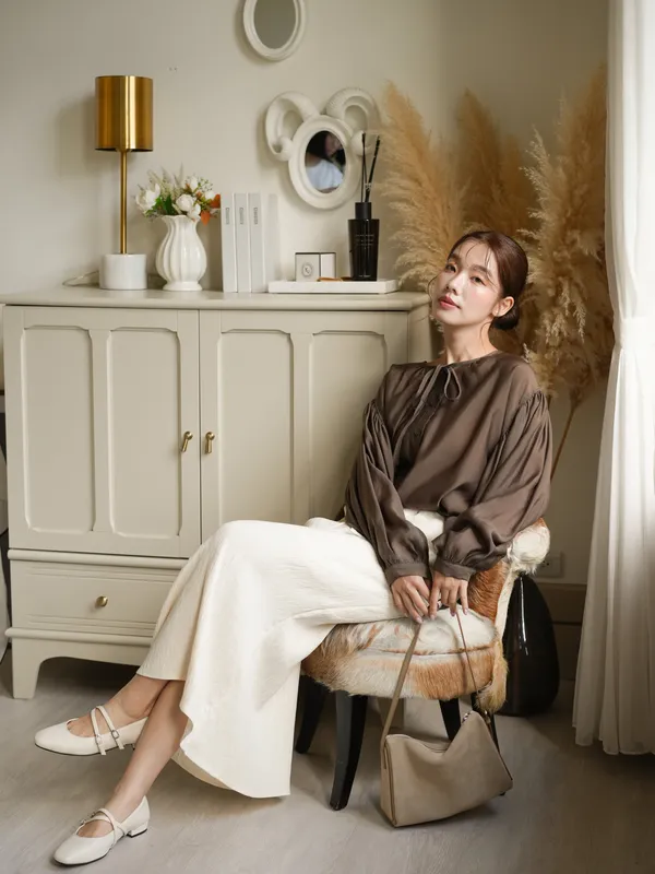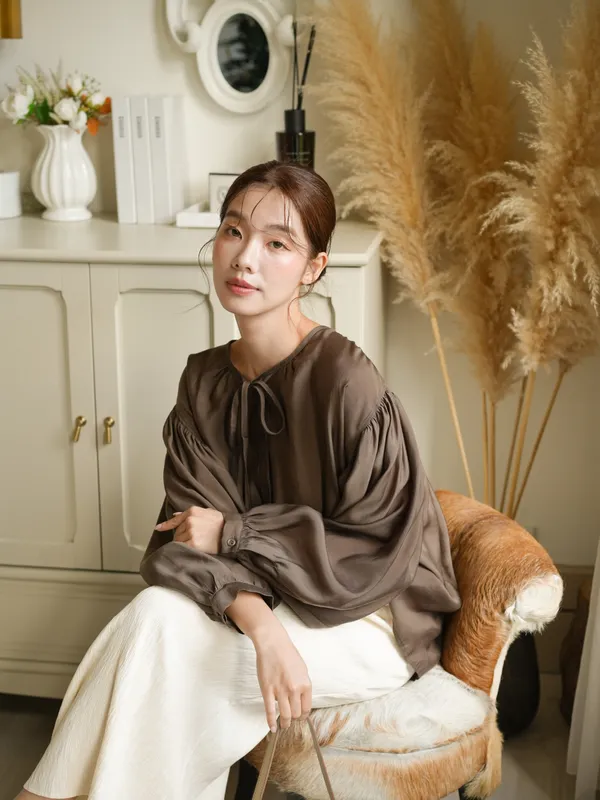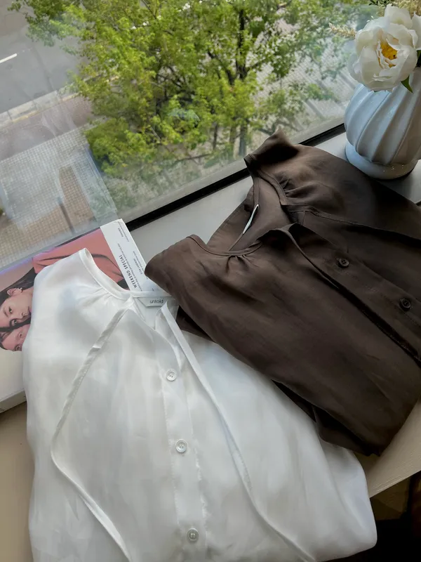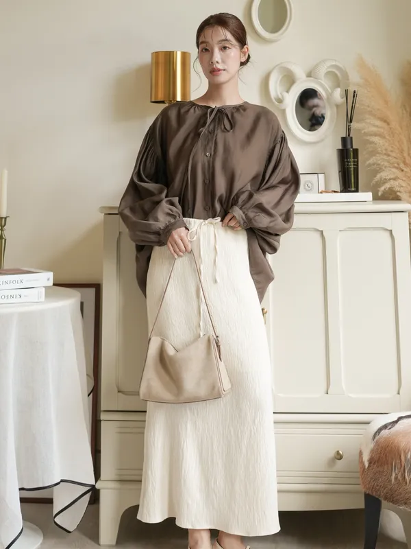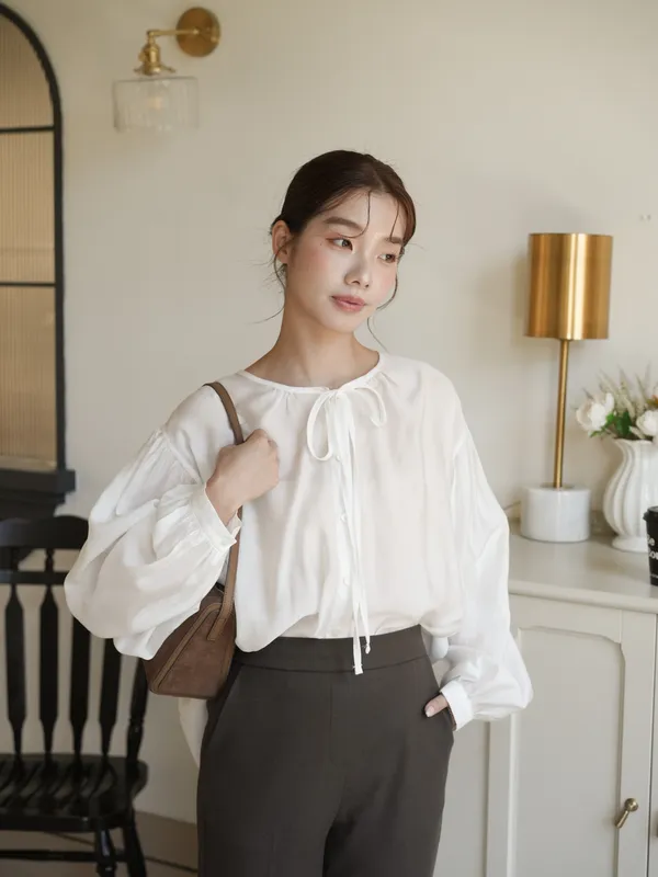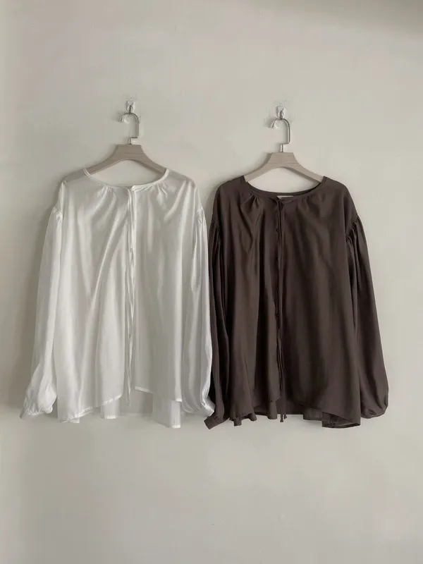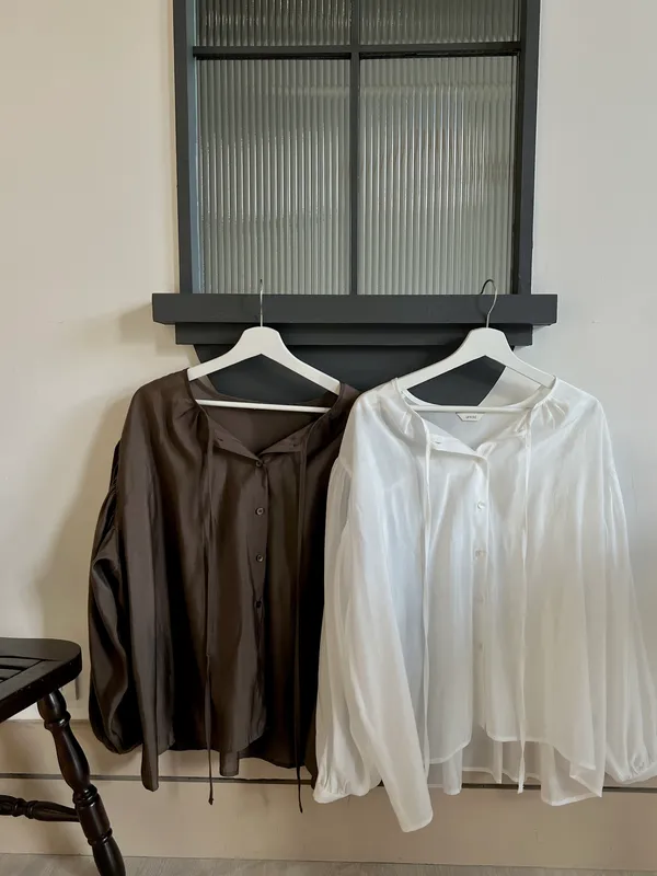 A10915 #午後拿鐵 雪紡綁帶排釦上衣