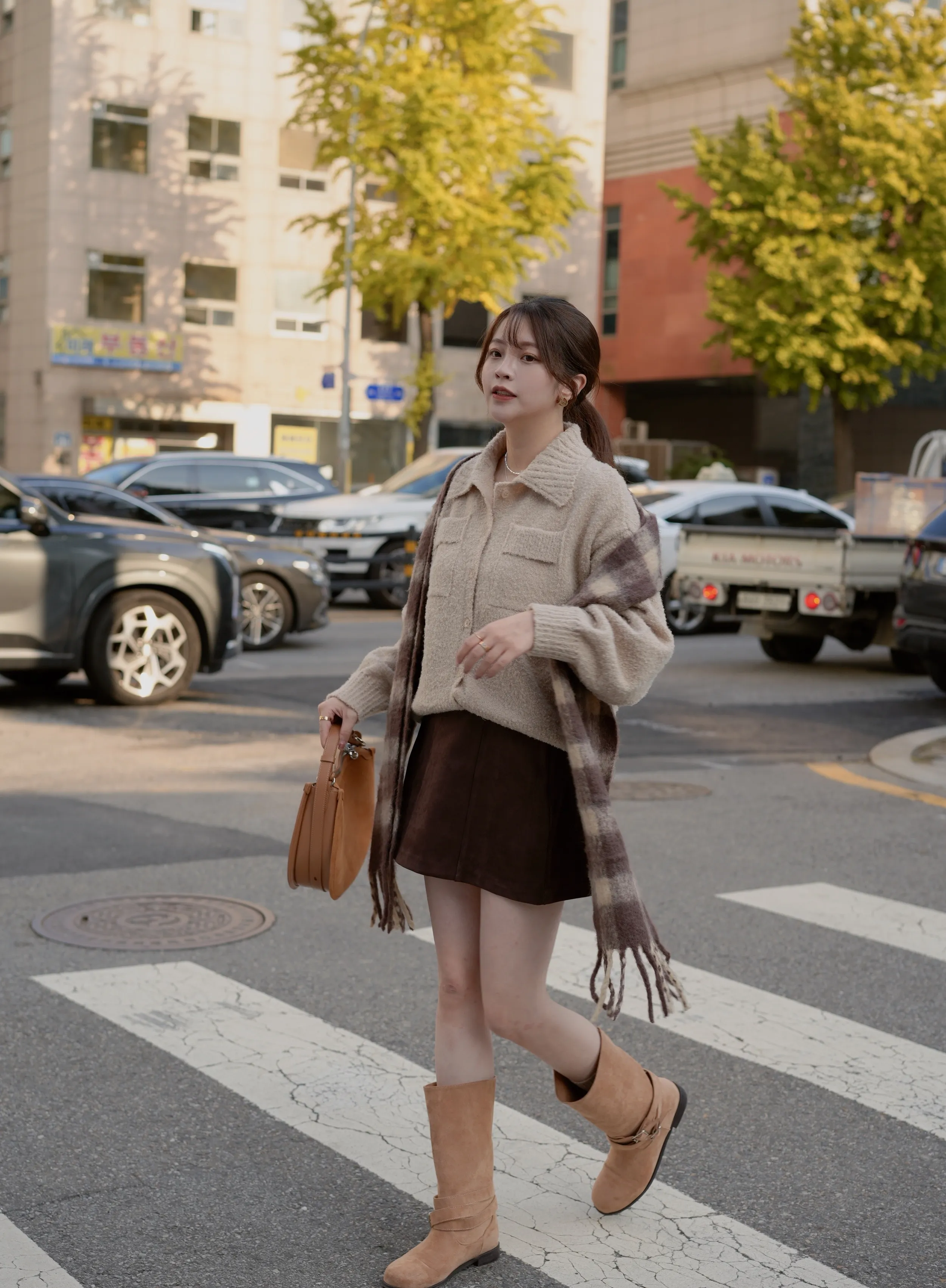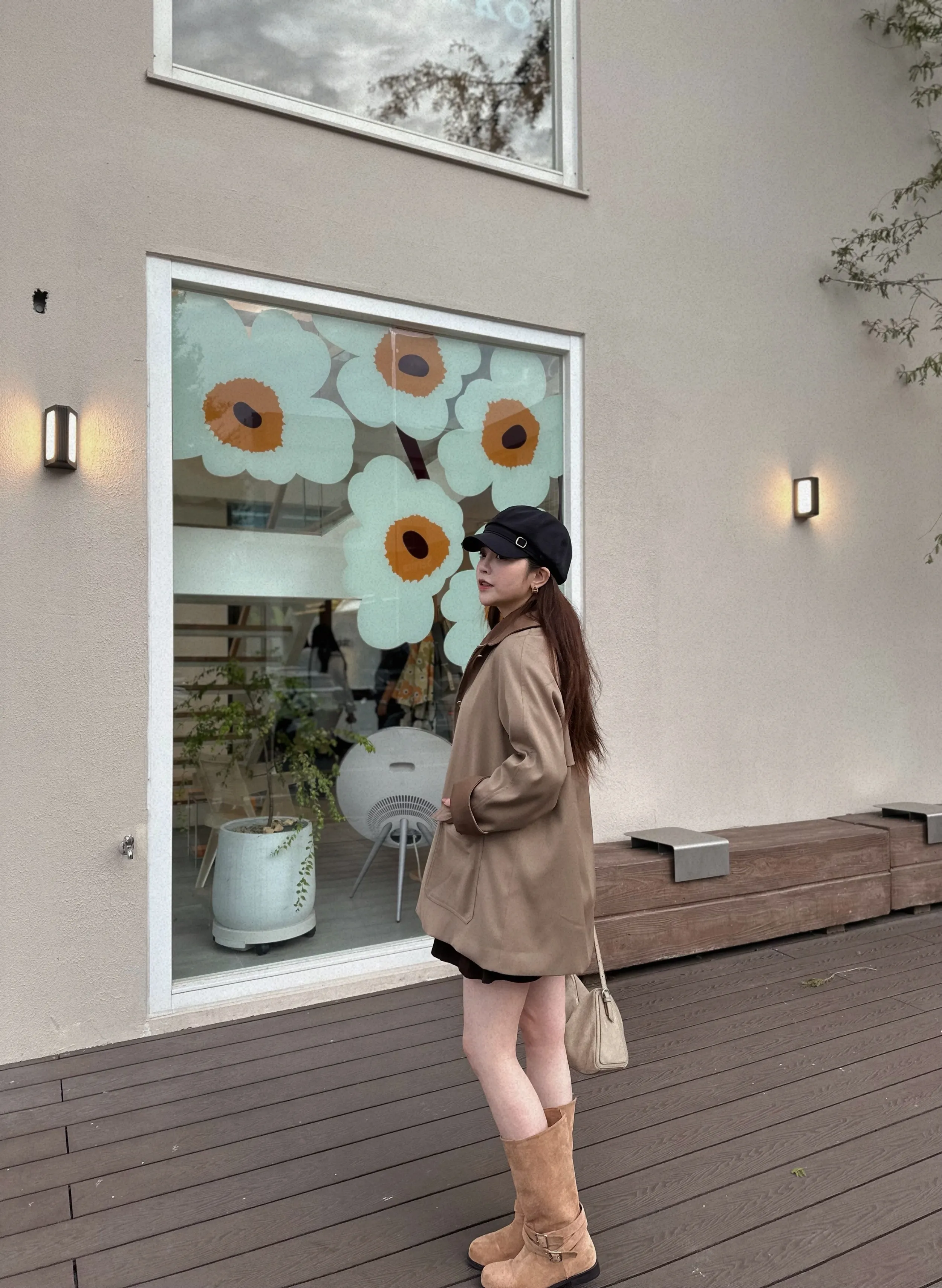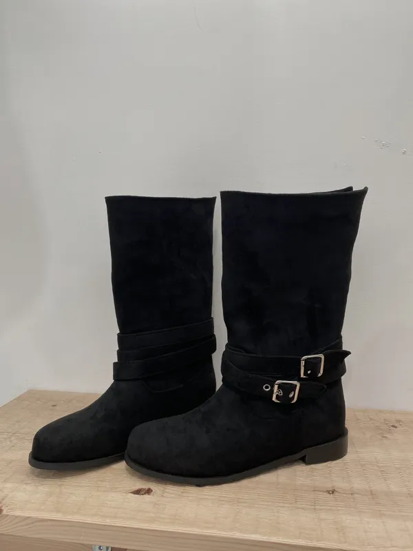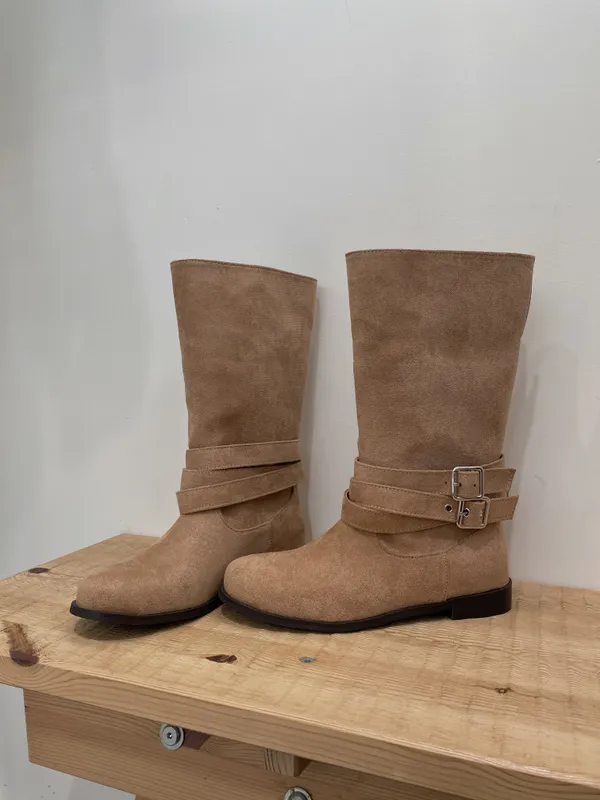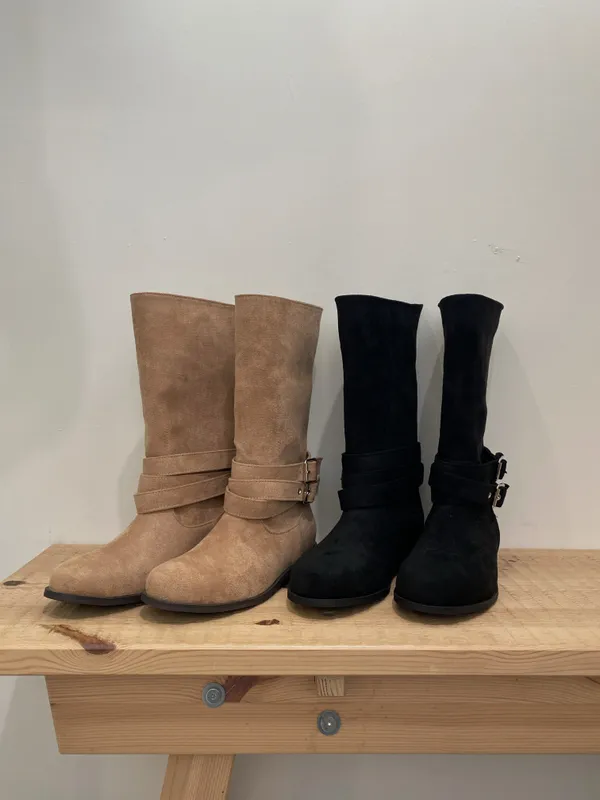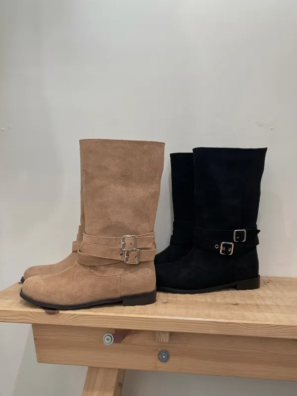 A10919 #修飾腿型神靴 質感雙釦環麂皮中筒靴