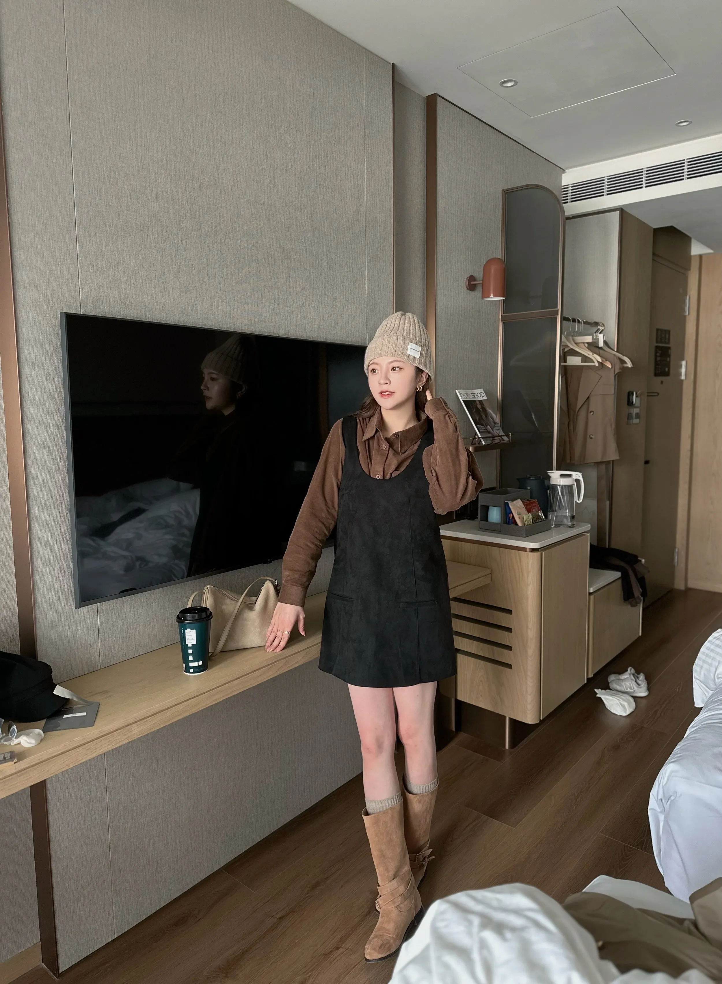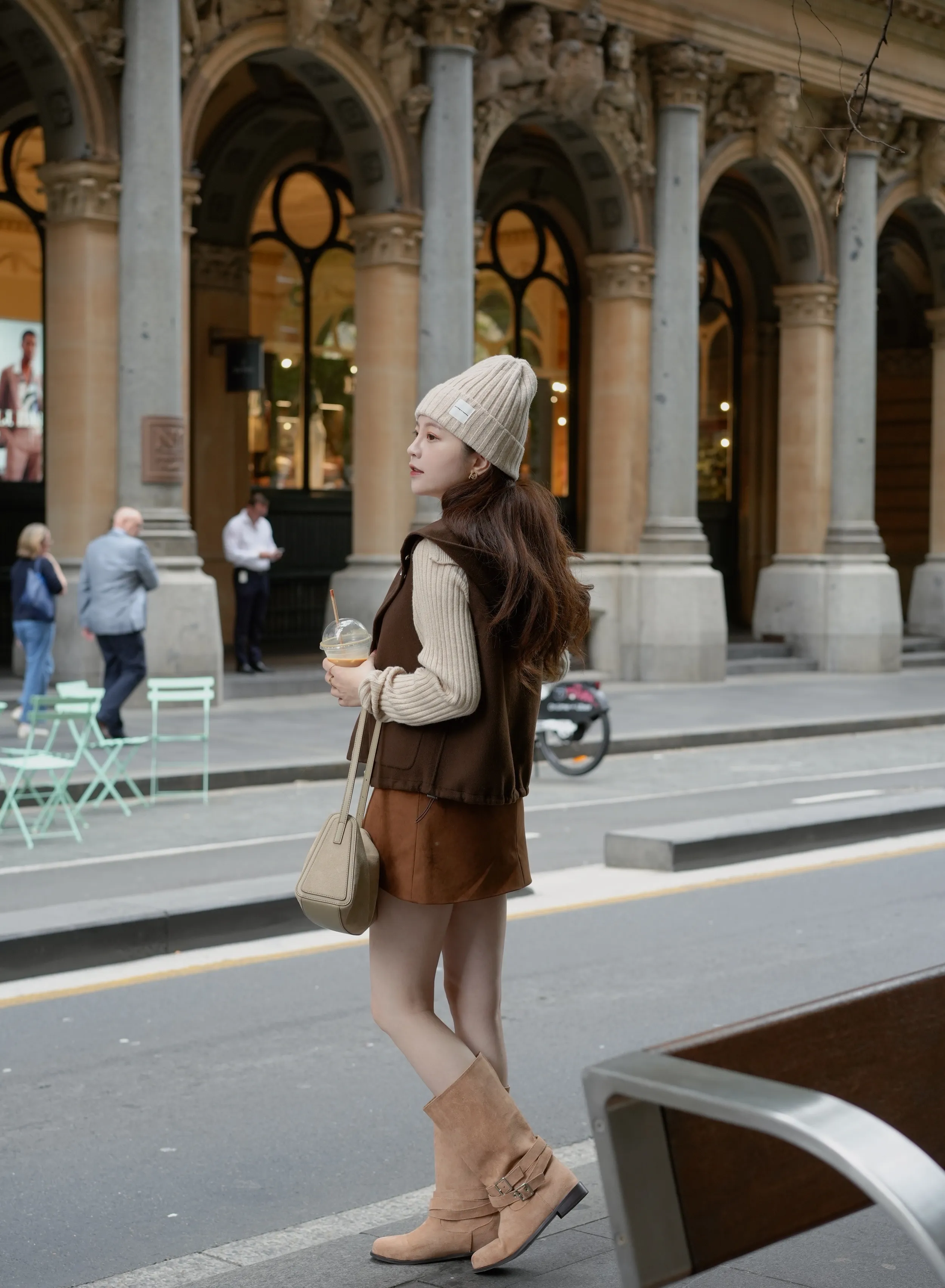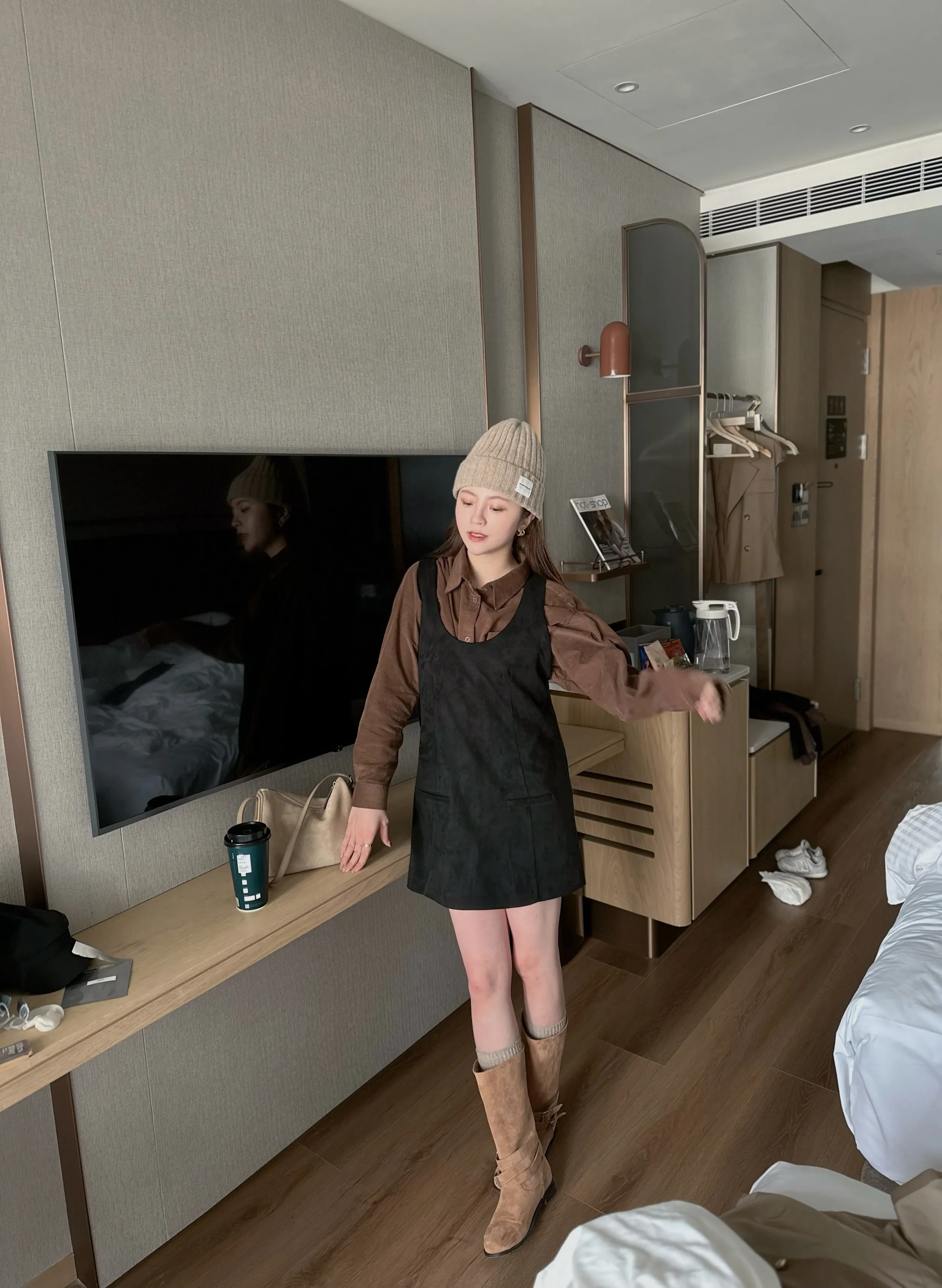 A10919 #修飾腿型神靴 質感雙釦環麂皮中筒靴