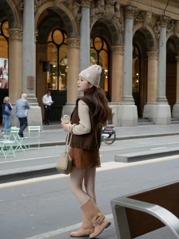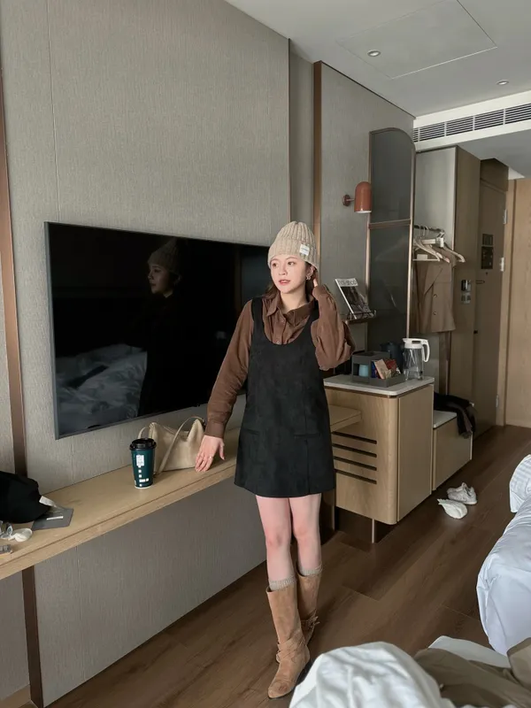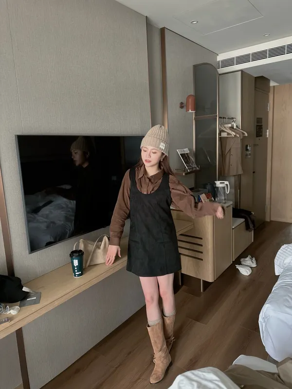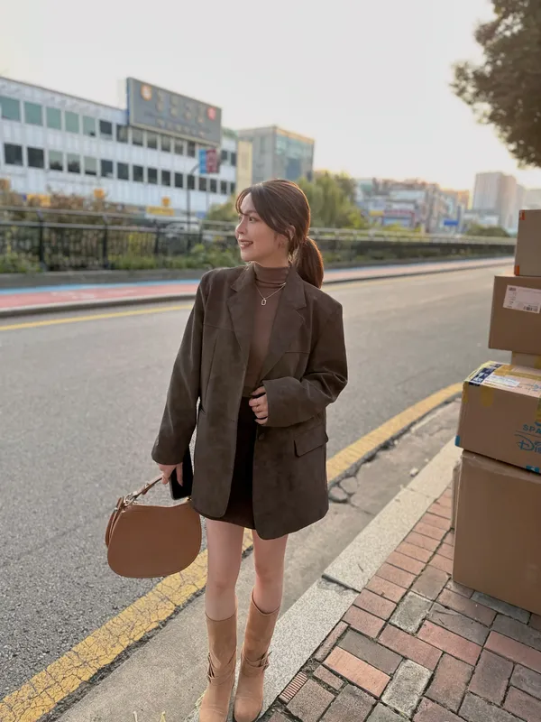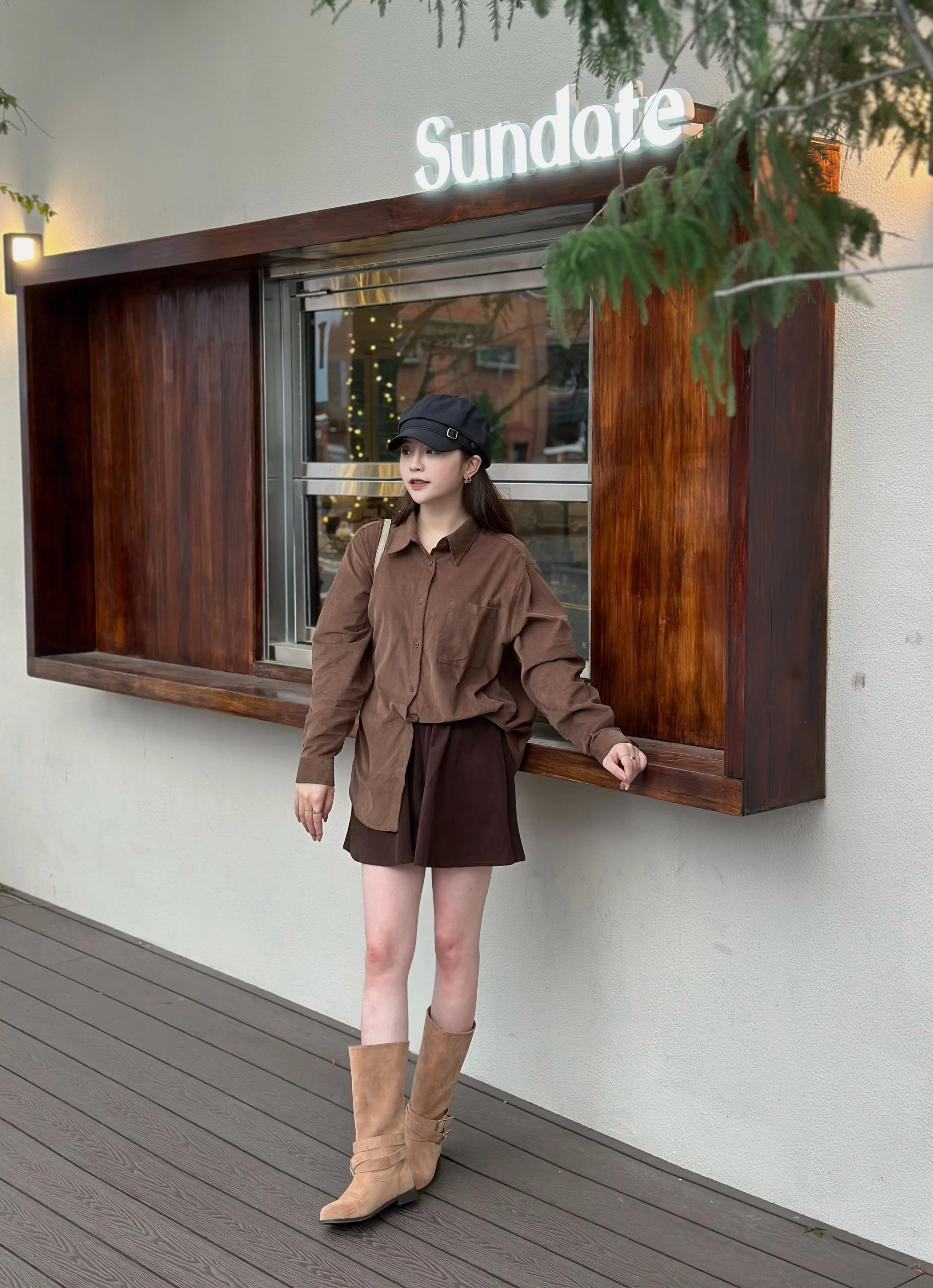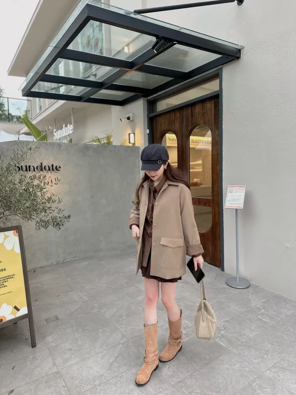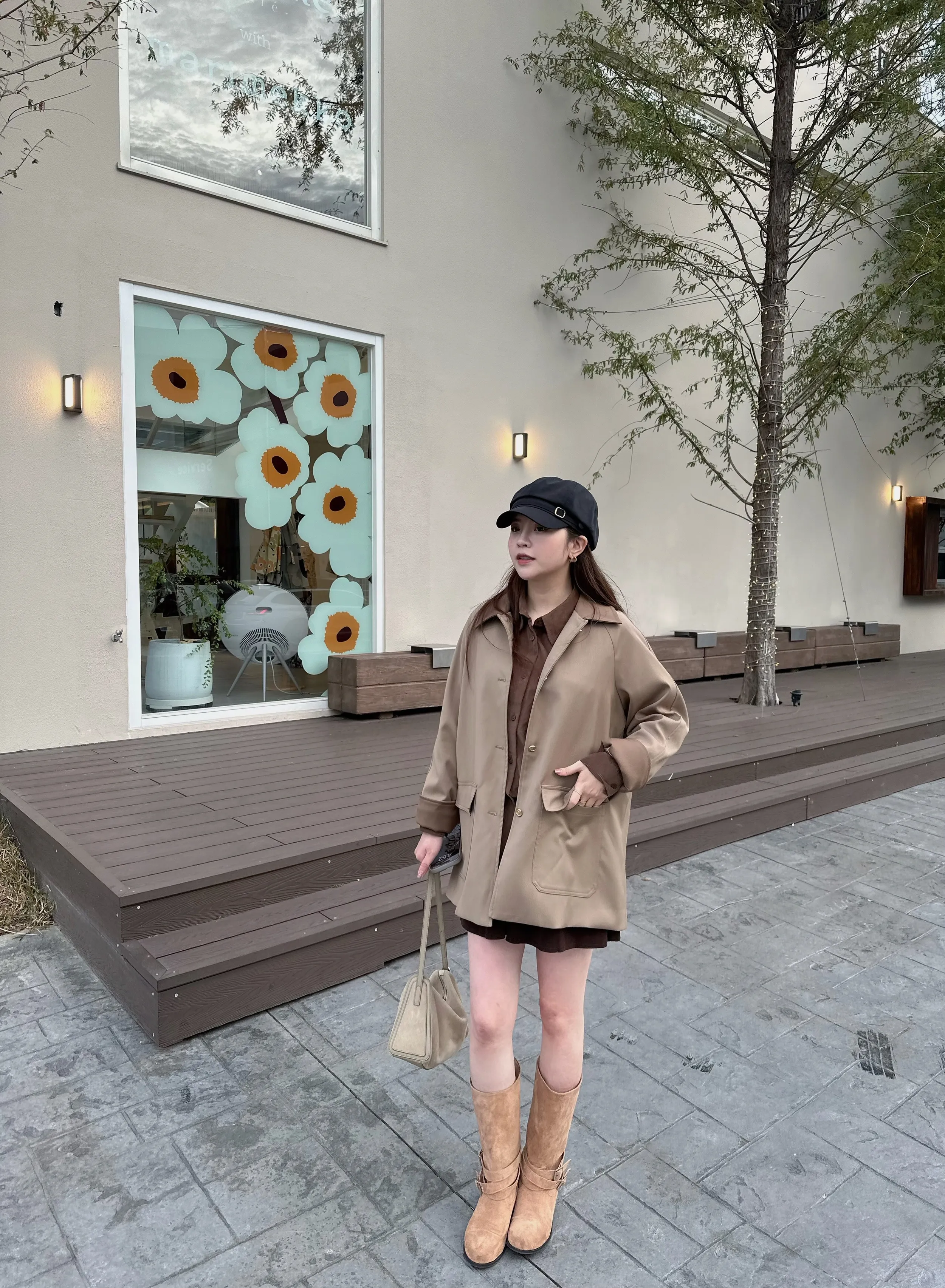 A10919 #修飾腿型神靴 質感雙釦環麂皮中筒靴