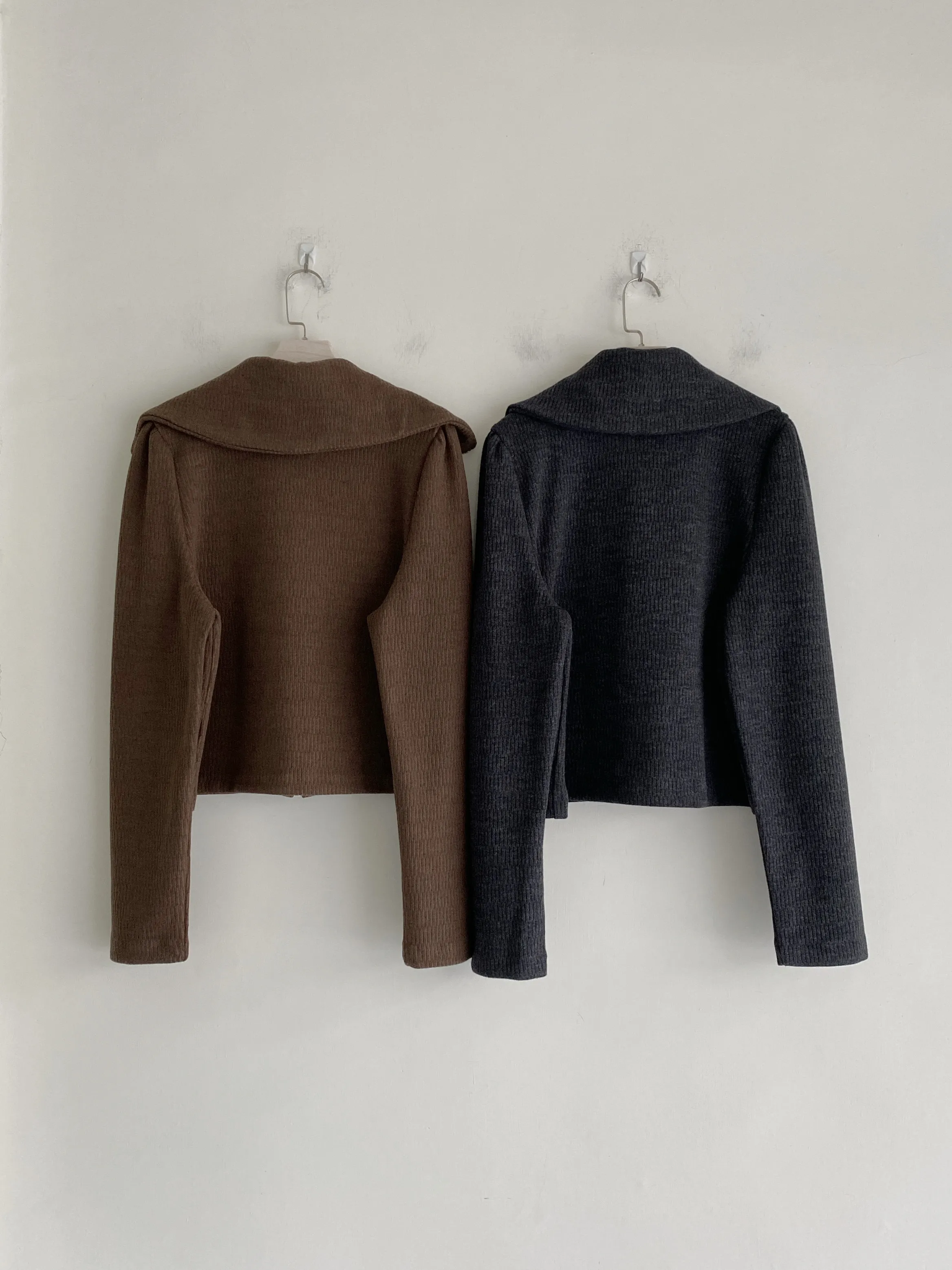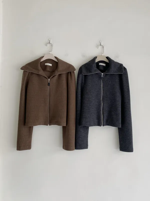 A11613 直坑條拉鍊翻領上衣