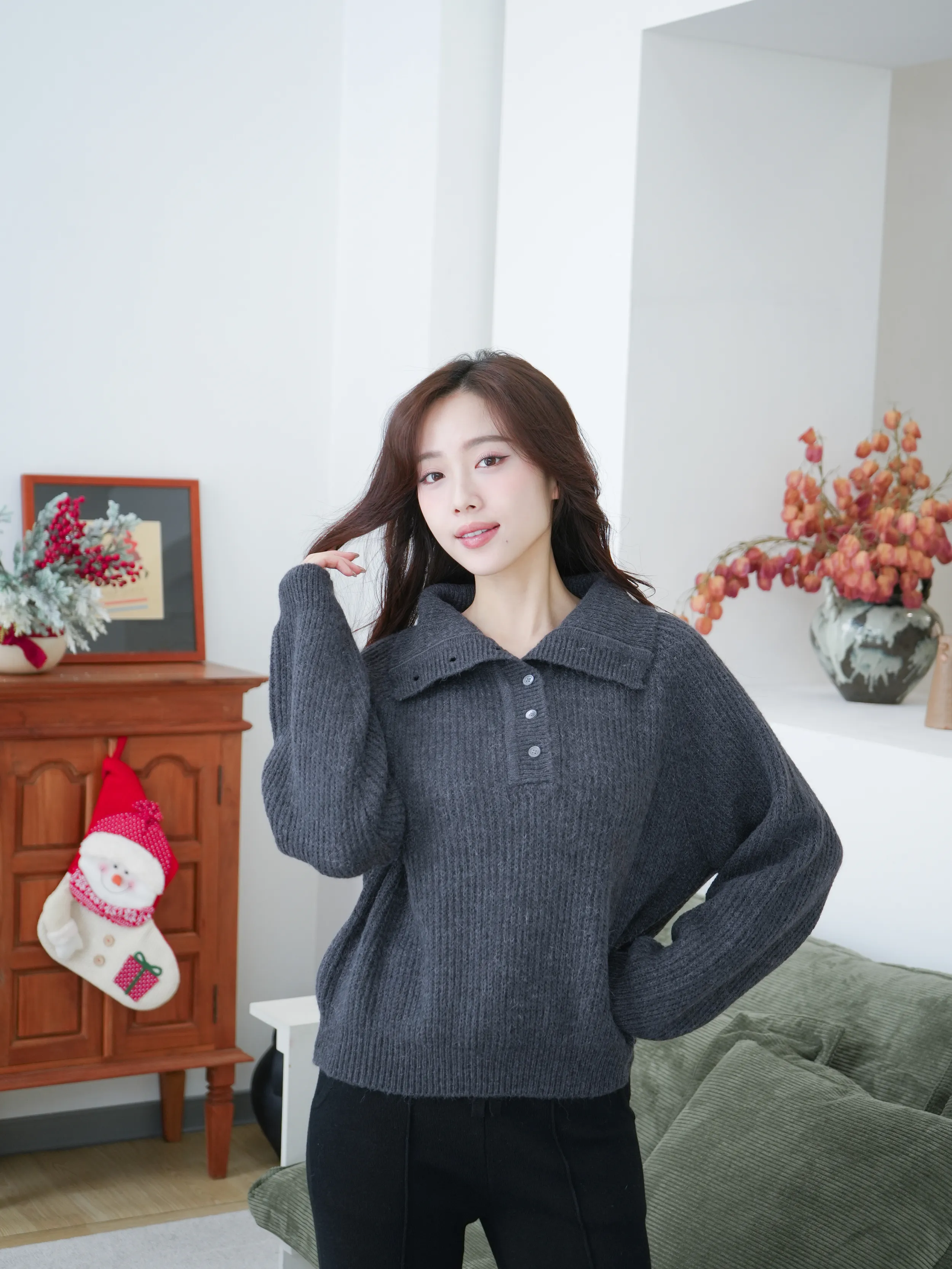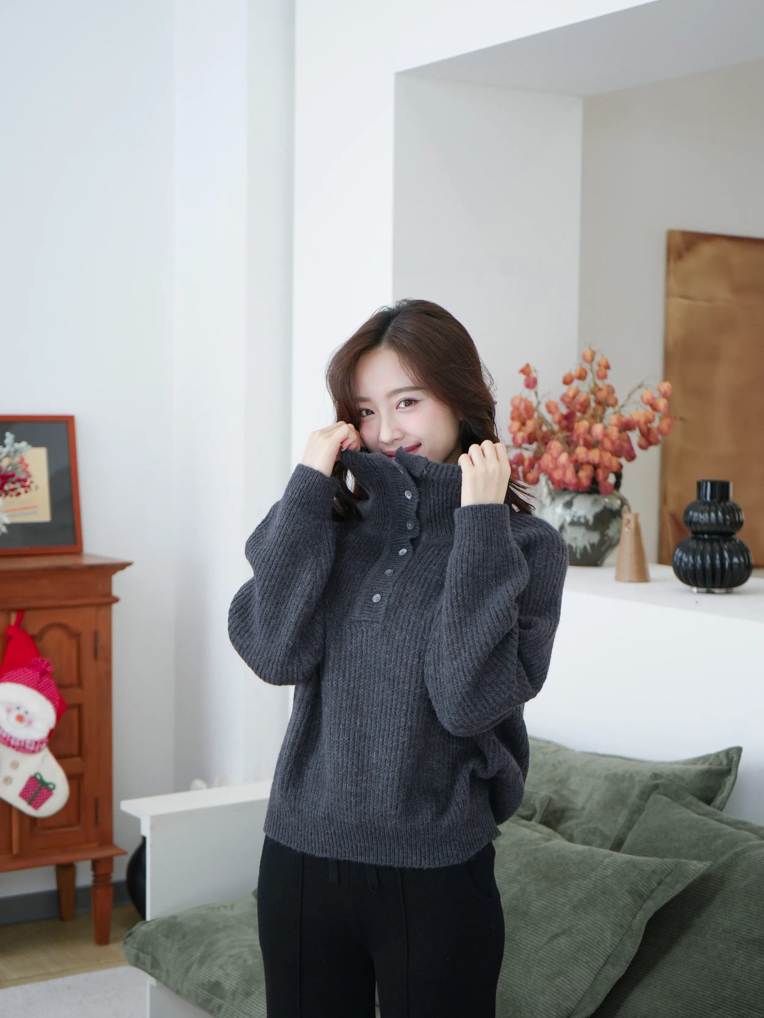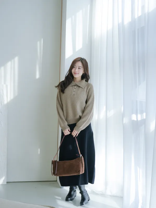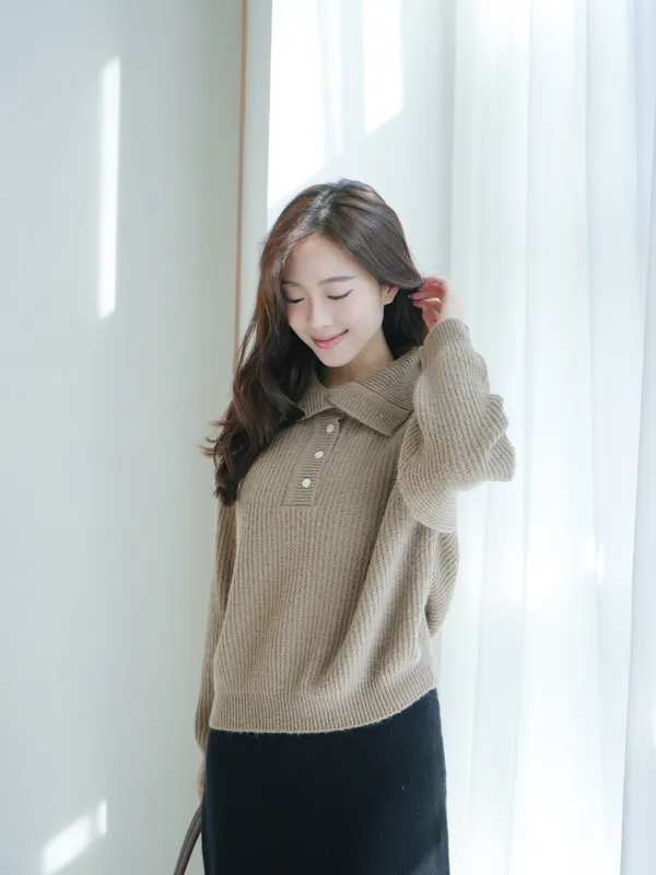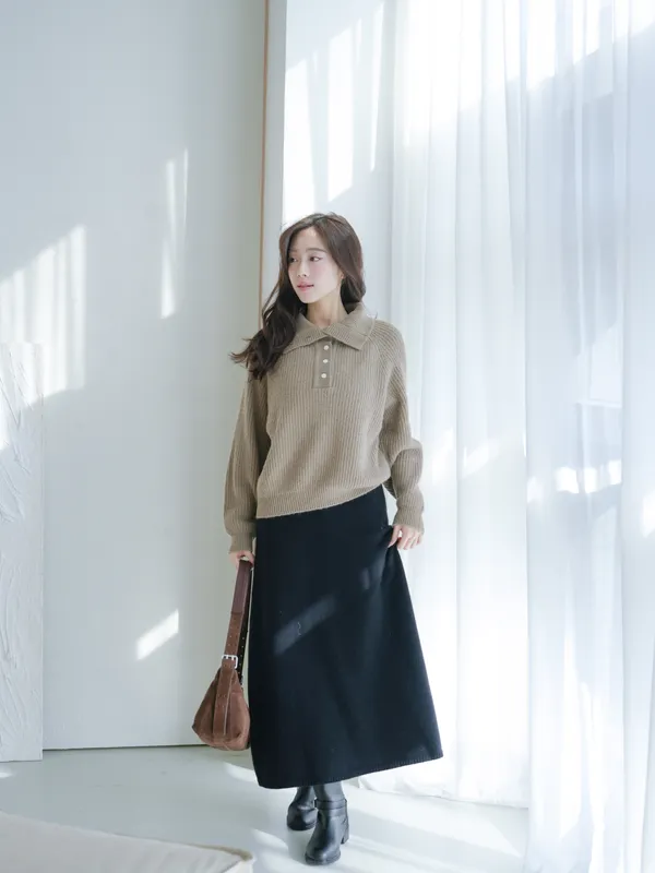 A122304 美麗諾羊毛高領針織上衣(可翻領)