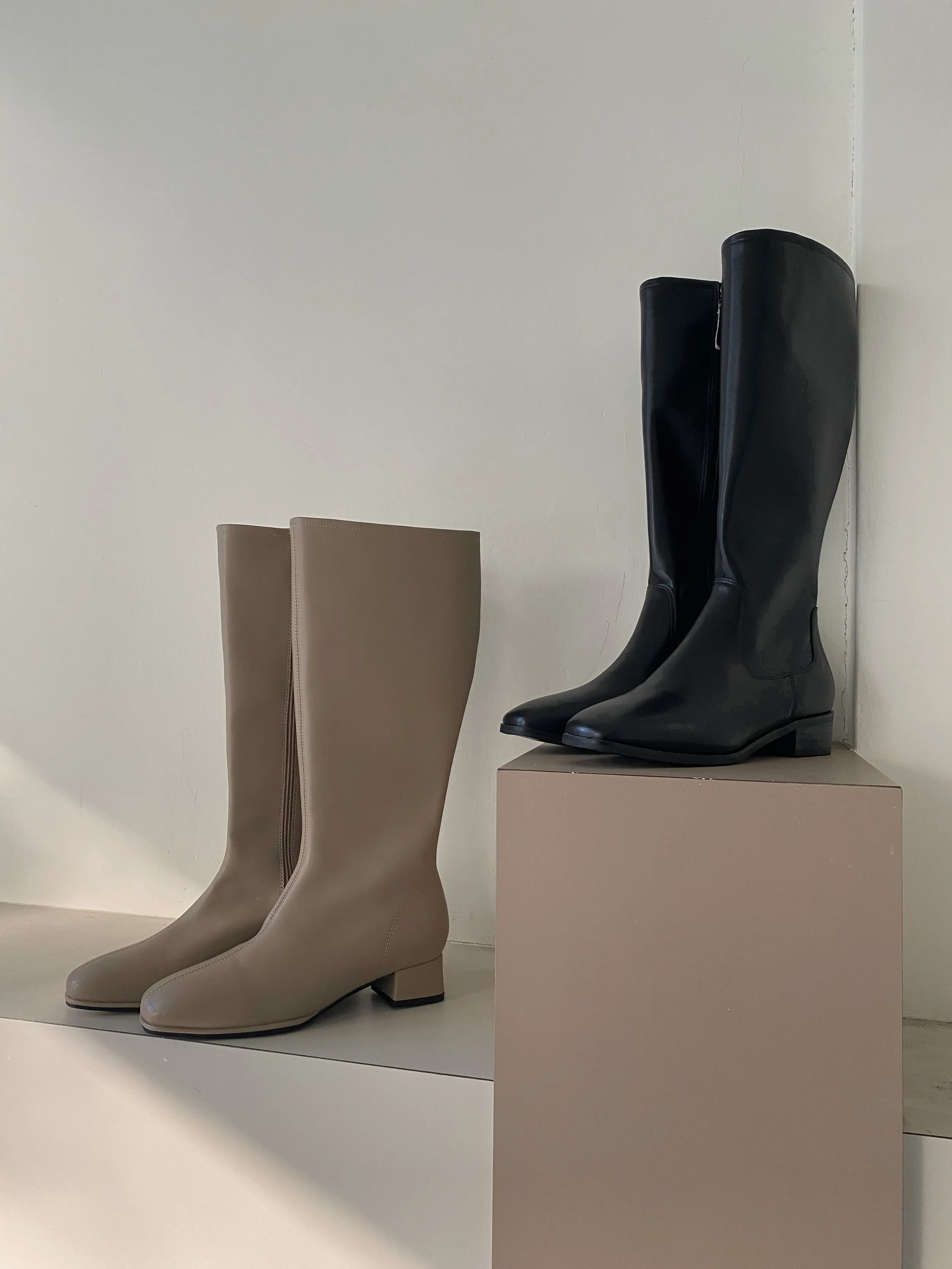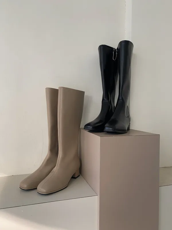 A122312 牛皮低跟微方頭靴