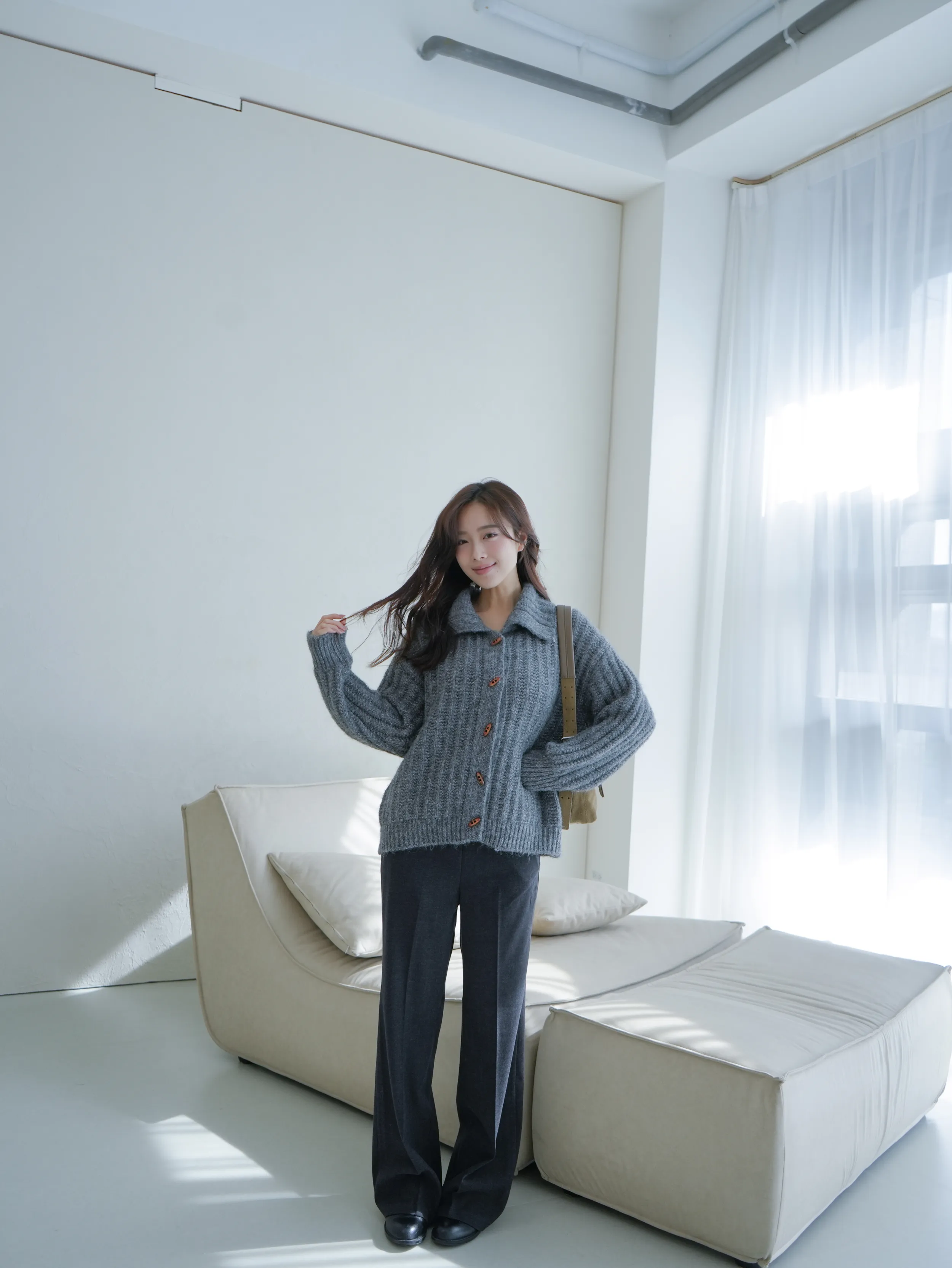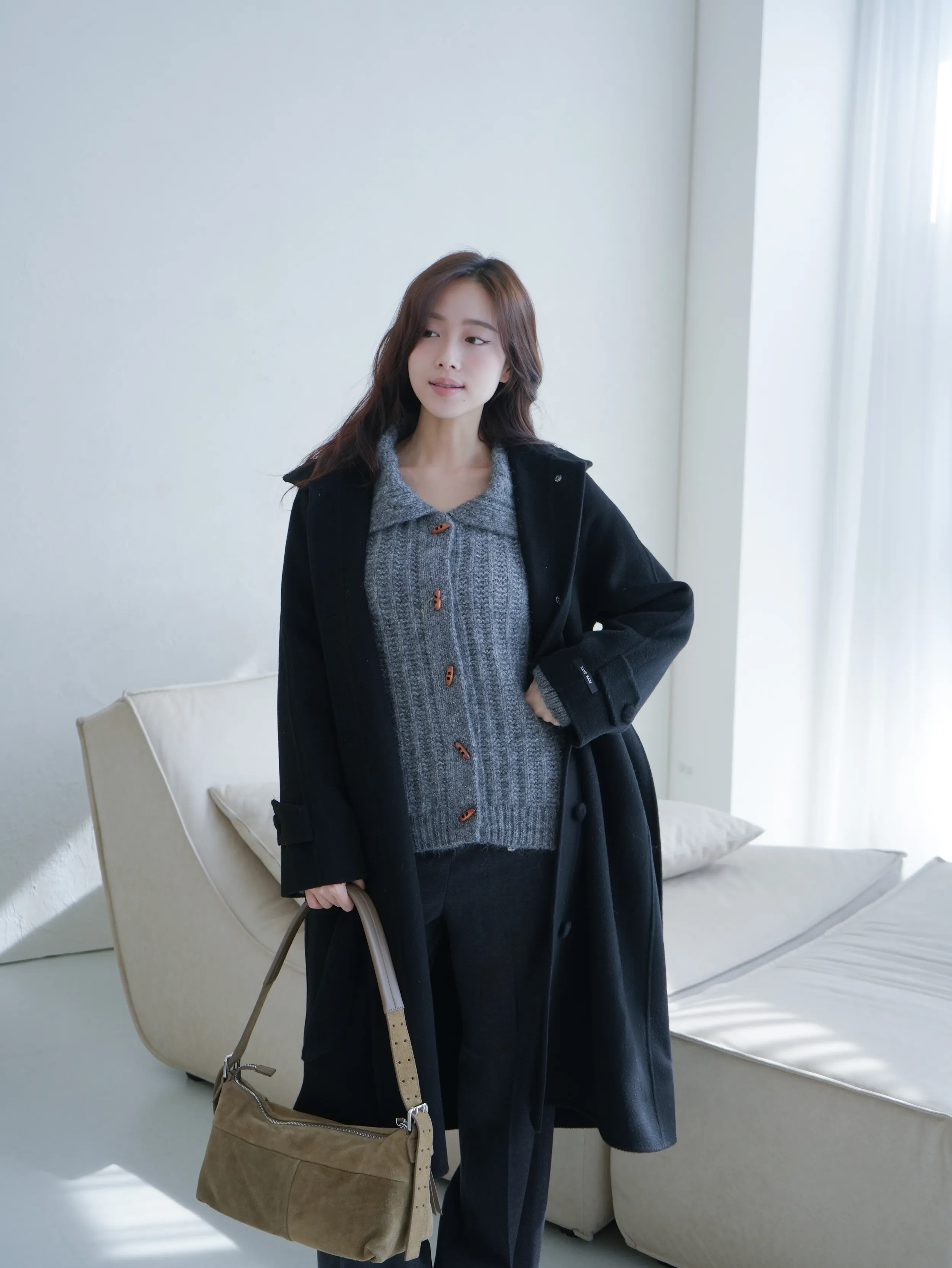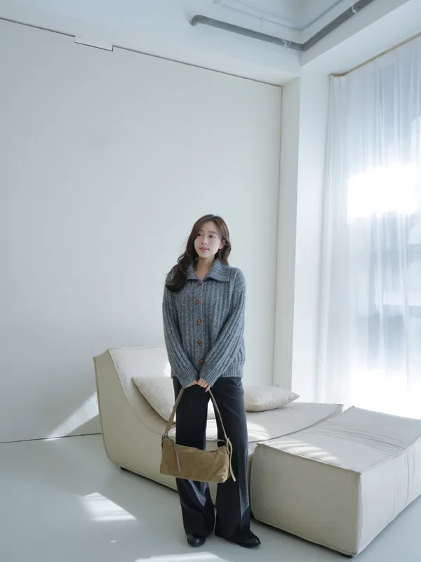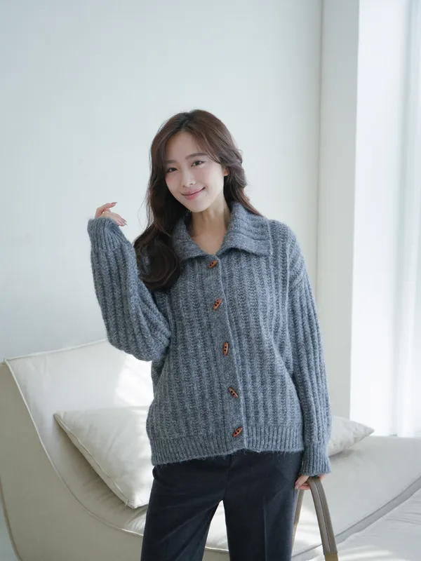 A122314 馬海毛針織牛角釦開衫