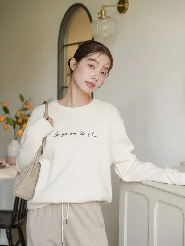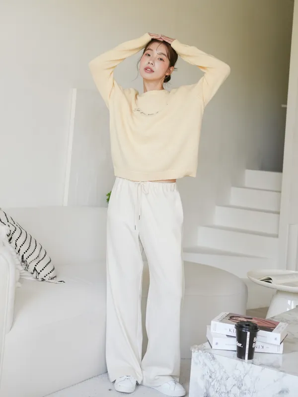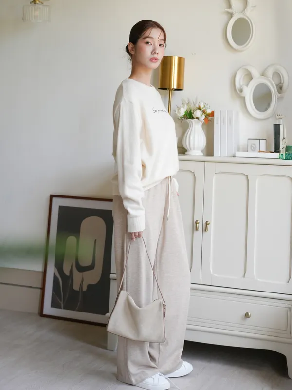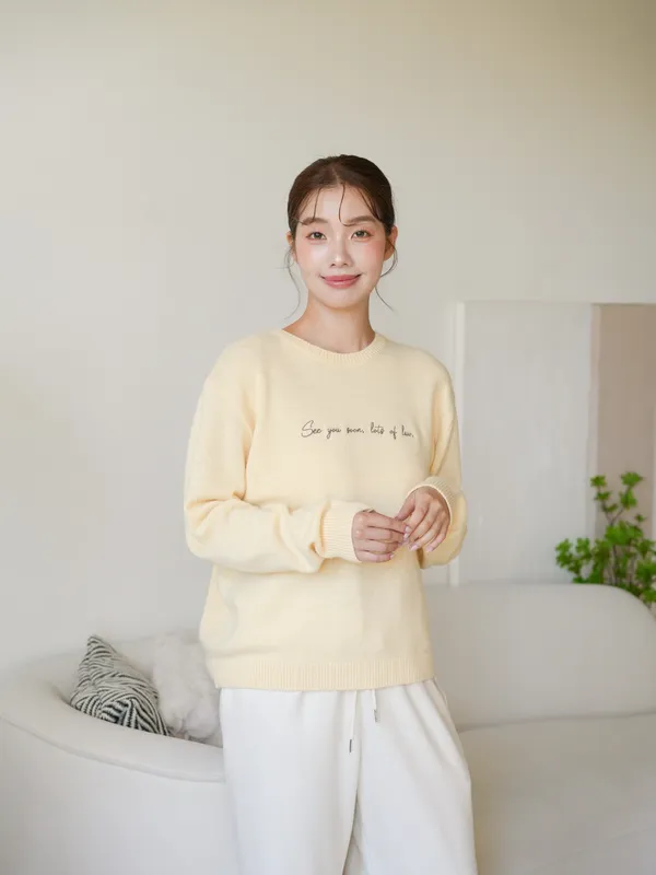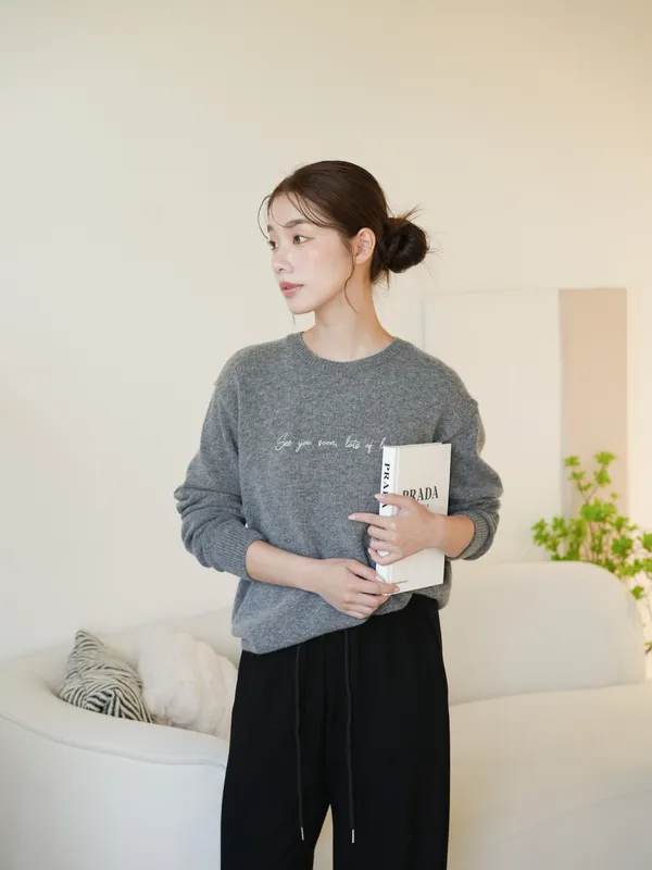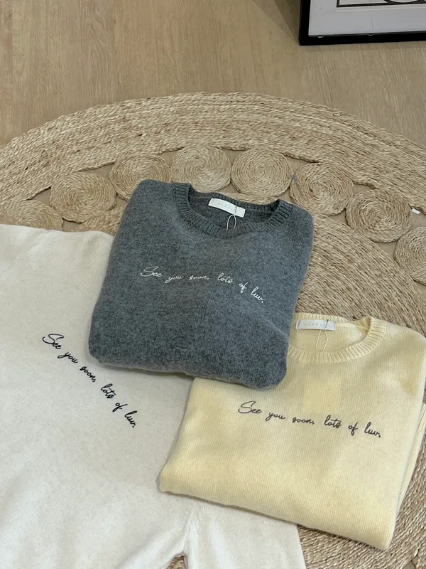 A12302 #拿鐵系列 刺繡100%羊毛針織長袖上衣
