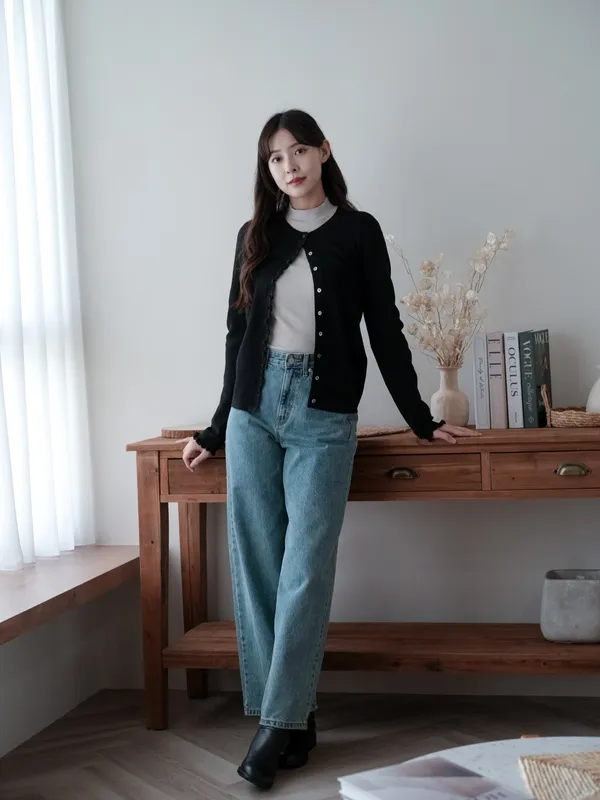 A12305 #簡單卻不平凡 花邊設計圓領針織衫
