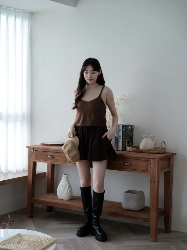 A12309 #審美提升 後鬆緊抓褶燈心絨短褲