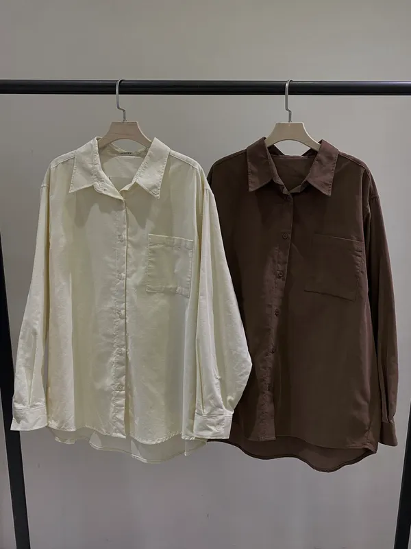 A12313 #木質暖咖 秋冬必收前短後長燈心絨襯衫