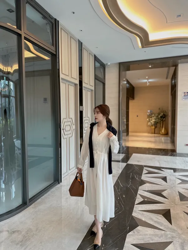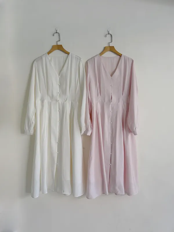 材質:棉聚酯春季限定款款棉+聚酯布料兩側打摺設計+腰身車線超修飾比例 更顯瘦整排包釦超有質感 真釦方便好穿脫 V領設計修飾臉型 更高級手袖微抓皺 搭配包釦點綴 增加浪漫感兩色皆有內裡 單穿也完全不怕透全長118CM 小隻女也沒問題 身形指南 身高 體重 鞋碼 麻糬媽 160 50 24.5 逸歡 168 48 25 彭彭 165 47 23.5