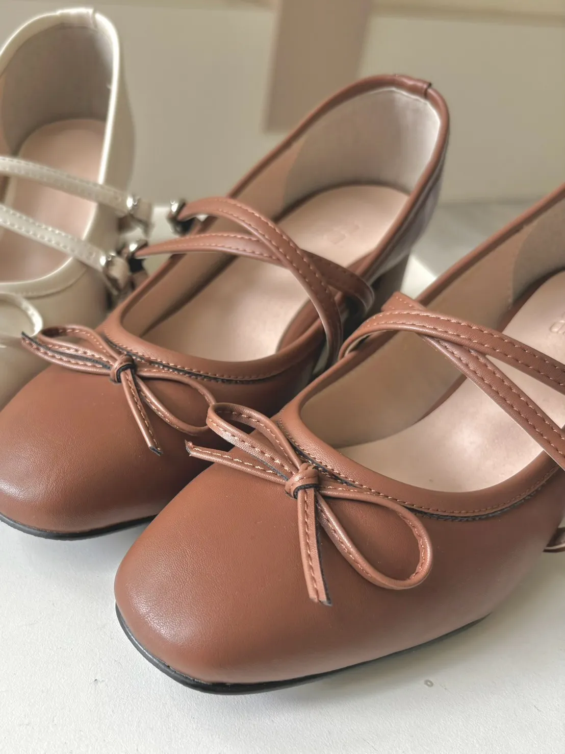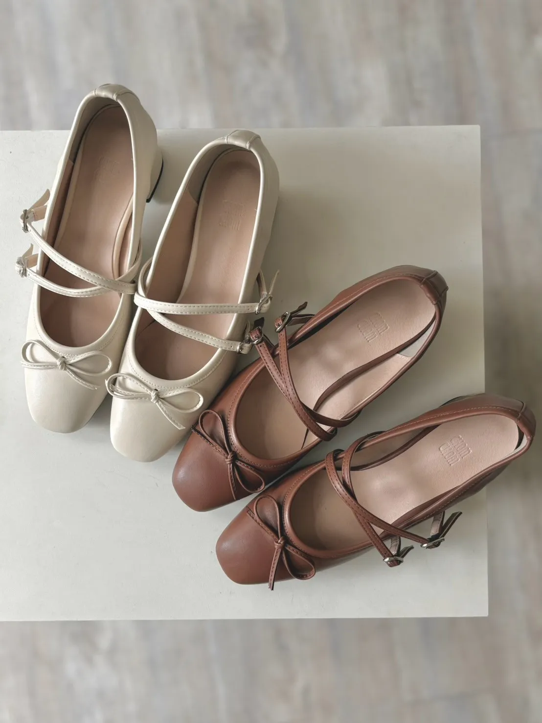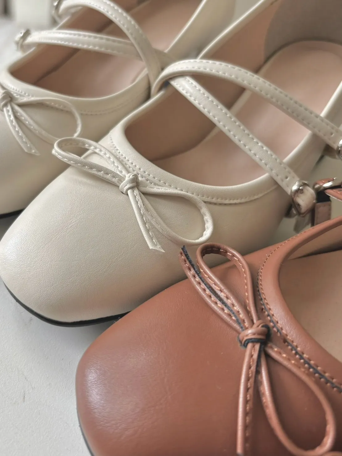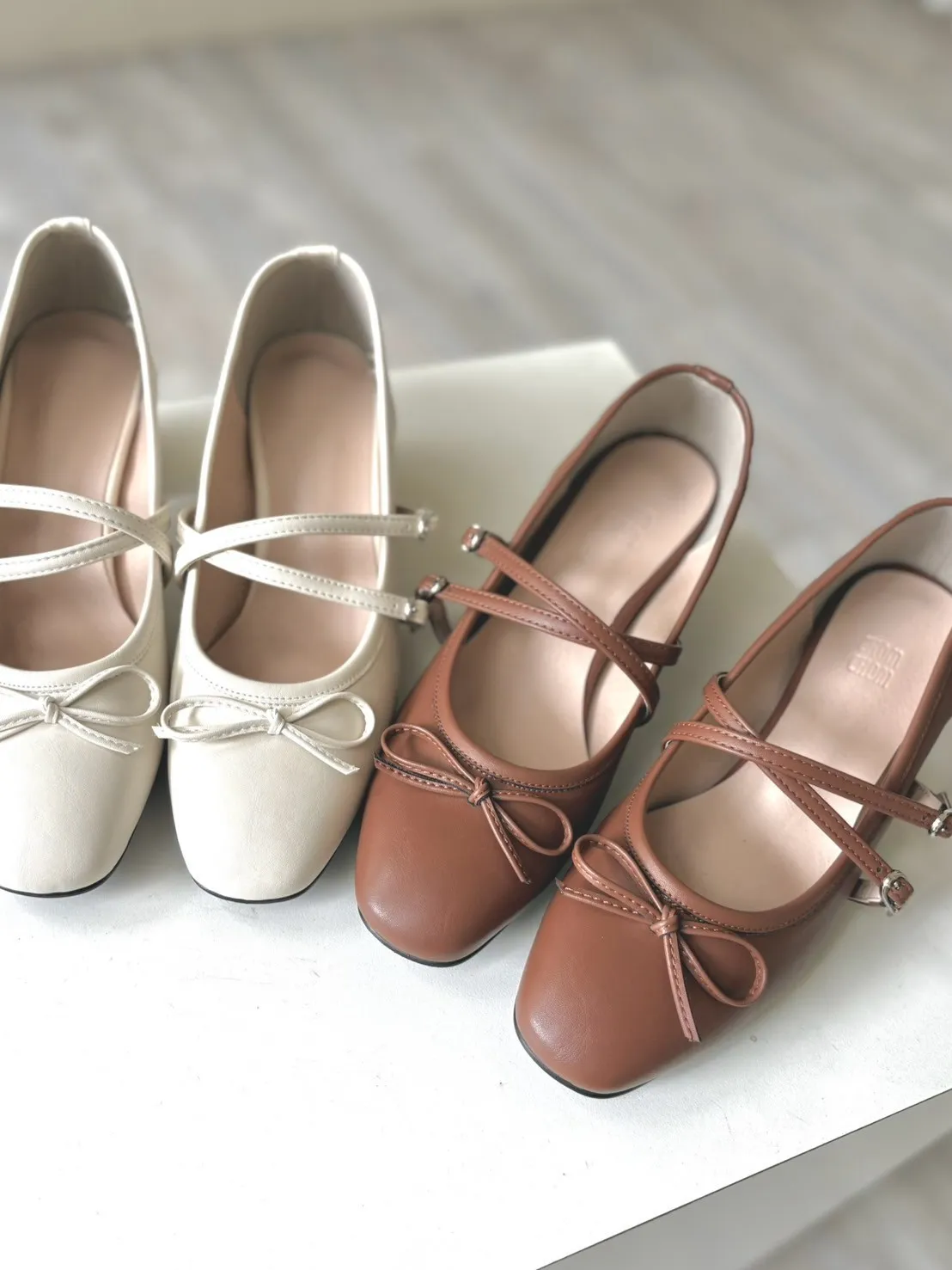 A31212 牛皮蝴蝶結低跟淑女鞋
