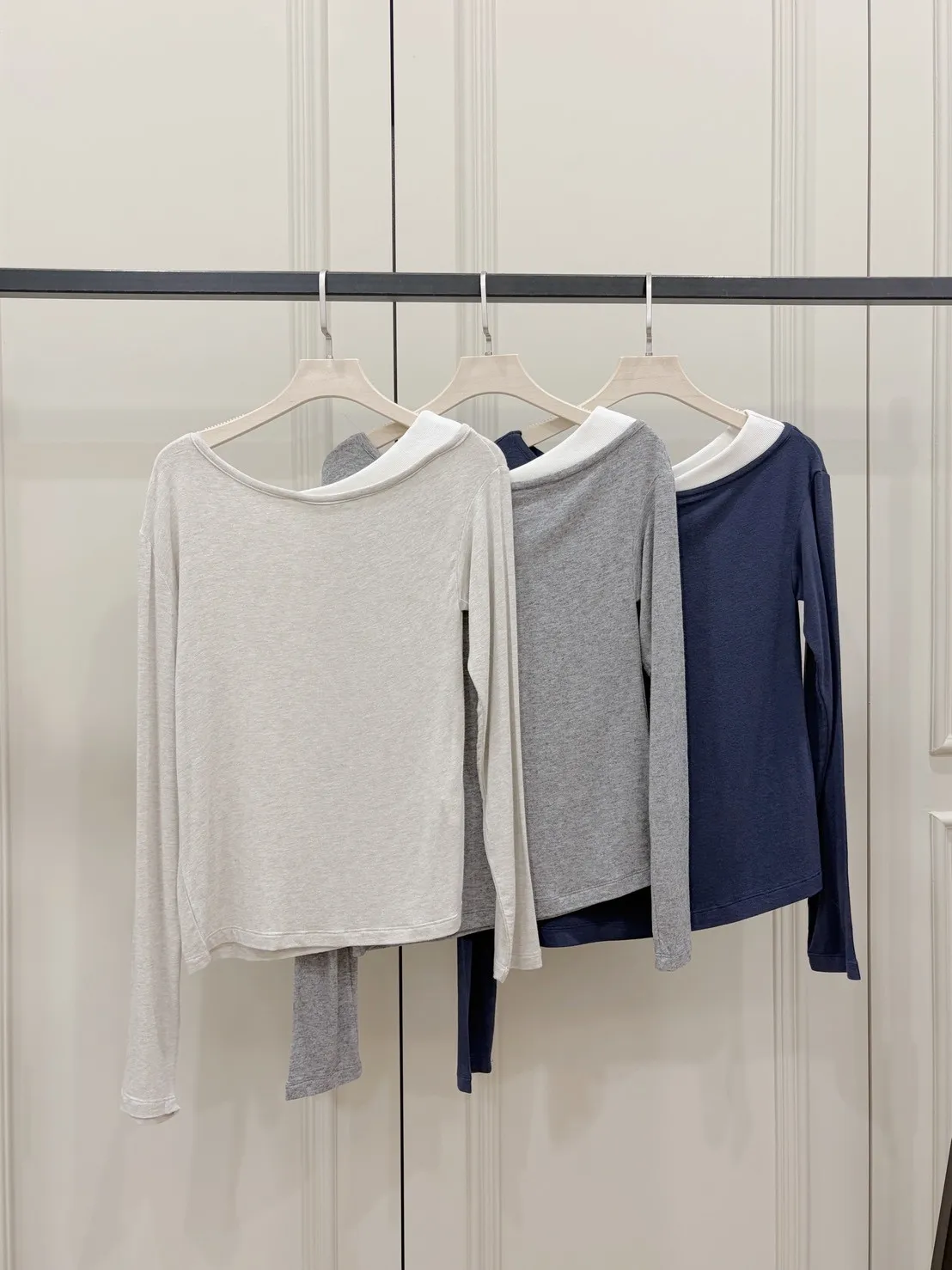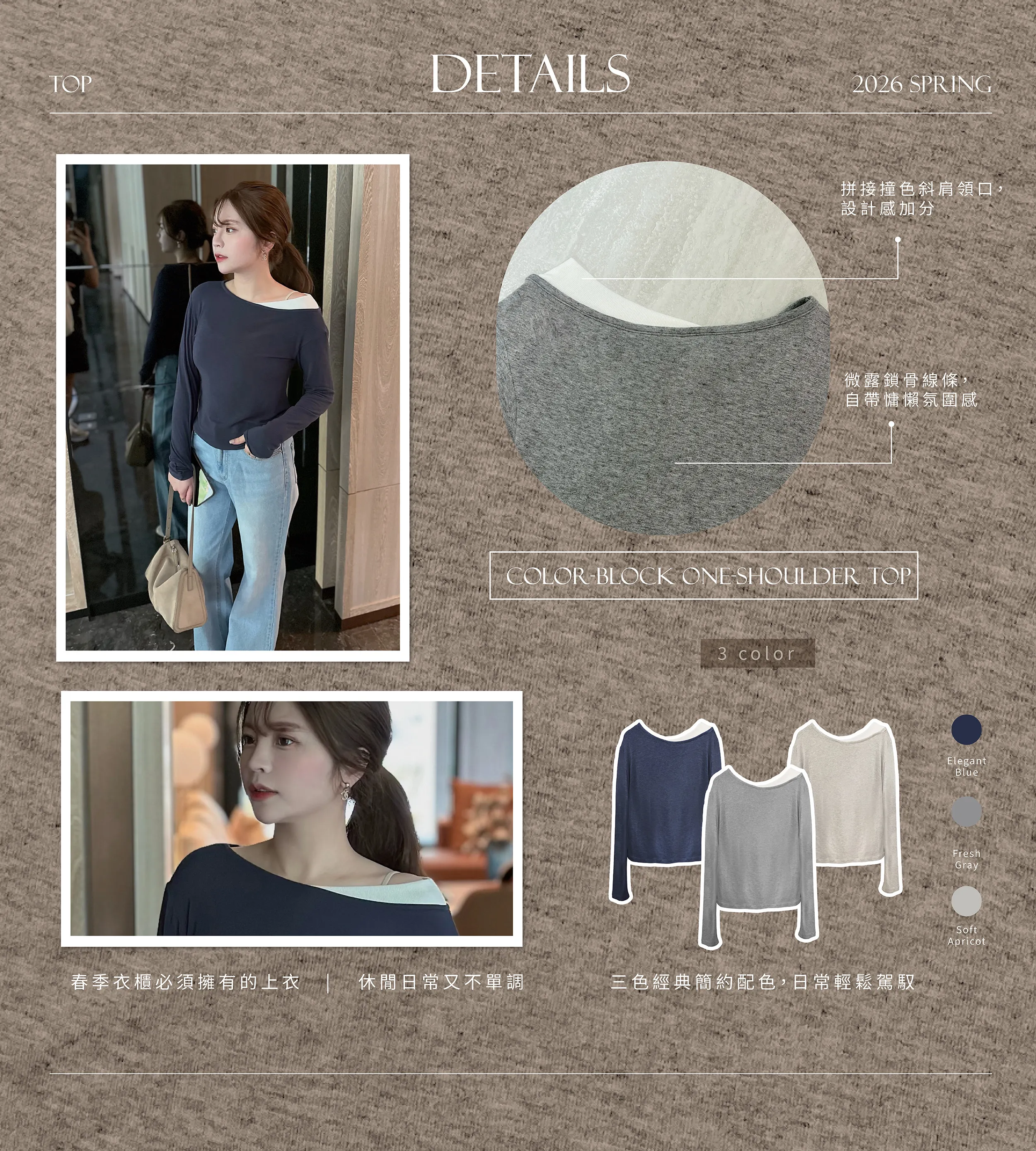 材質:莫代爾棉春天衣櫃必備質感上衣微露鎖骨線條 自帶慵懶氛圍感休閒中帶點不費力的時髦感 日常又不單調拼接撞色斜肩領口 設計感加分三色經典簡約配色 日常輕鬆駕馭 身形指南 身高 體重 鞋碼 麻糬媽 160 50 24.5 逸歡 168 48 25 彭彭 165 47 23.5