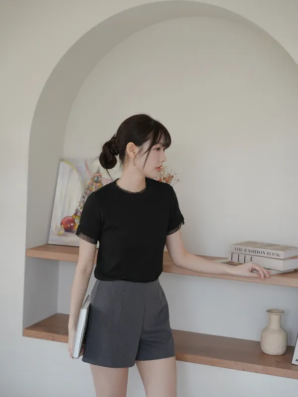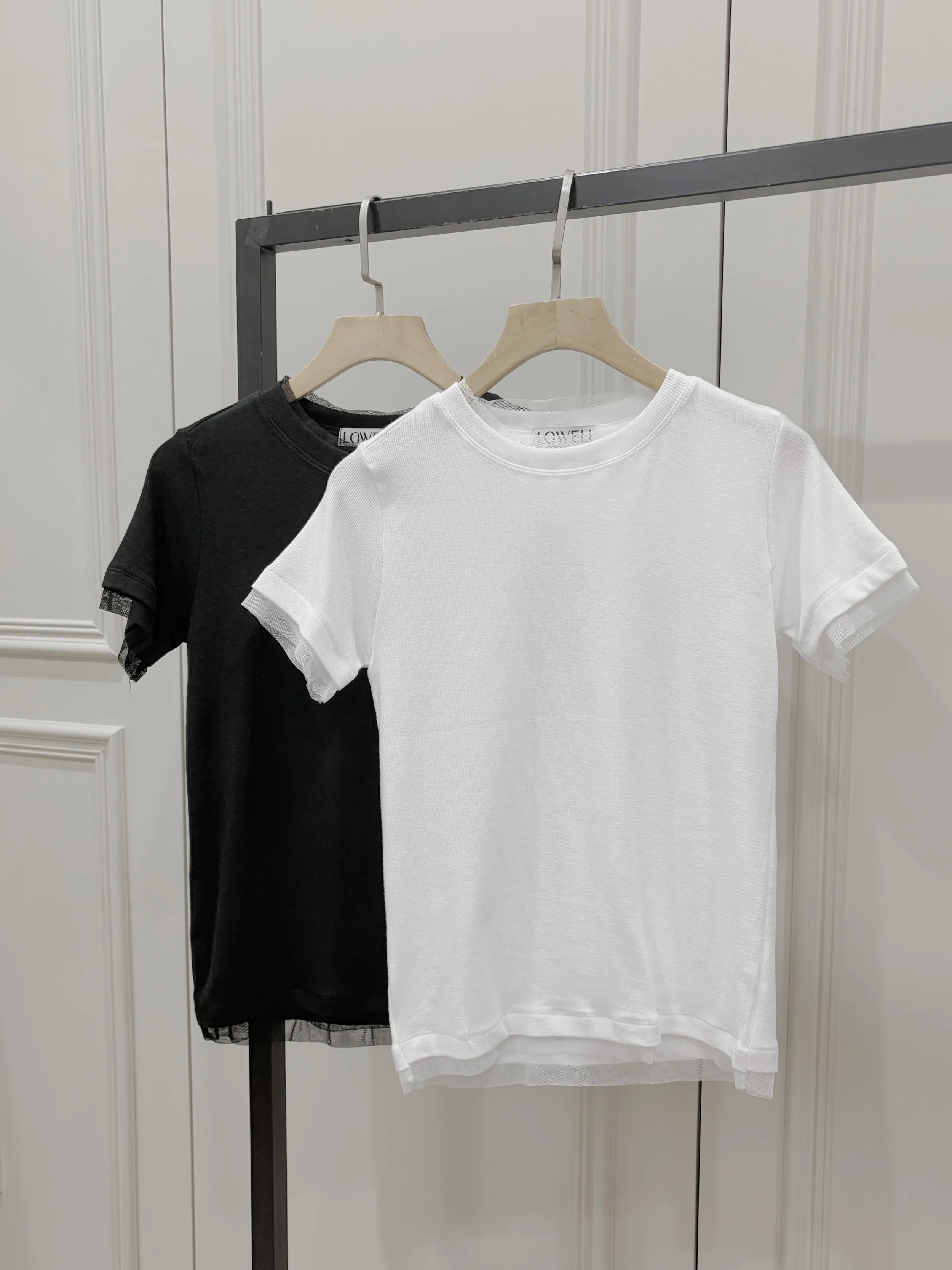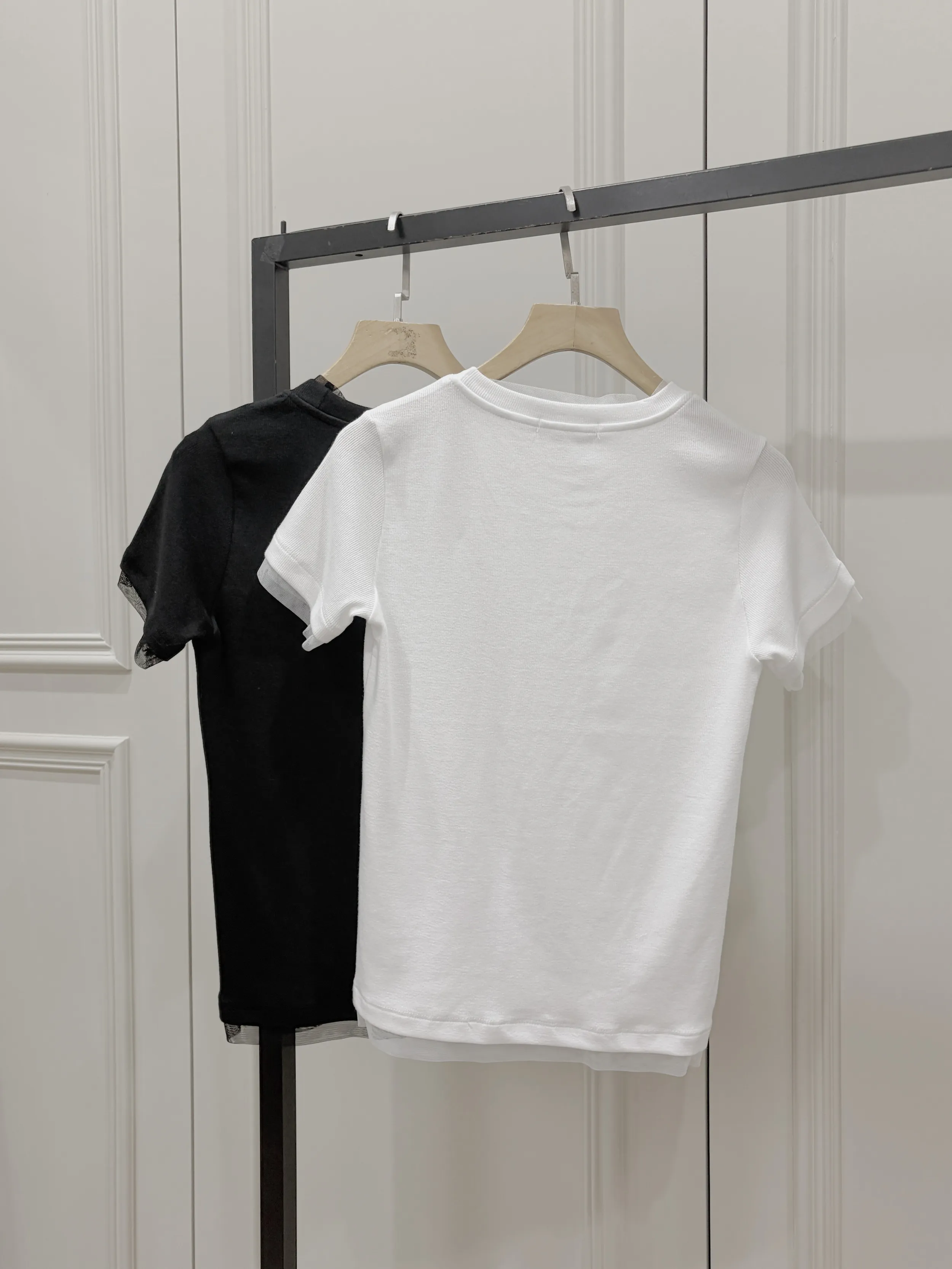 A41303 柔軟舒適拉滿假兩件圓領上衣