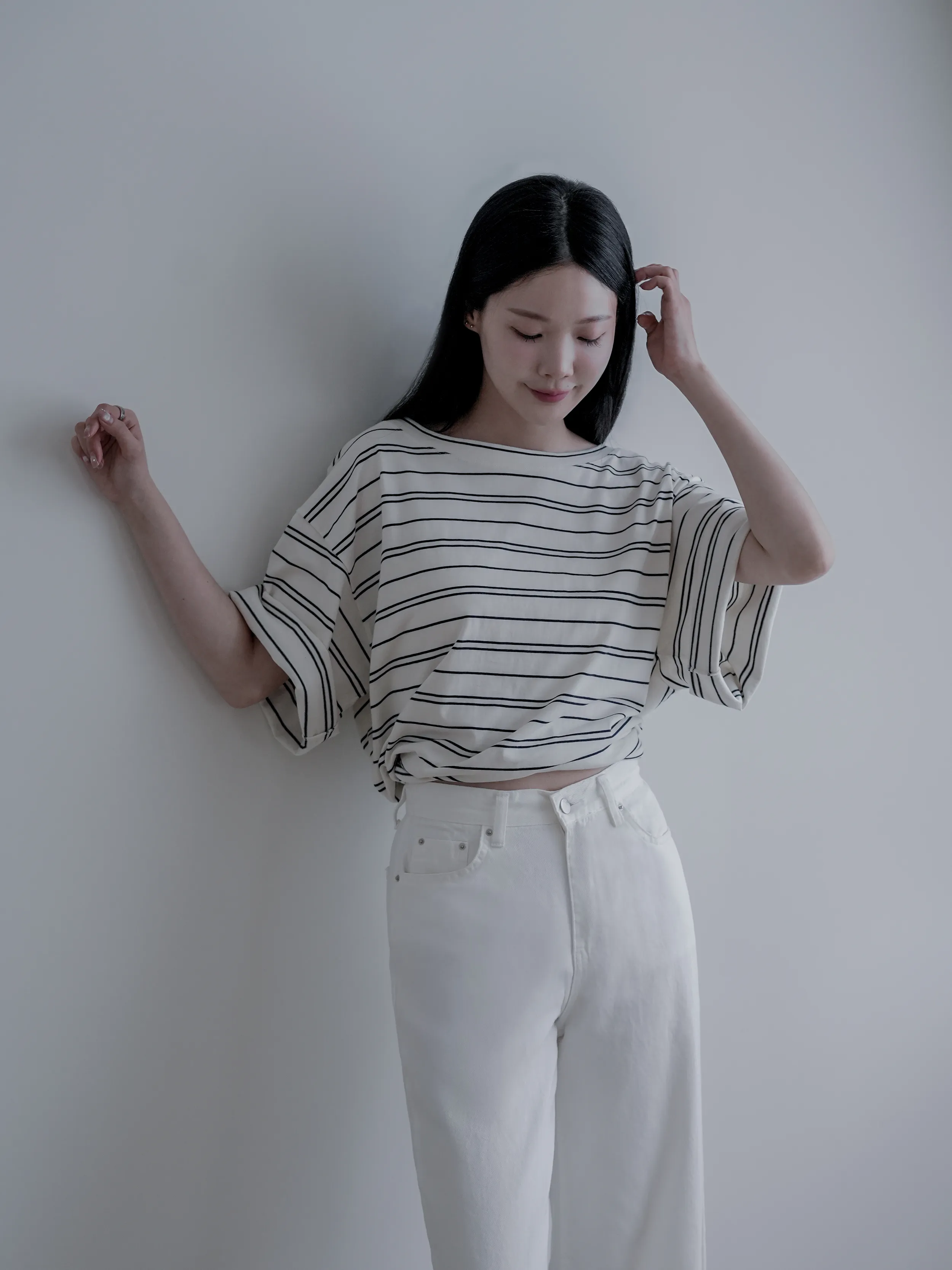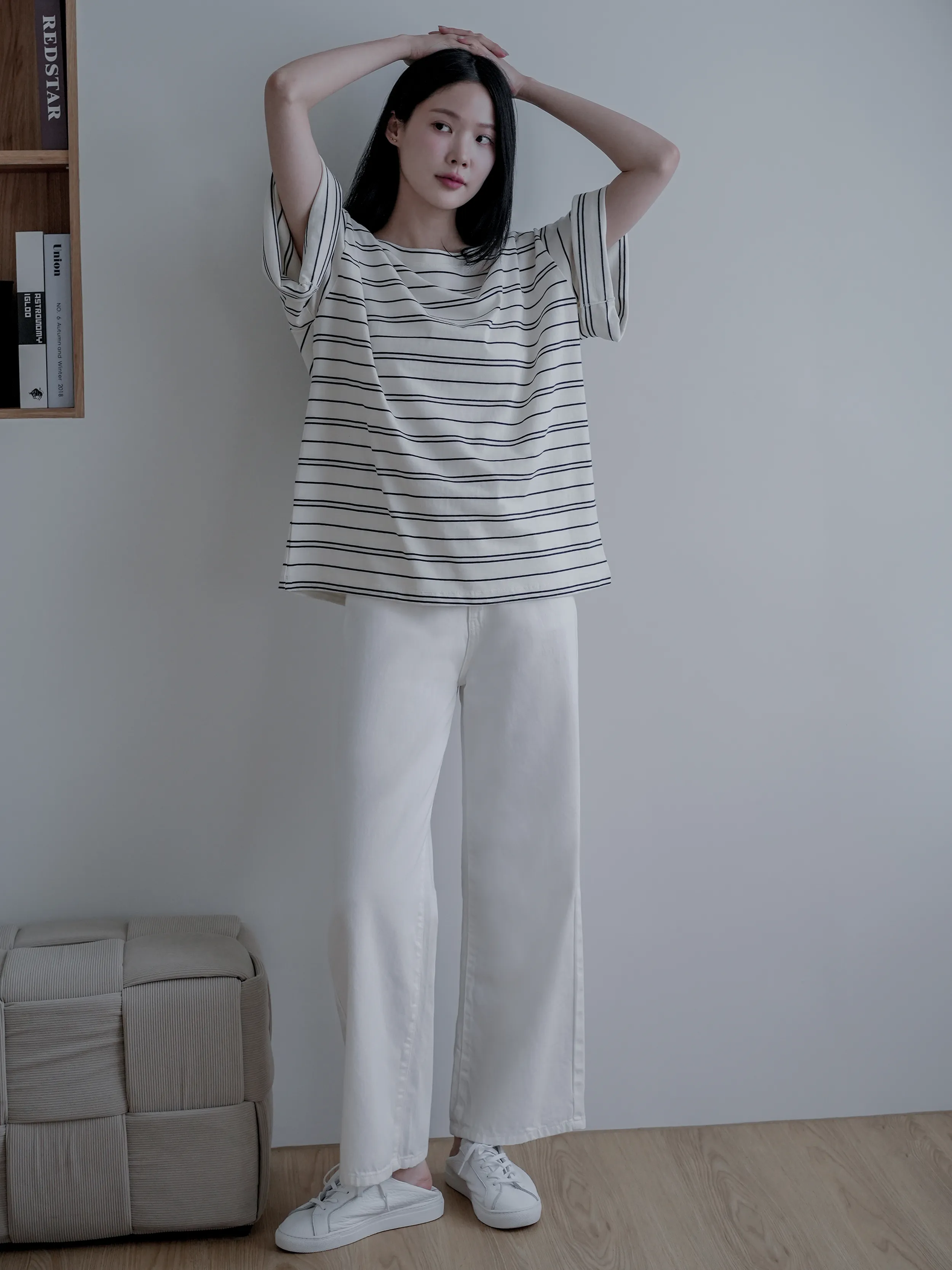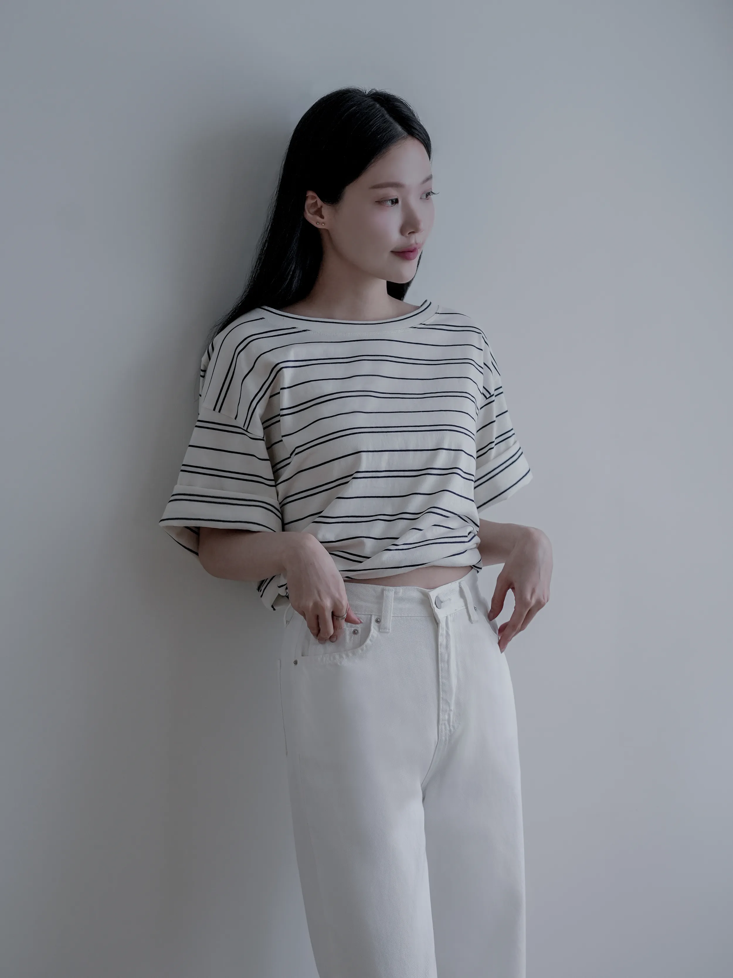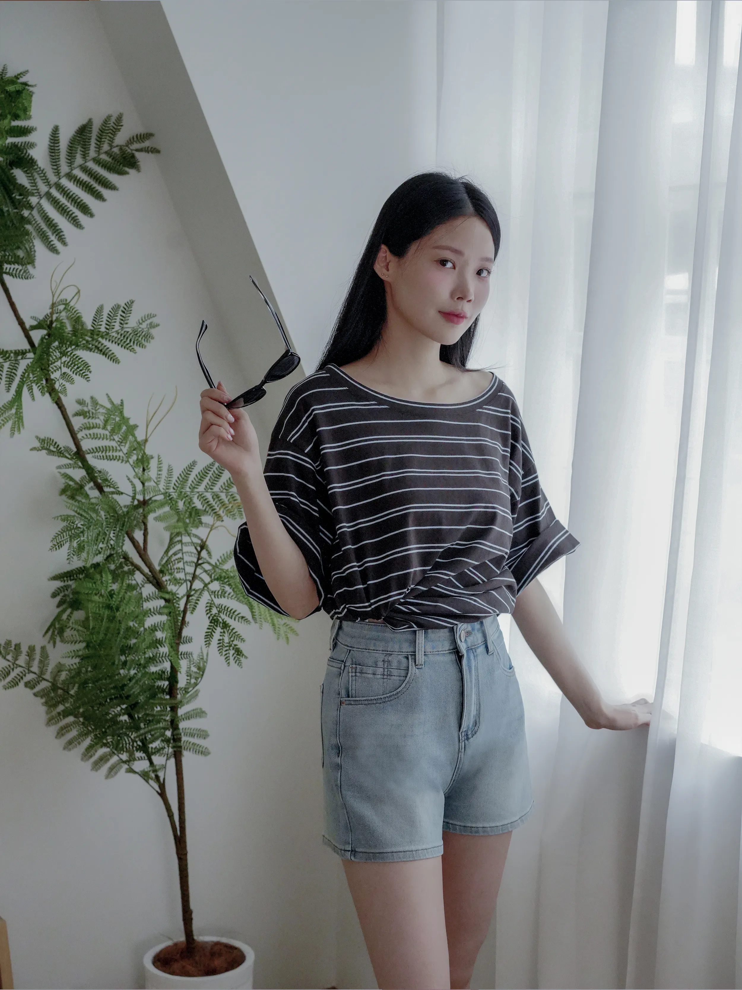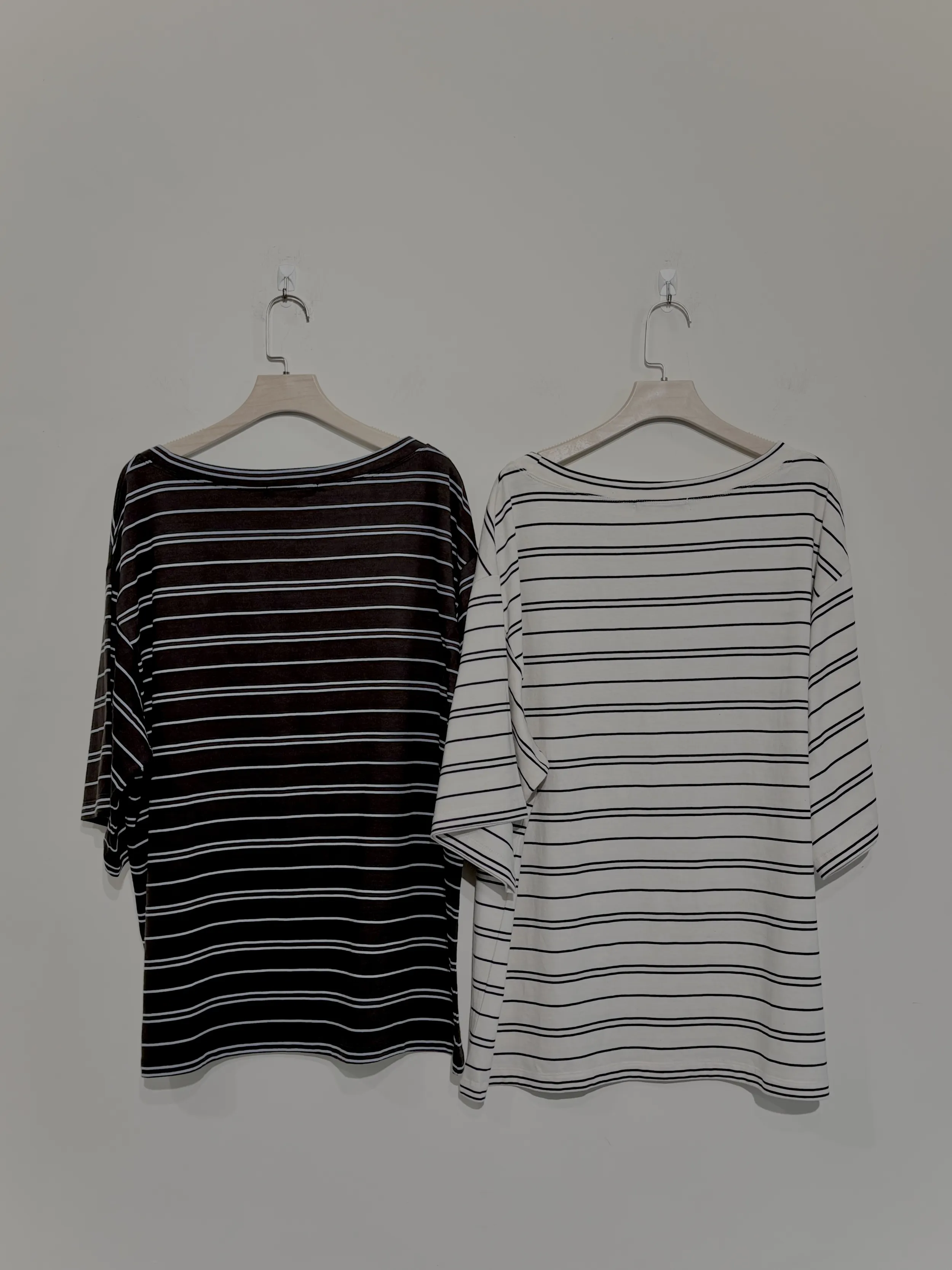 A61605#男友風 條紋圓領寬鬆T-shirt