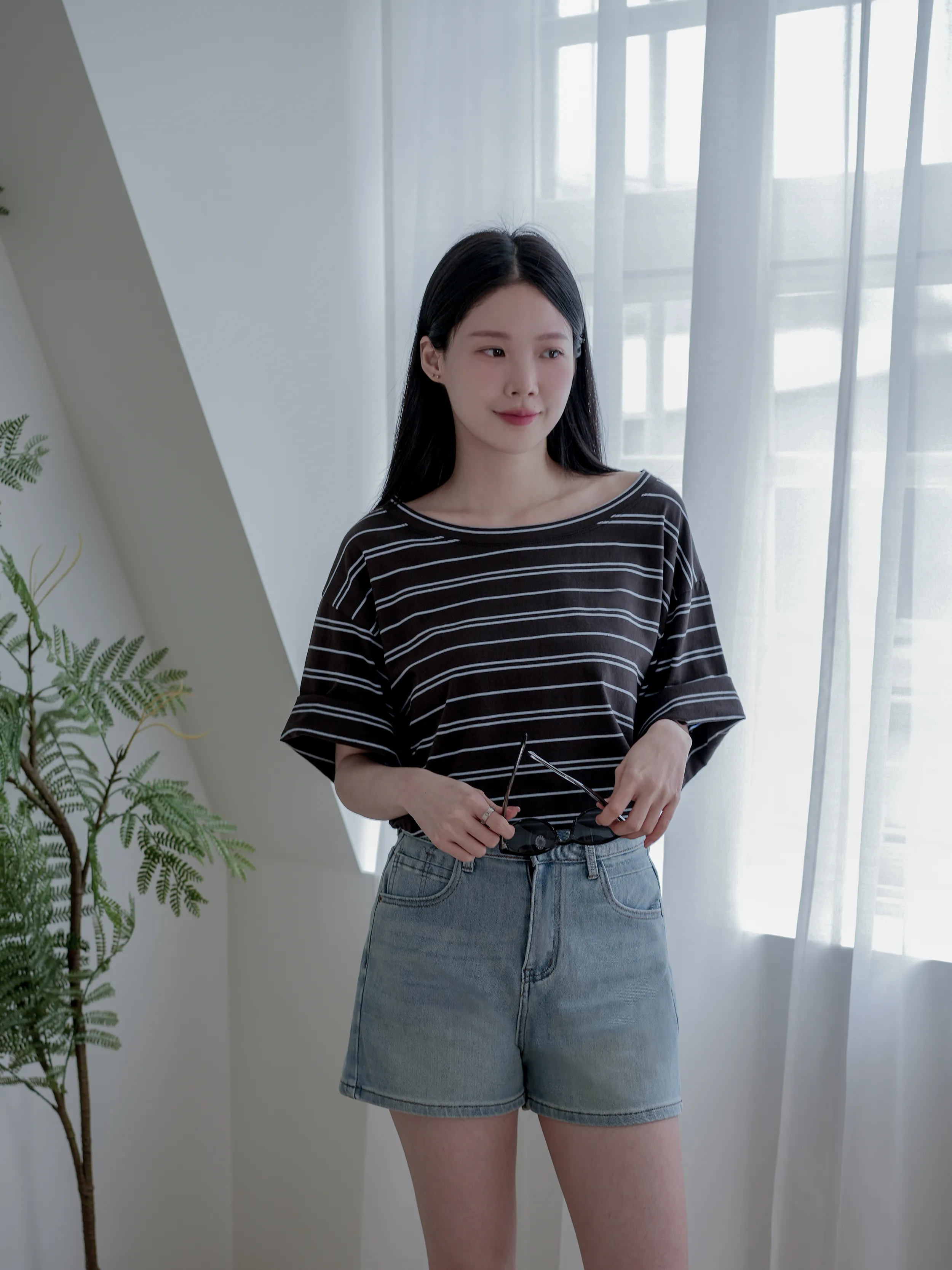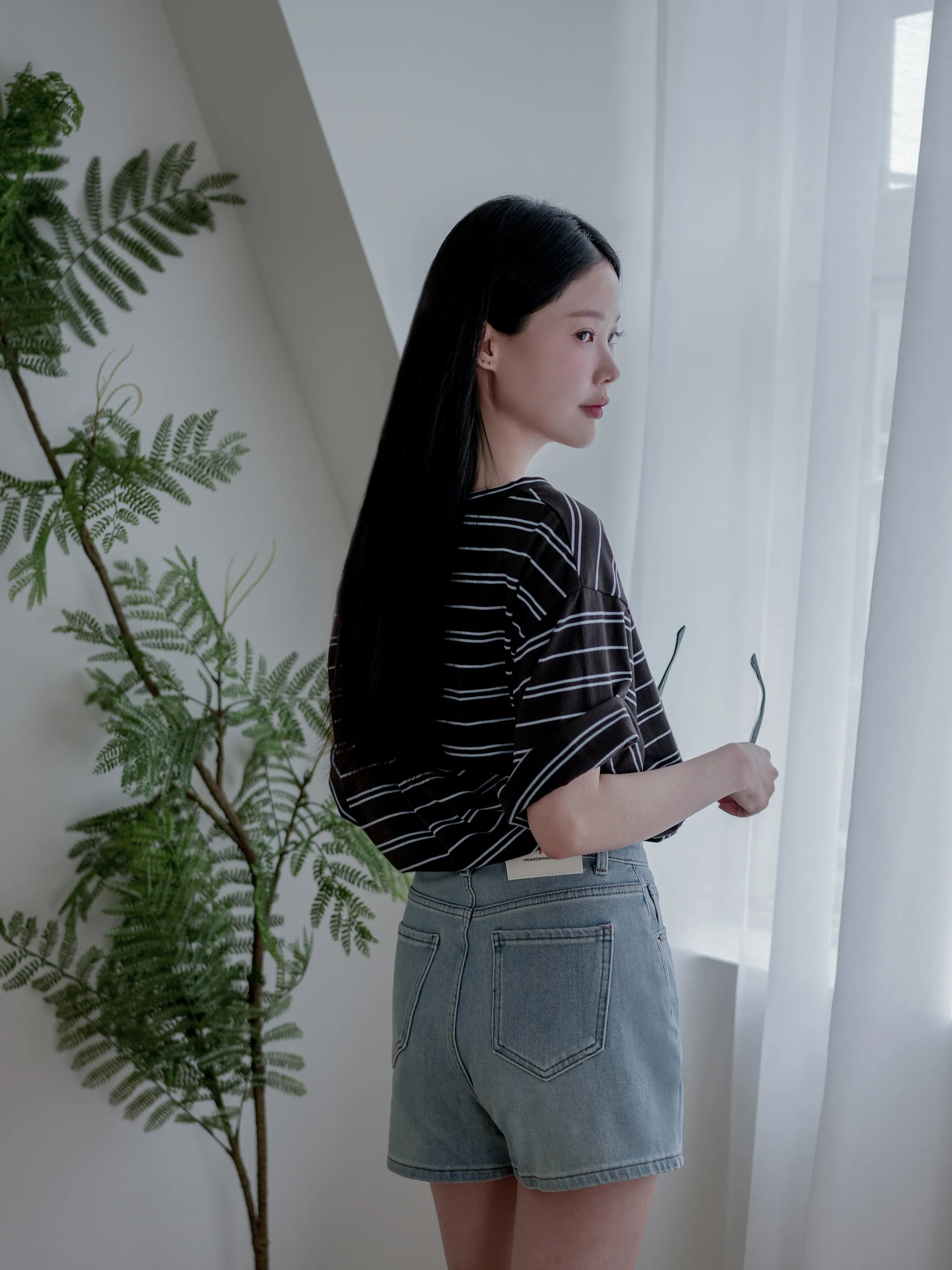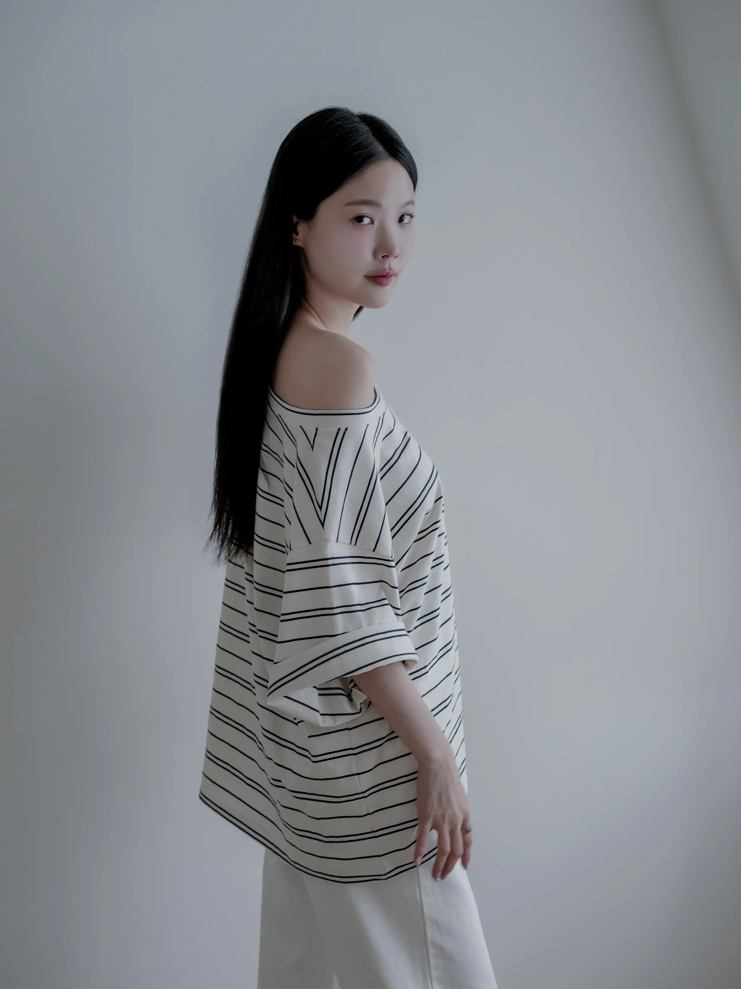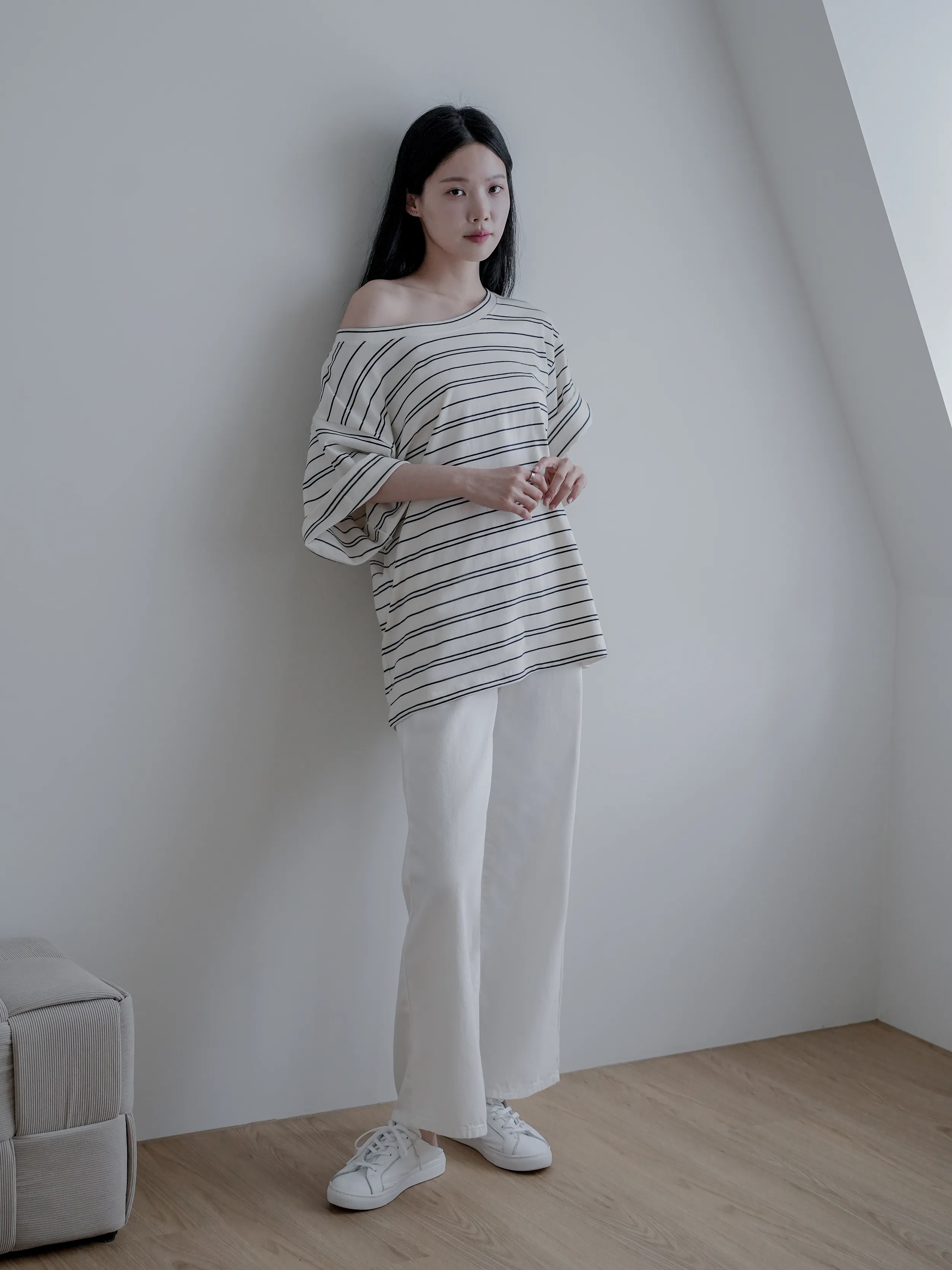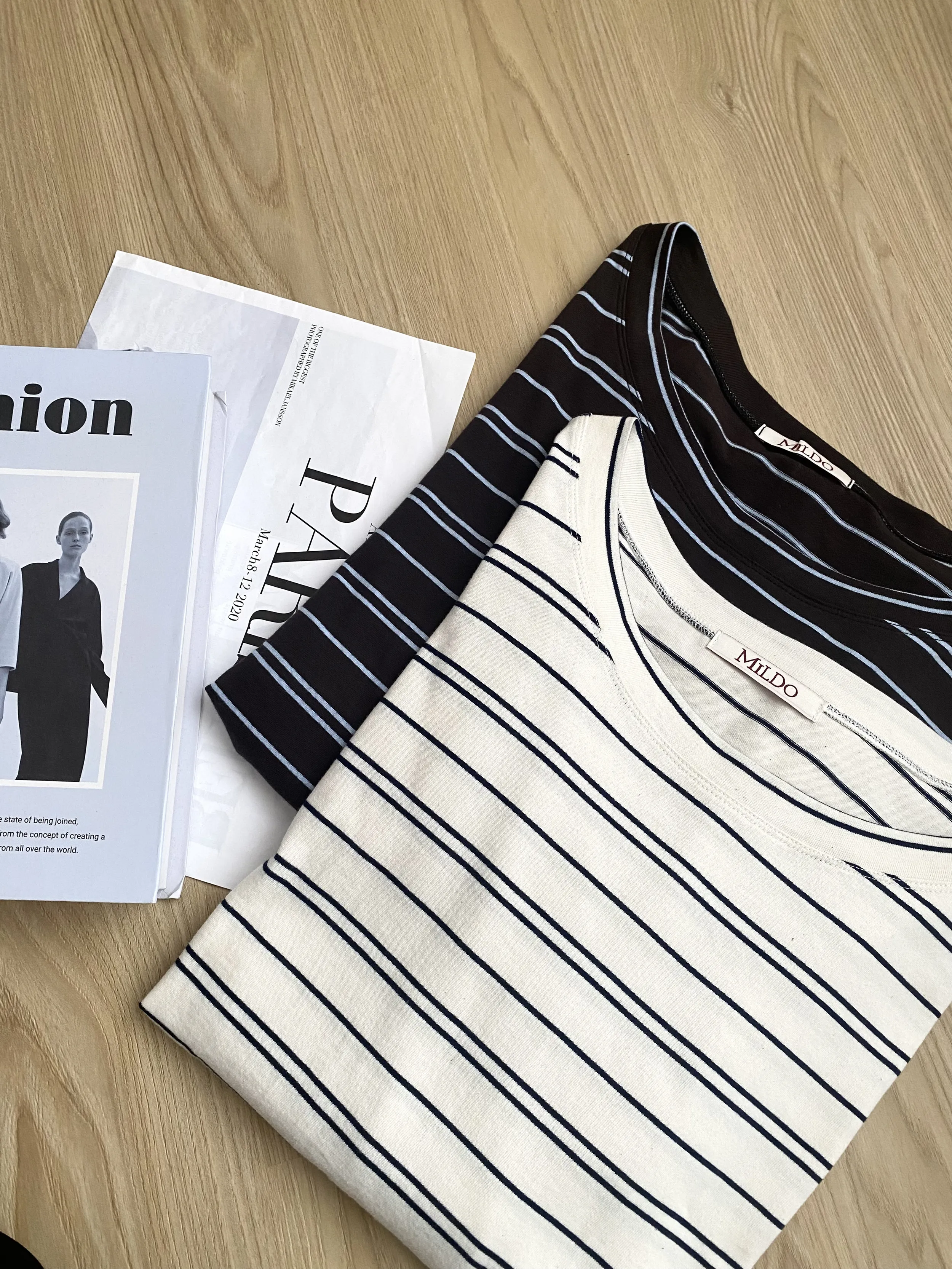 A61605#男友風 條紋圓領寬鬆T-shirt