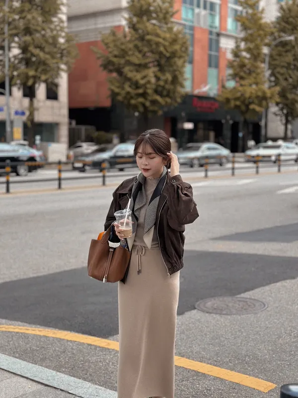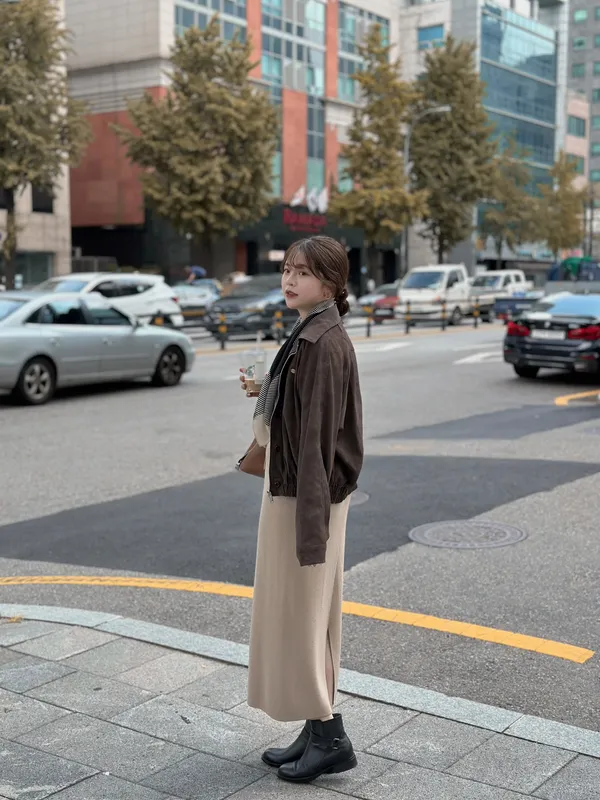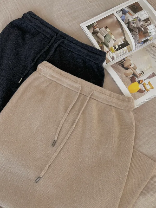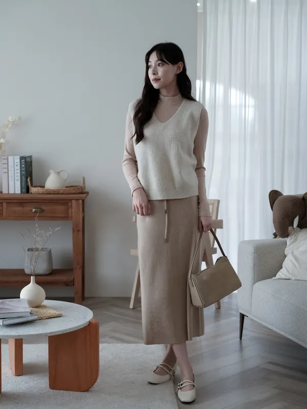 A81701 #故事橋下 30%羊毛鬆緊彈性抽繩後開衩顯瘦長裙