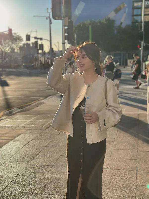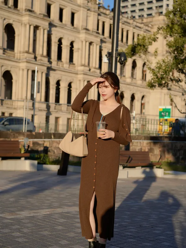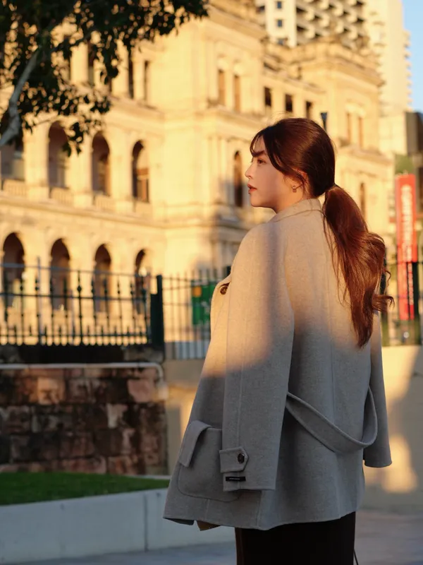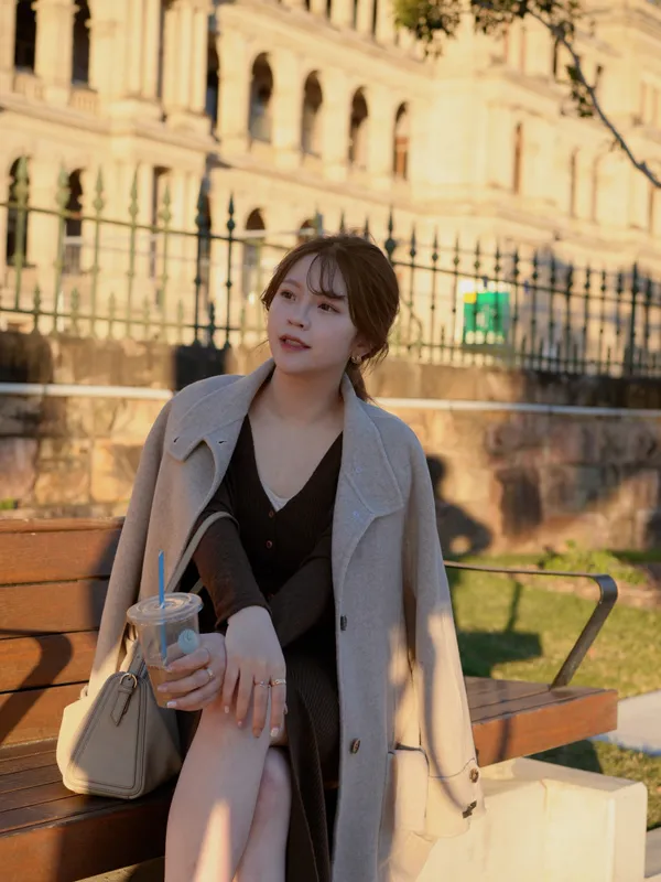 A81706 完售倒數#在冬季相遇 33%羊毛木紋釦坑紋開衩套裝(長洋+小外套)