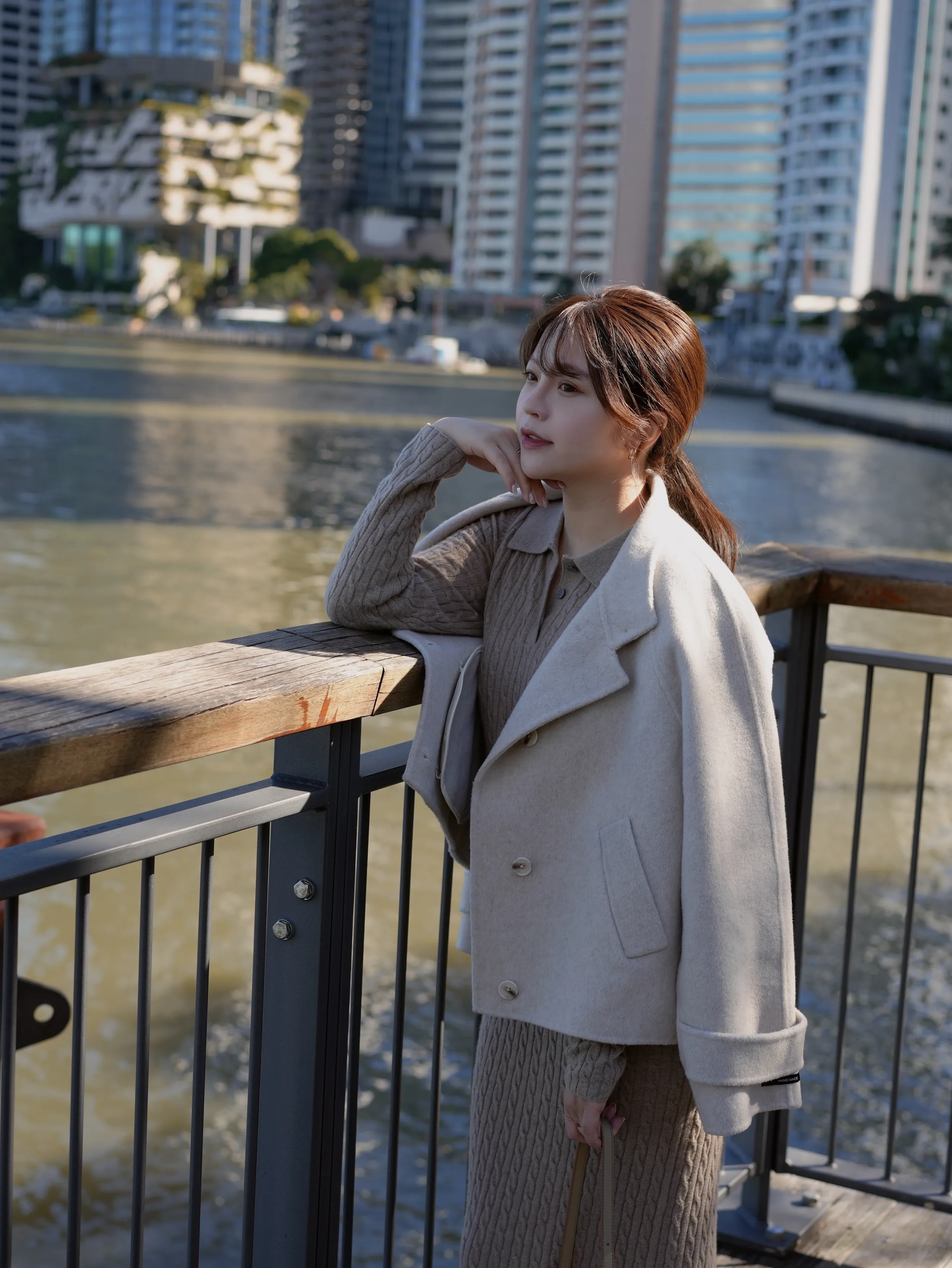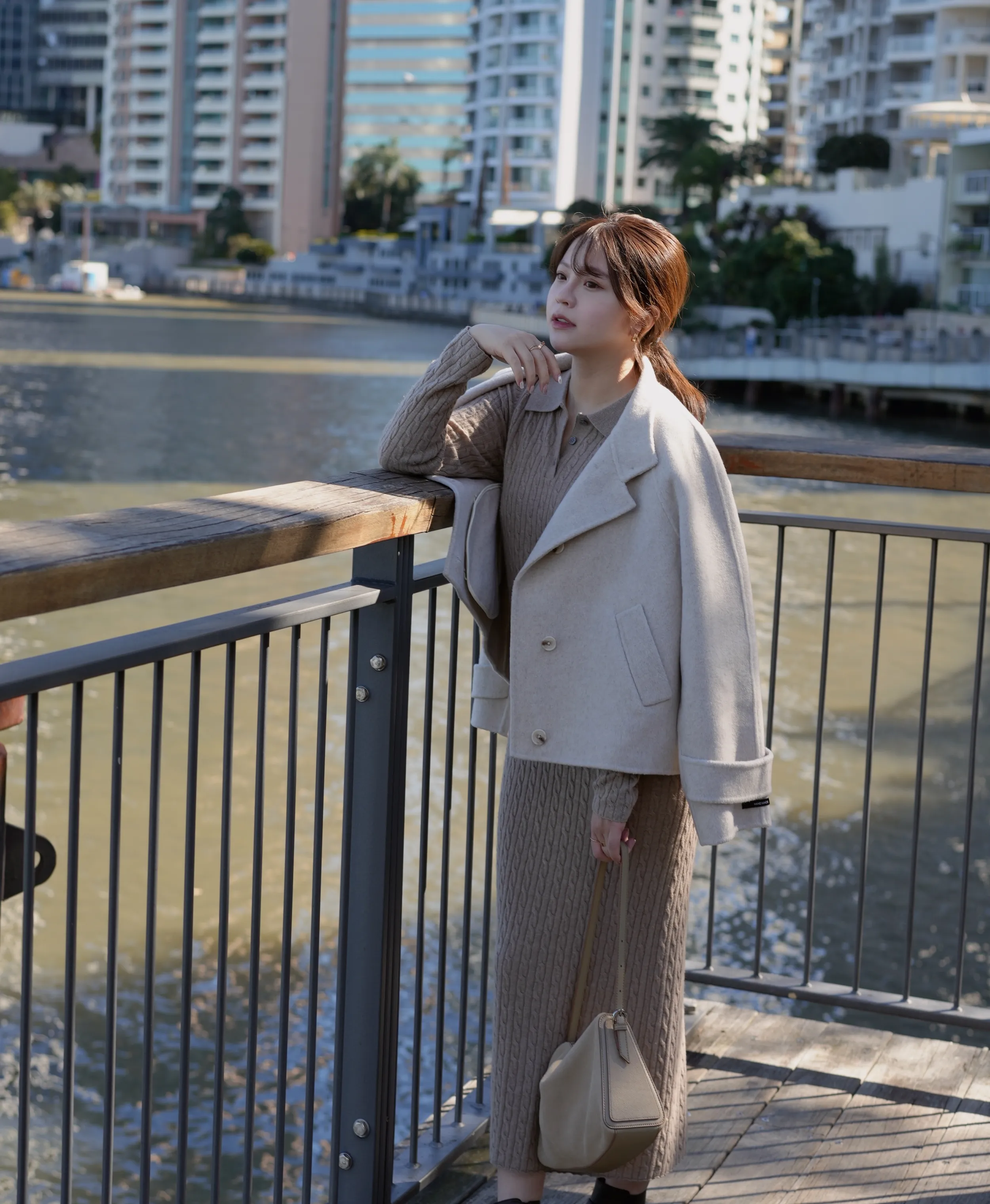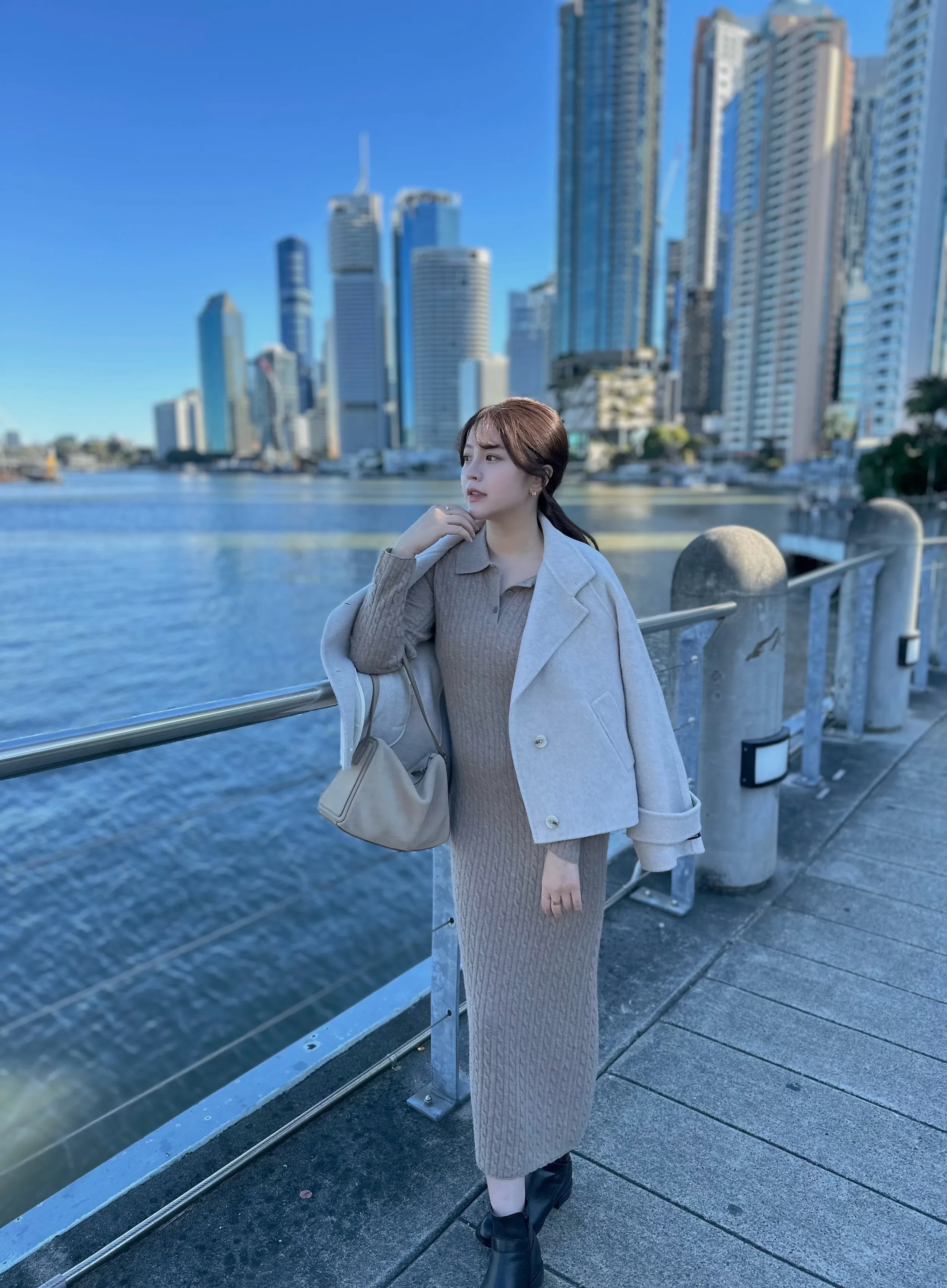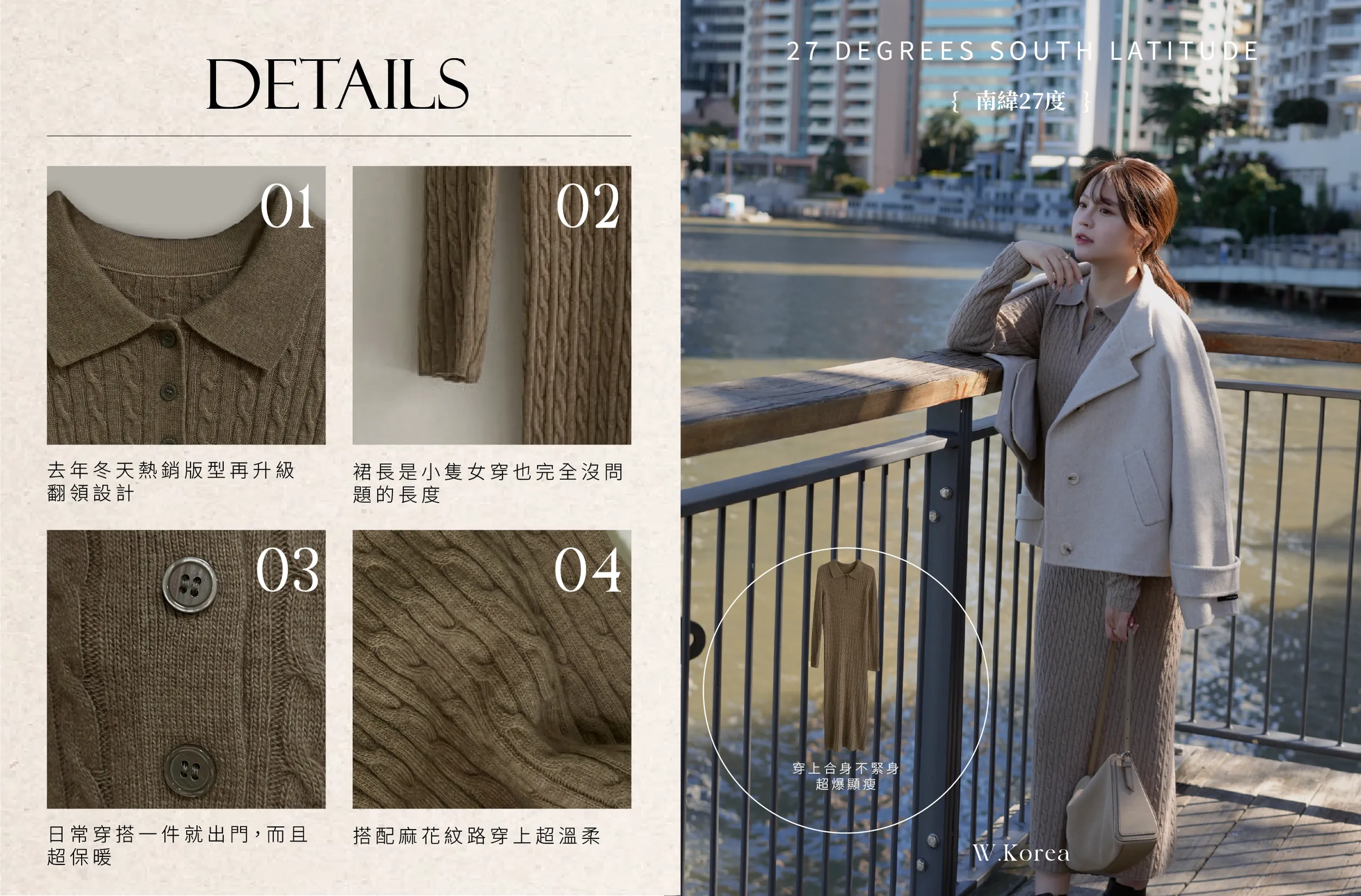 材質:33%羊毛冬季首波超親膚33%羊毛布料搭配麻花紋路穿上超溫柔去年冬天熱銷版型再升級翻領設計穿上合身不緊身 超爆顯瘦裙長是小隻女穿也完全沒問題的長度日常穿搭一件就出門 而且超保暖 身形指南 身高 體重 鞋碼 麻糬媽 160 50 24.5 逸歡 168 48 25 彭彭 165 47 23.5
