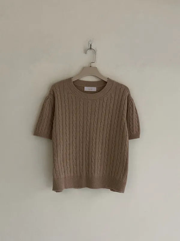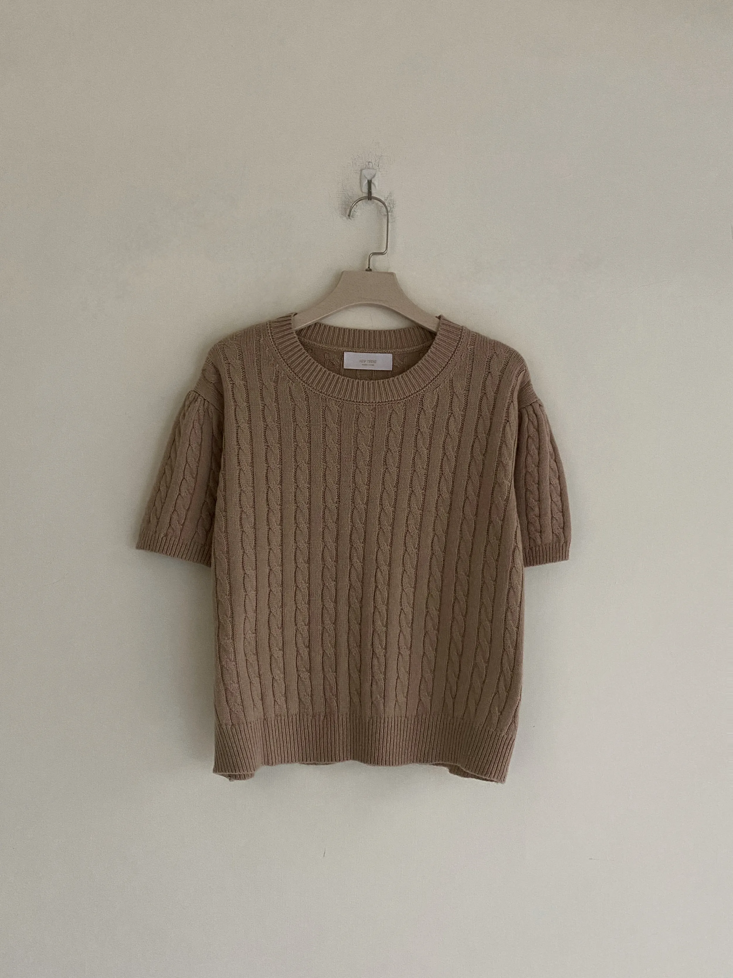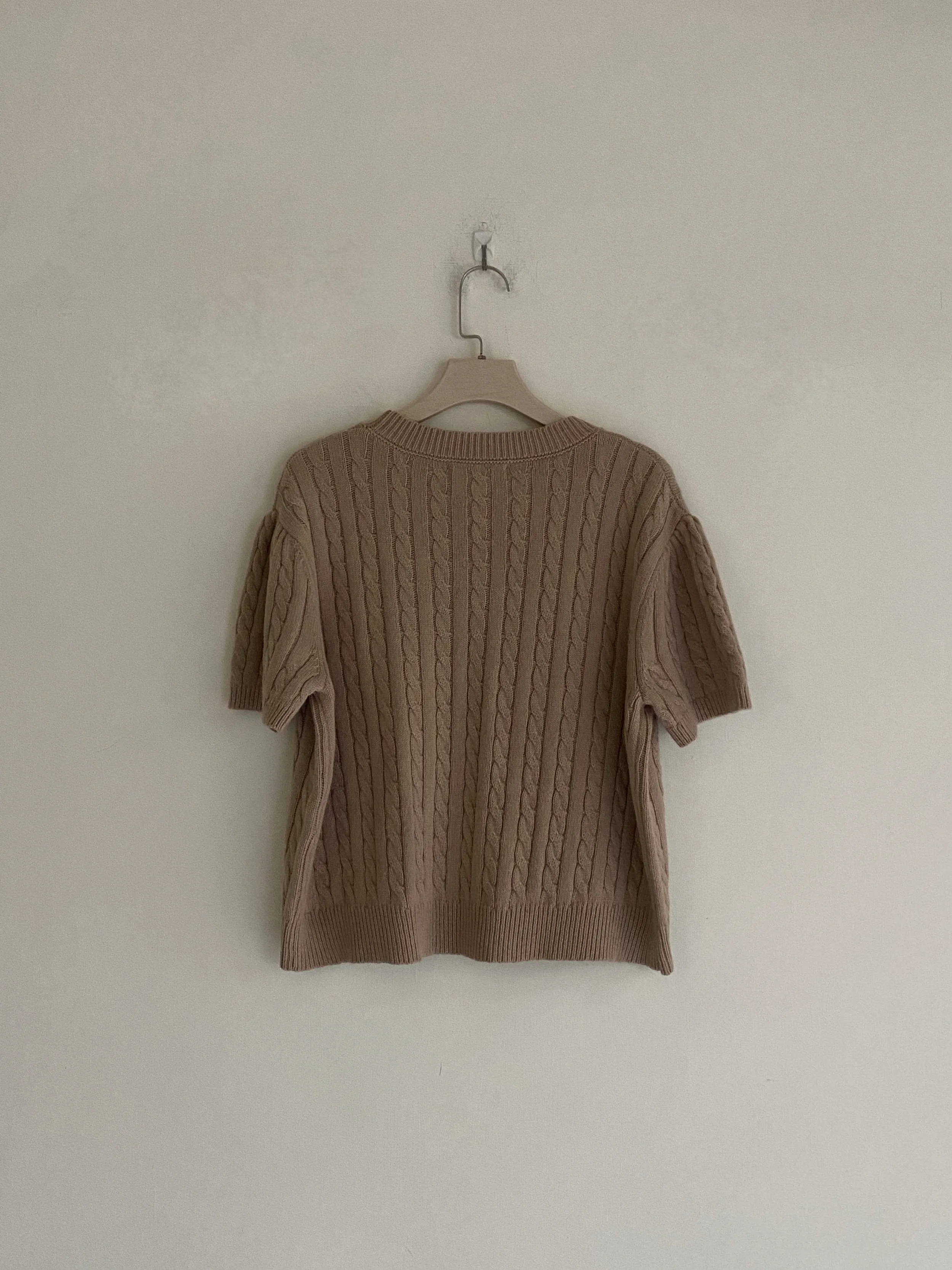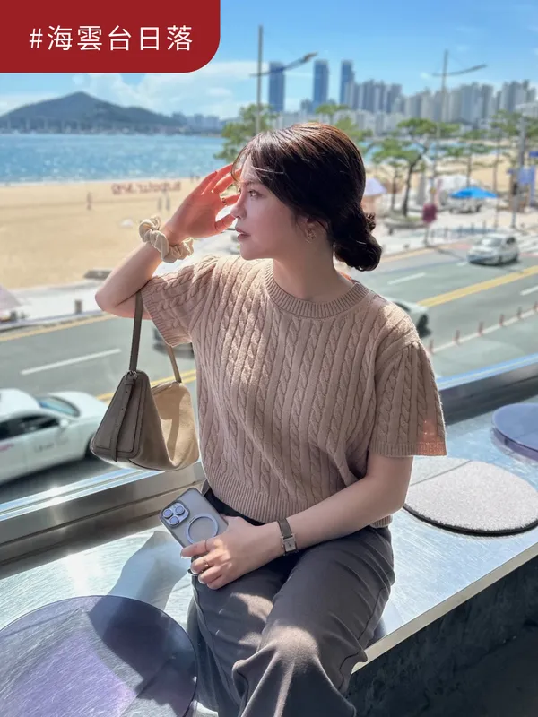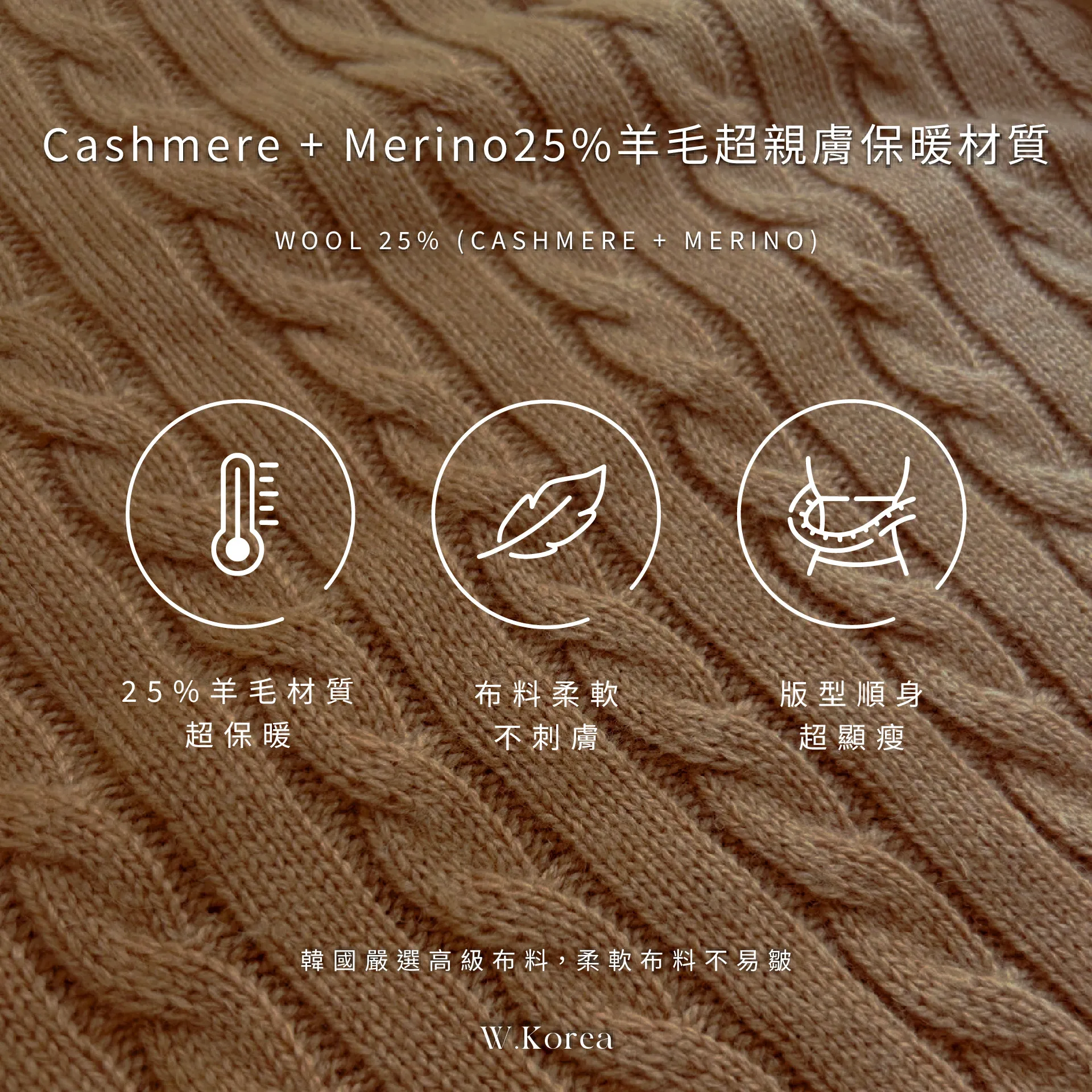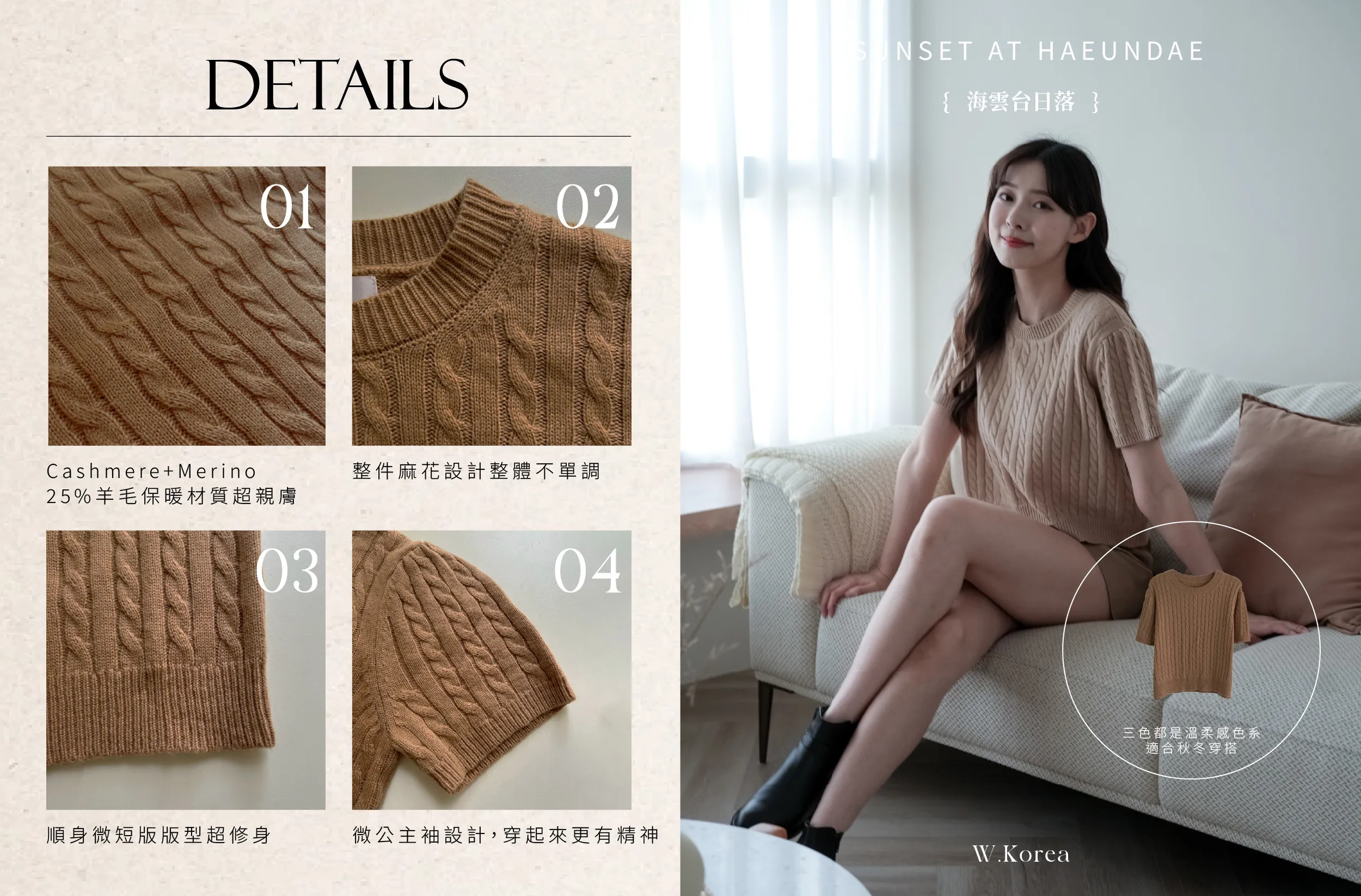 #海雲台日落 Cashmere喀什米爾 25%羊毛麻花編織微公主袖上衣