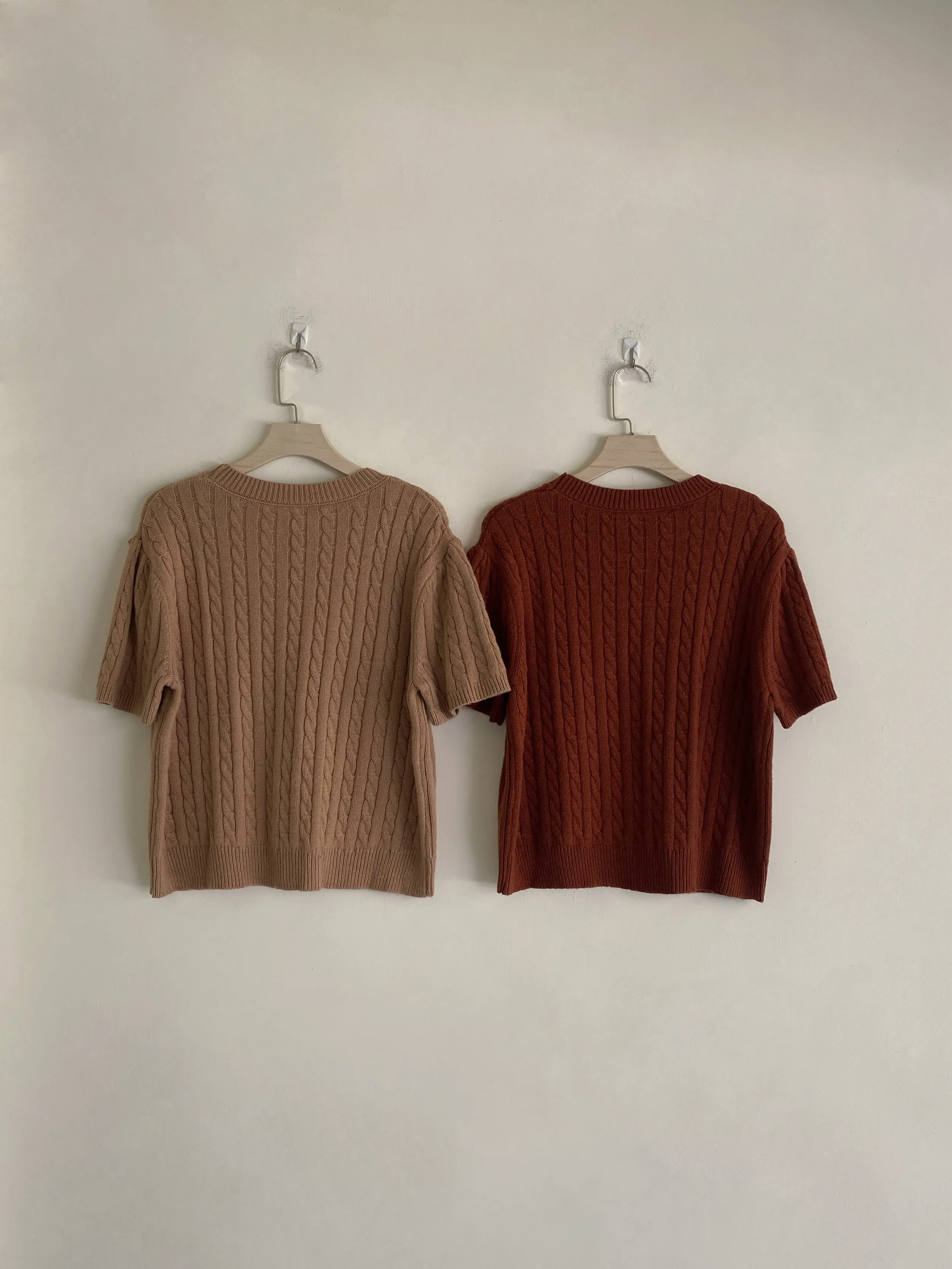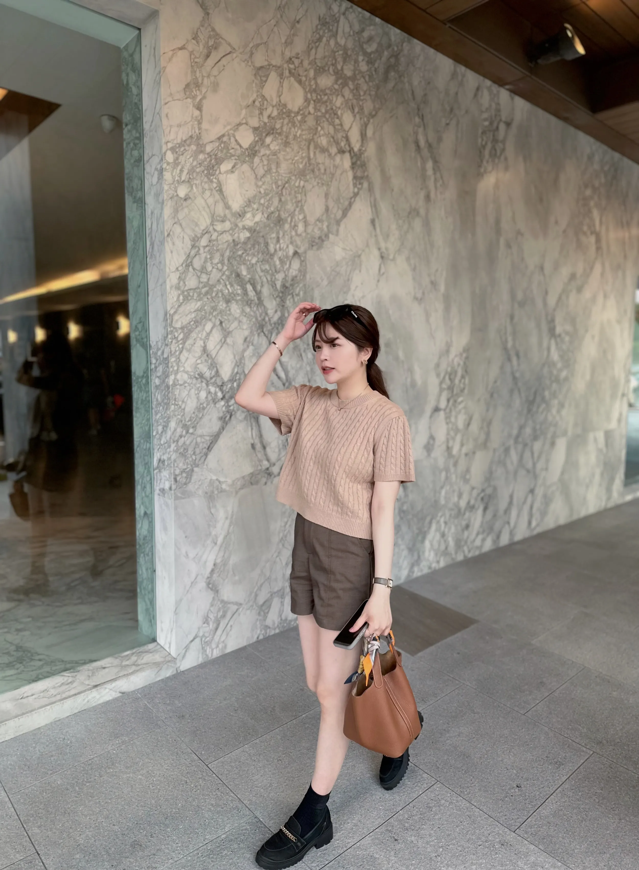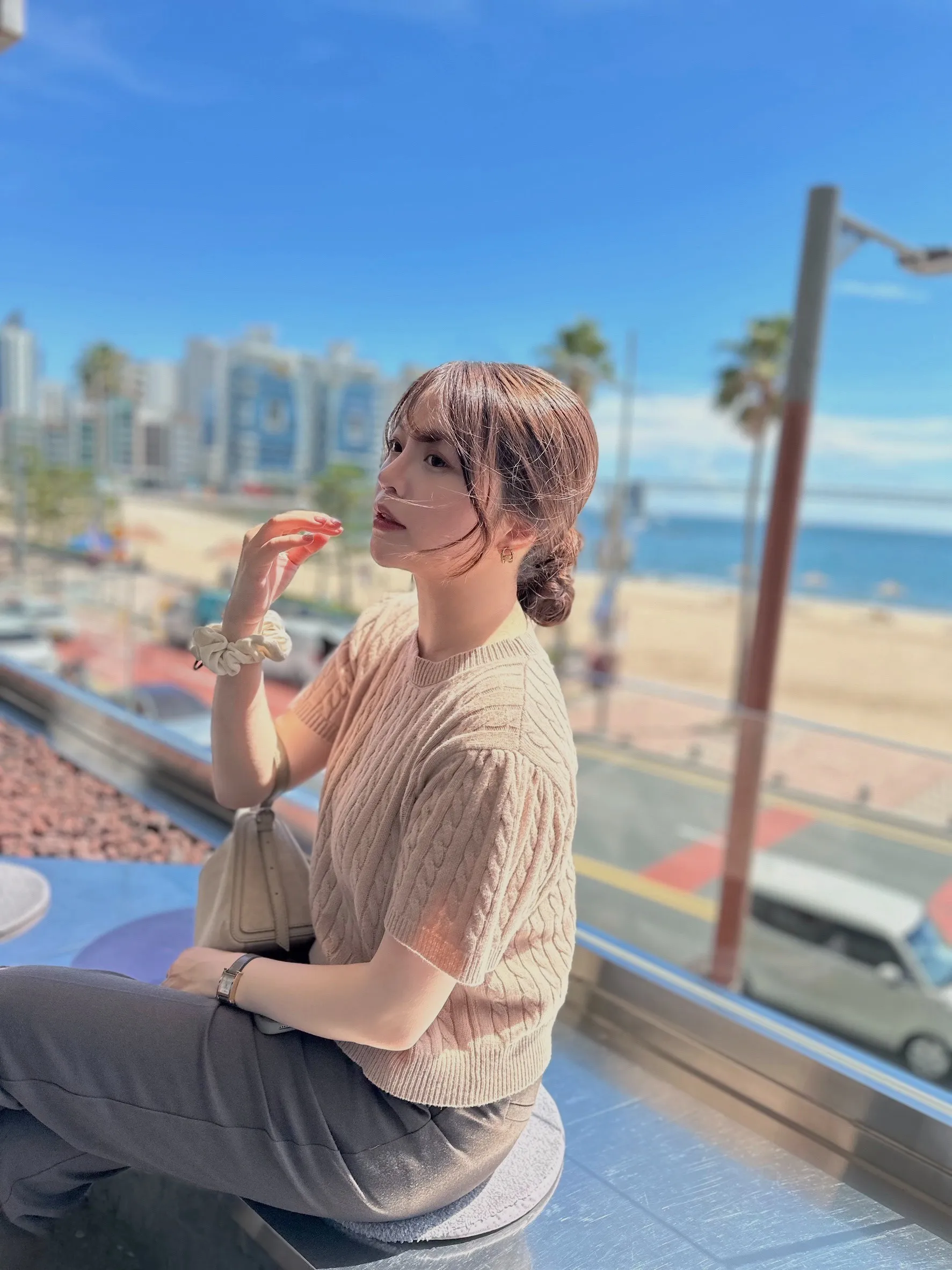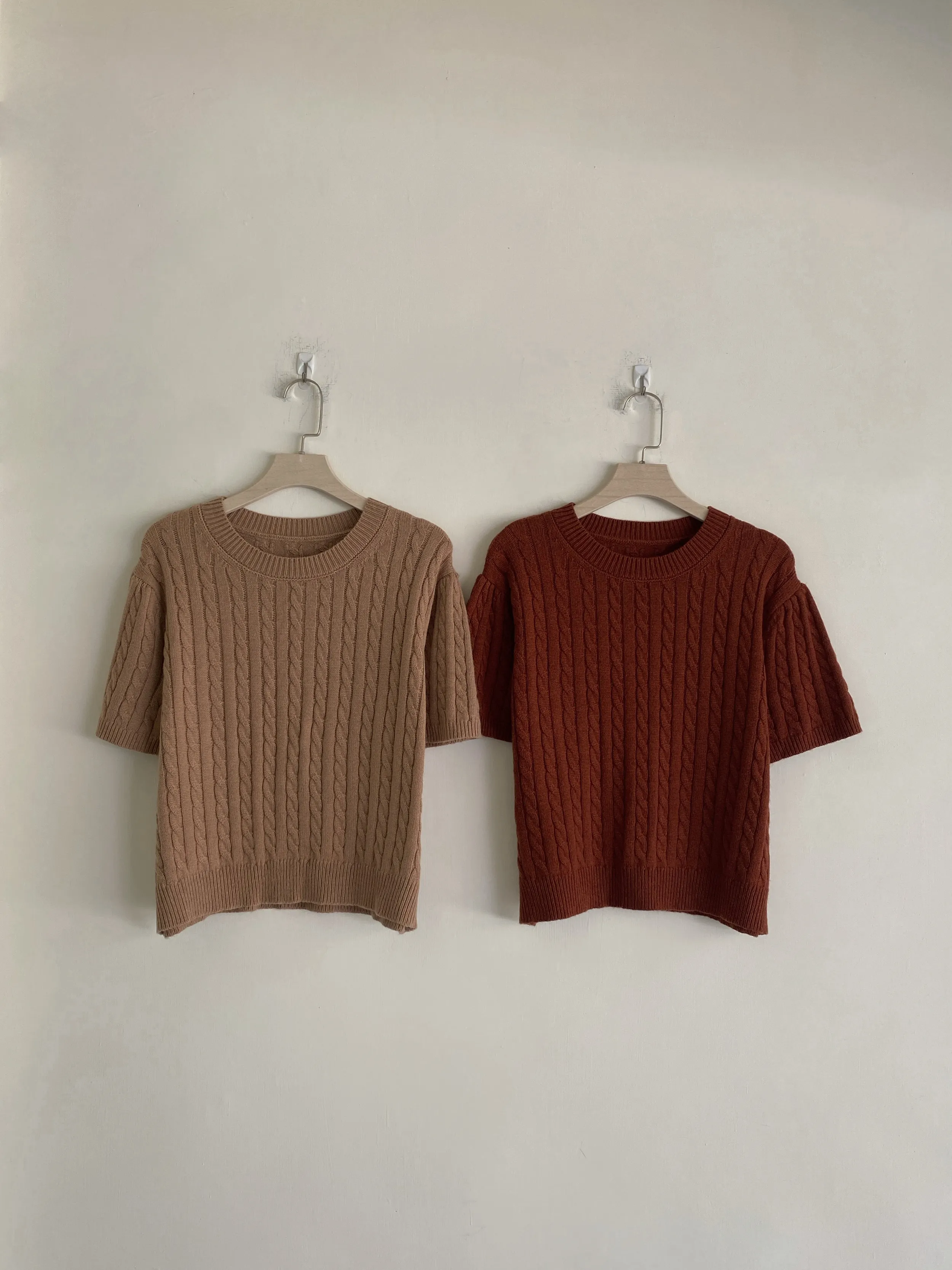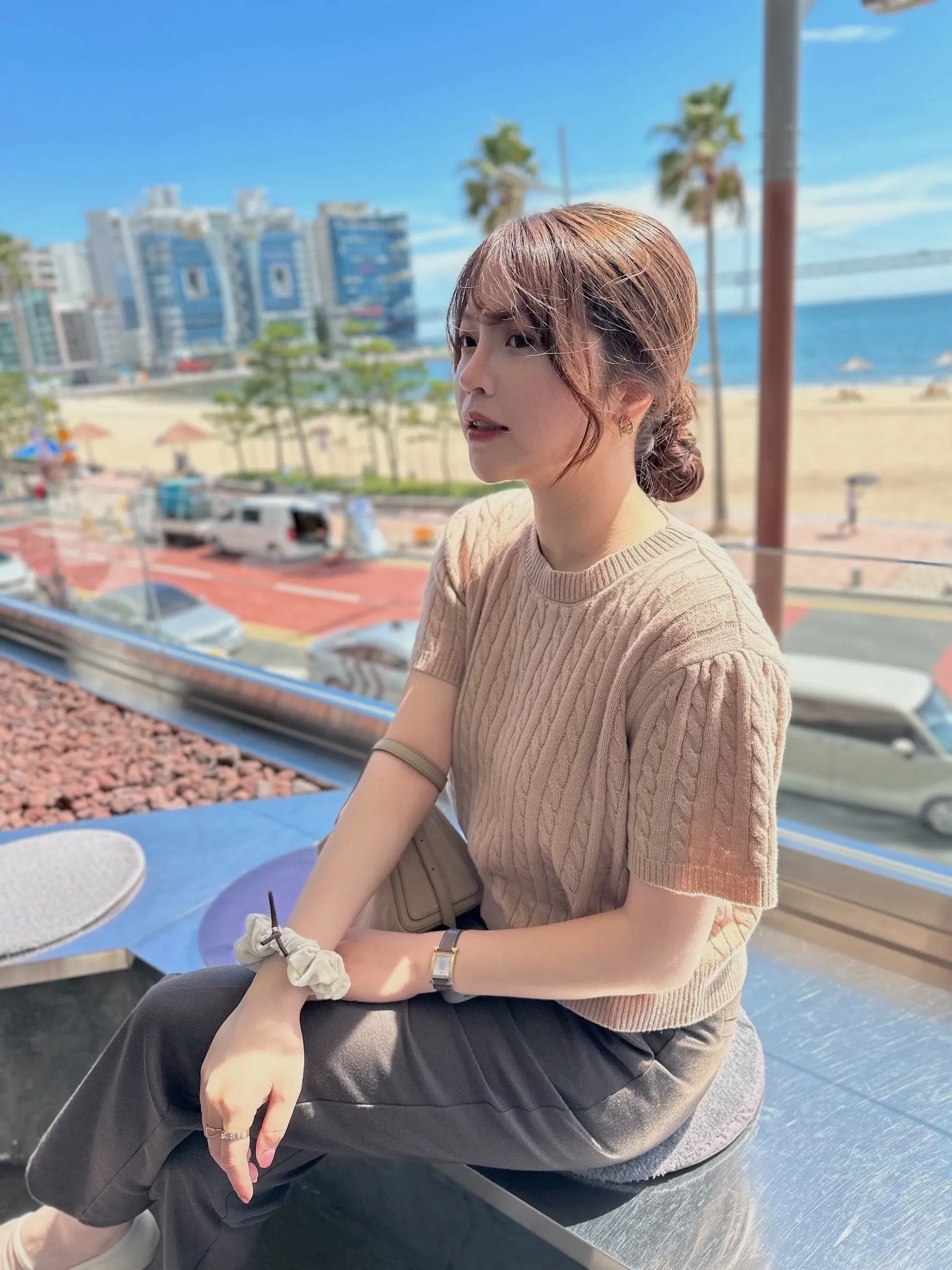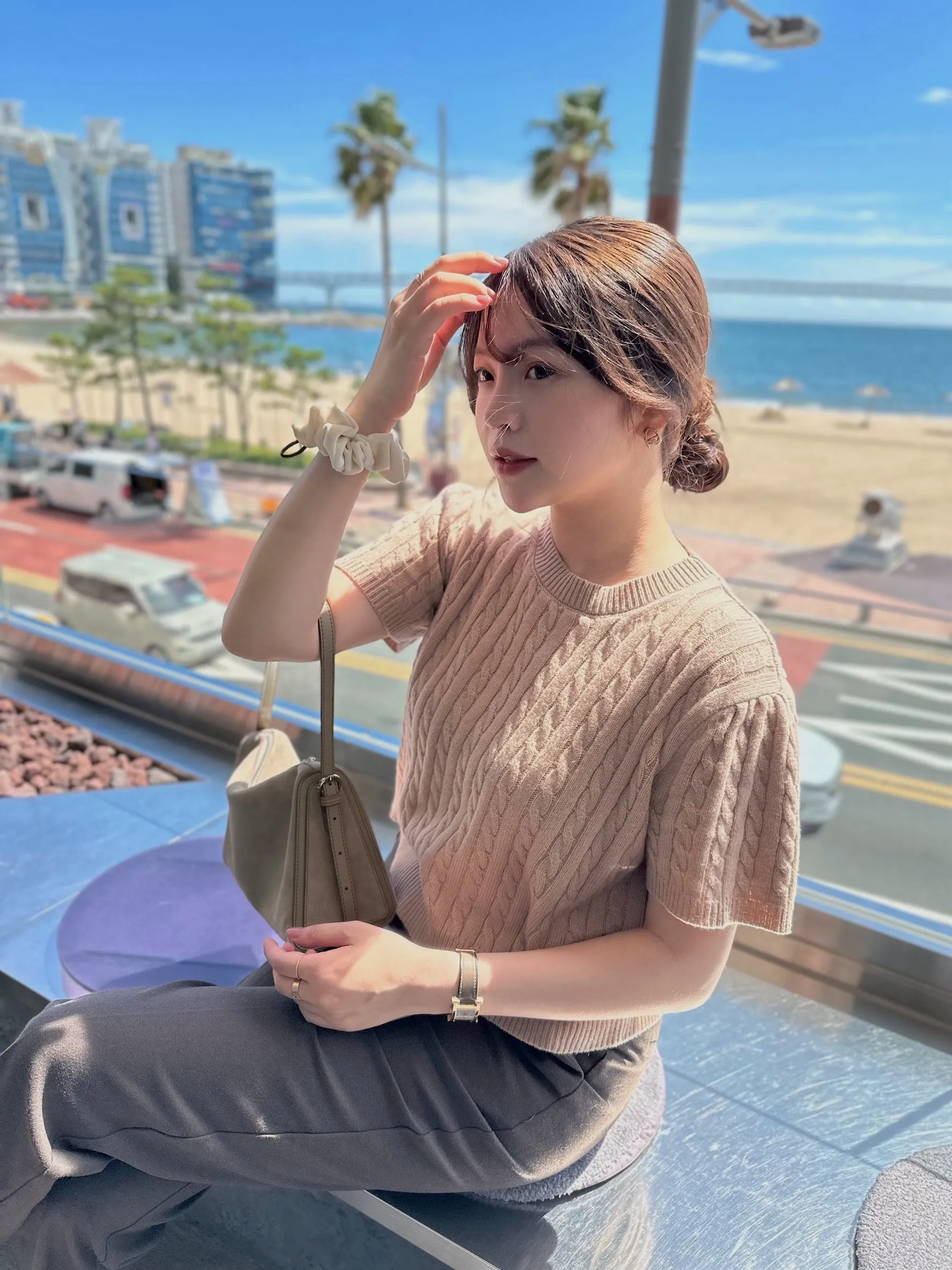#海雲台日落 Cashmere喀什米爾 25%羊毛麻花編織微公主袖上衣