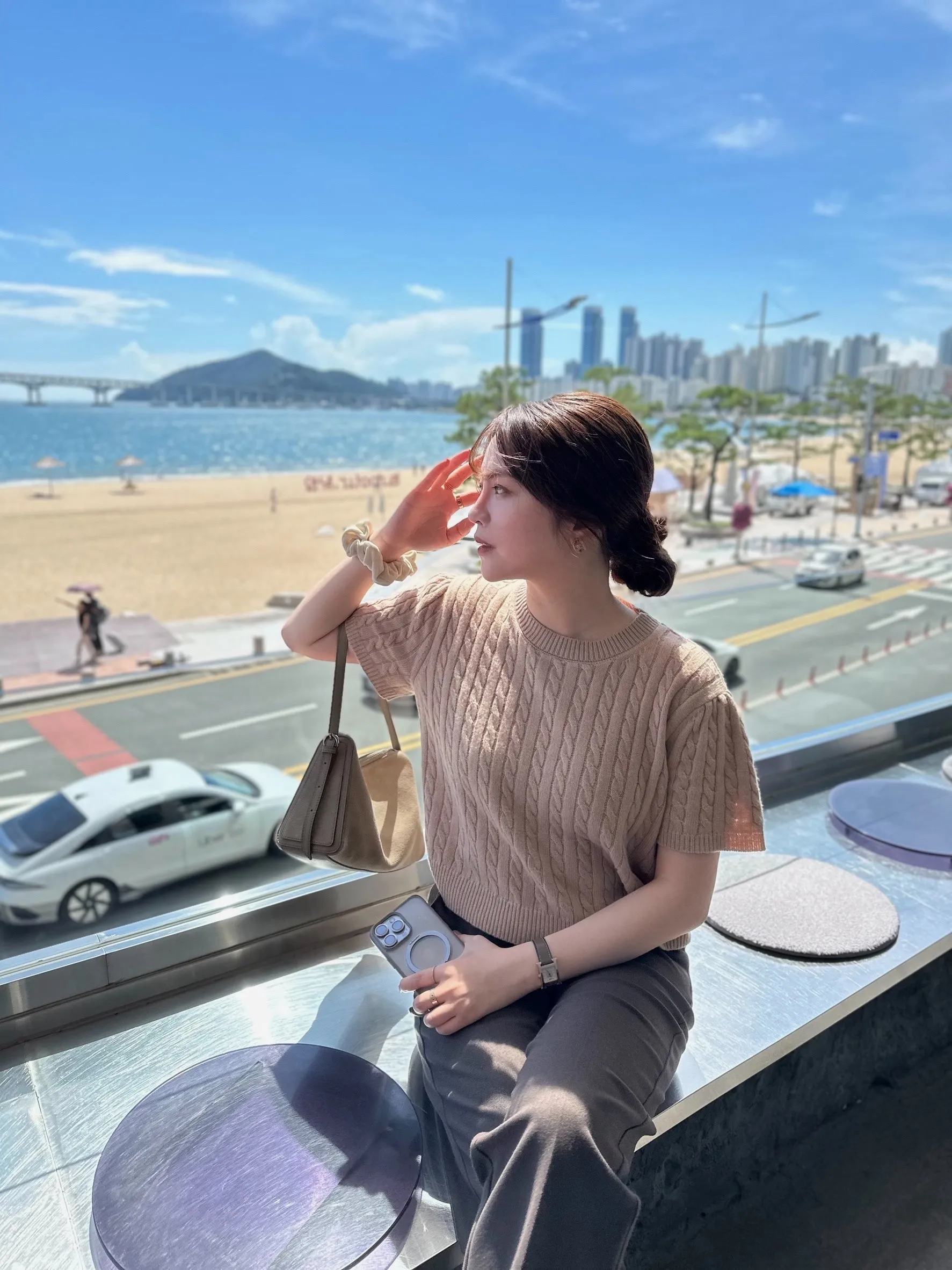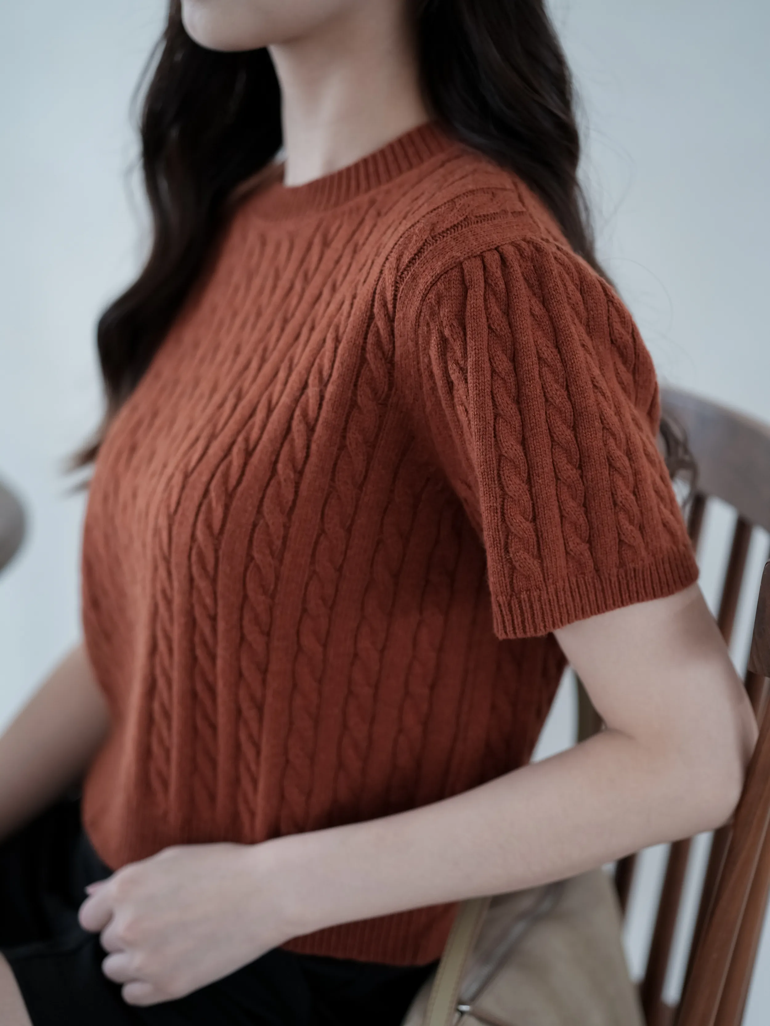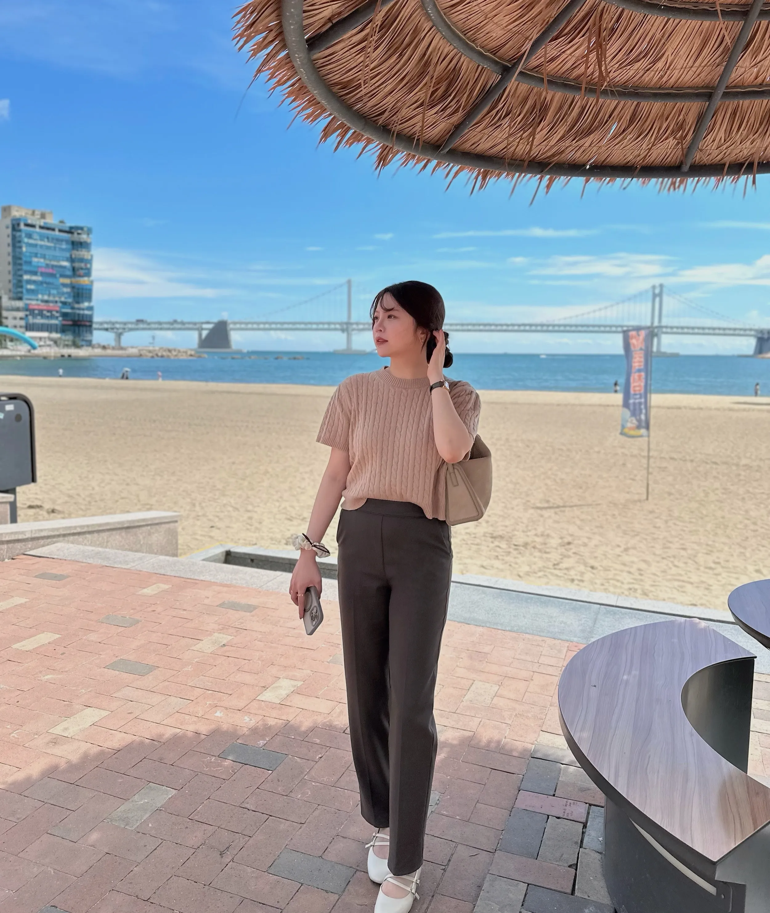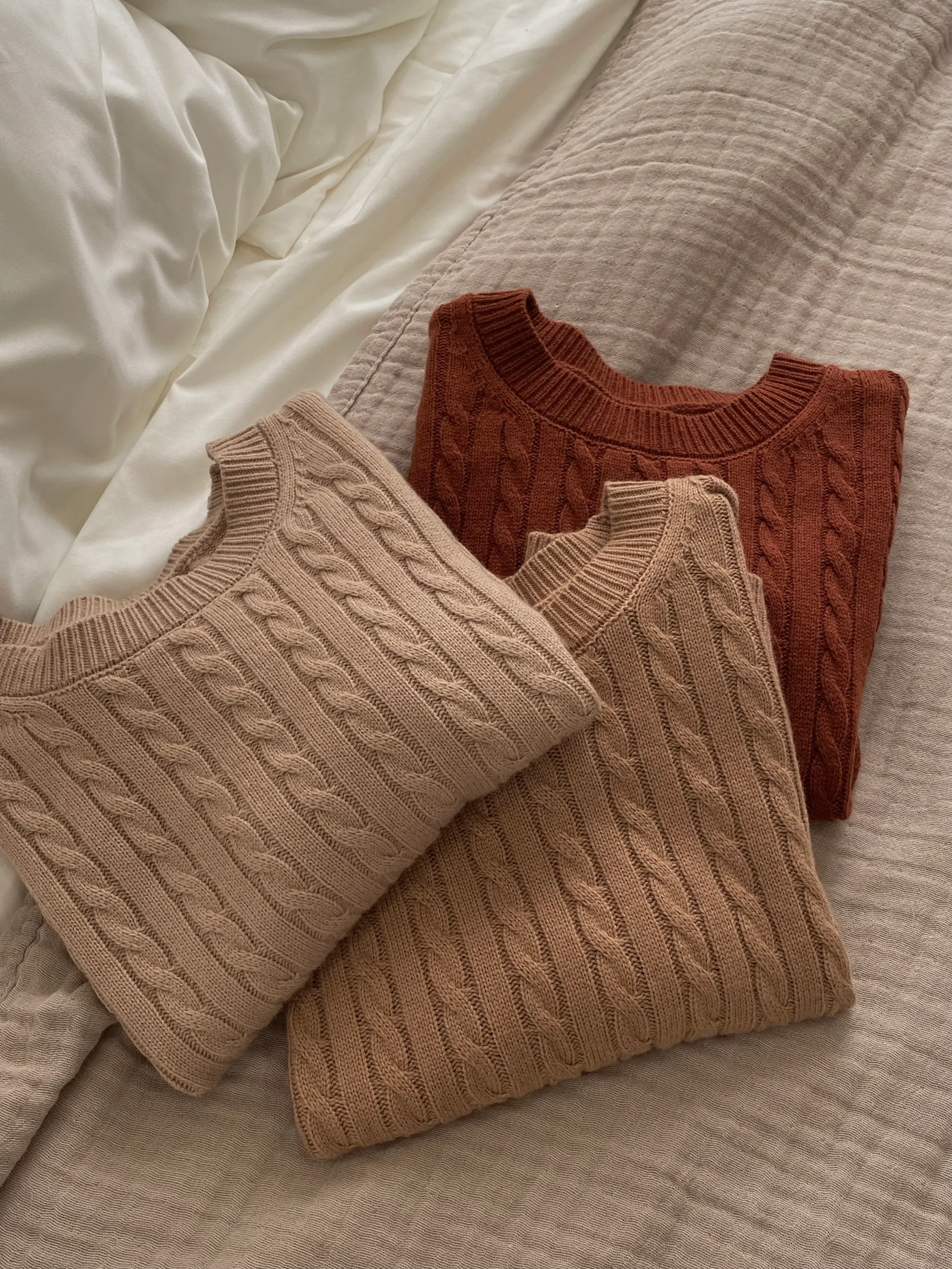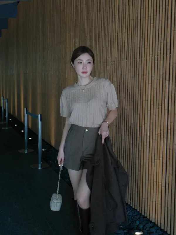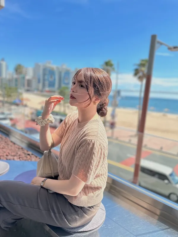 #海雲台日落 Cashmere喀什米爾 25%羊毛麻花編織微公主袖上衣