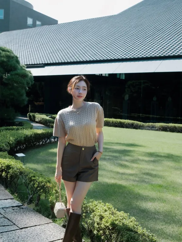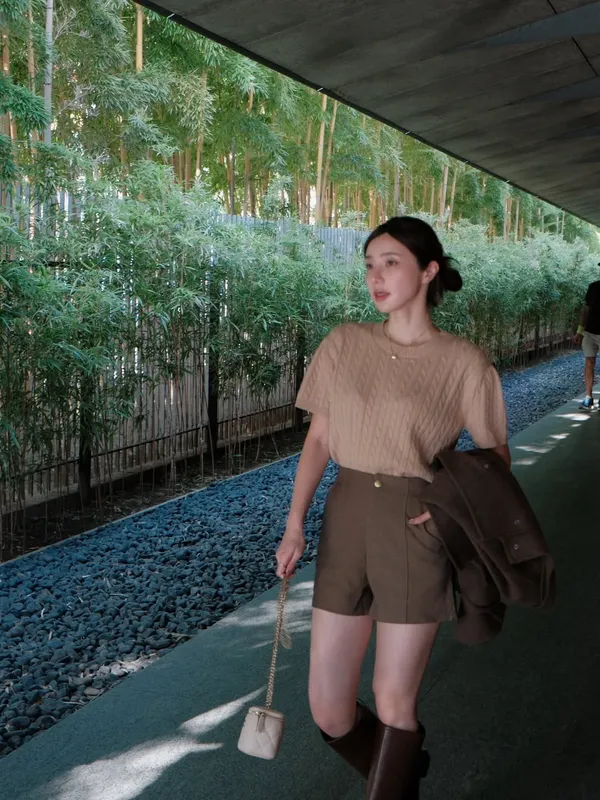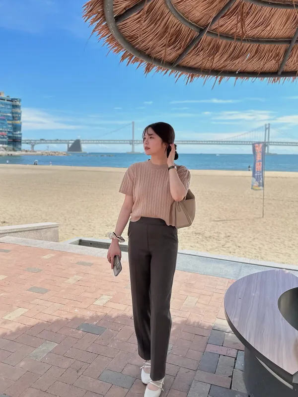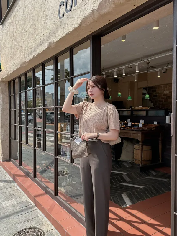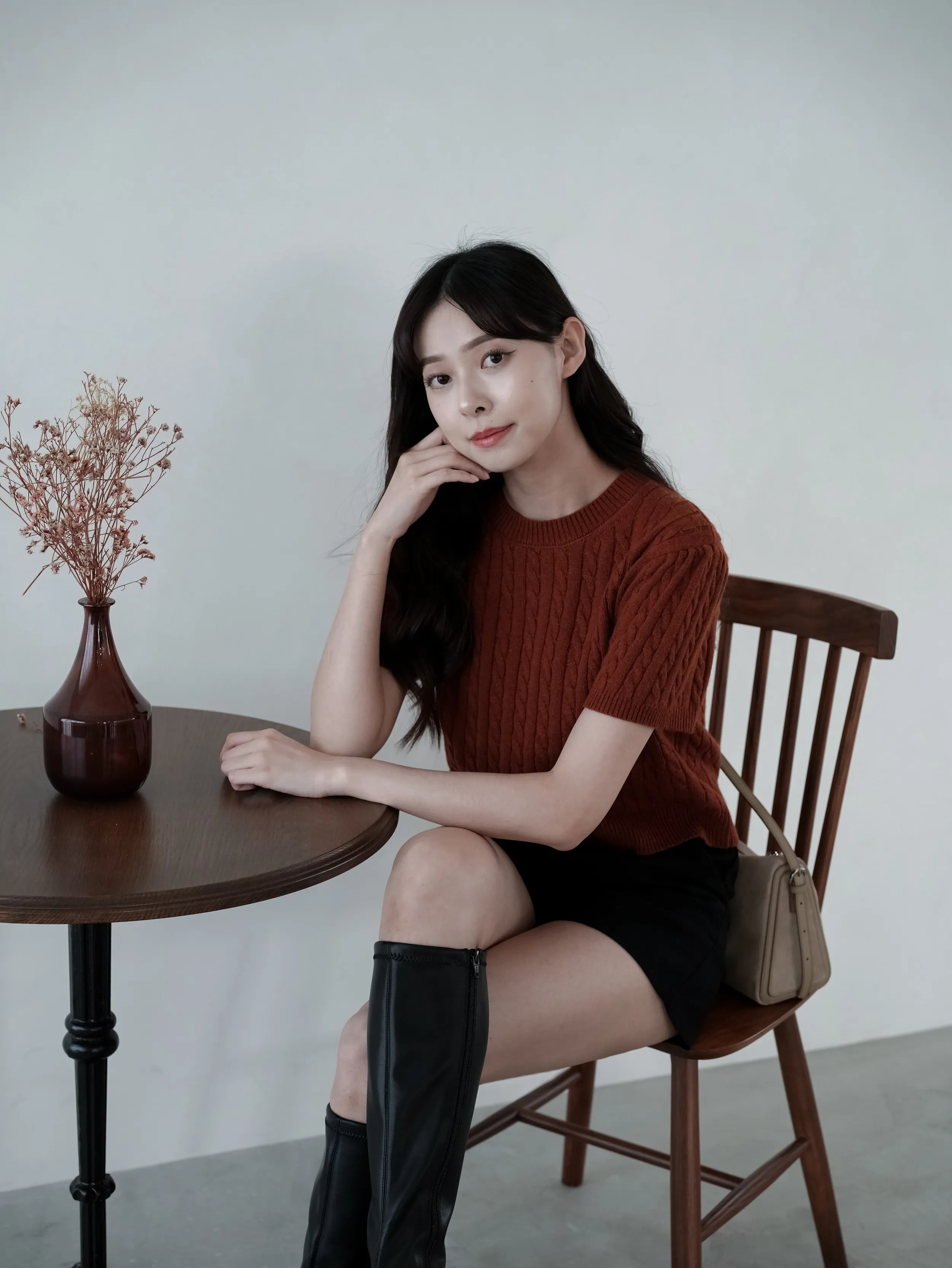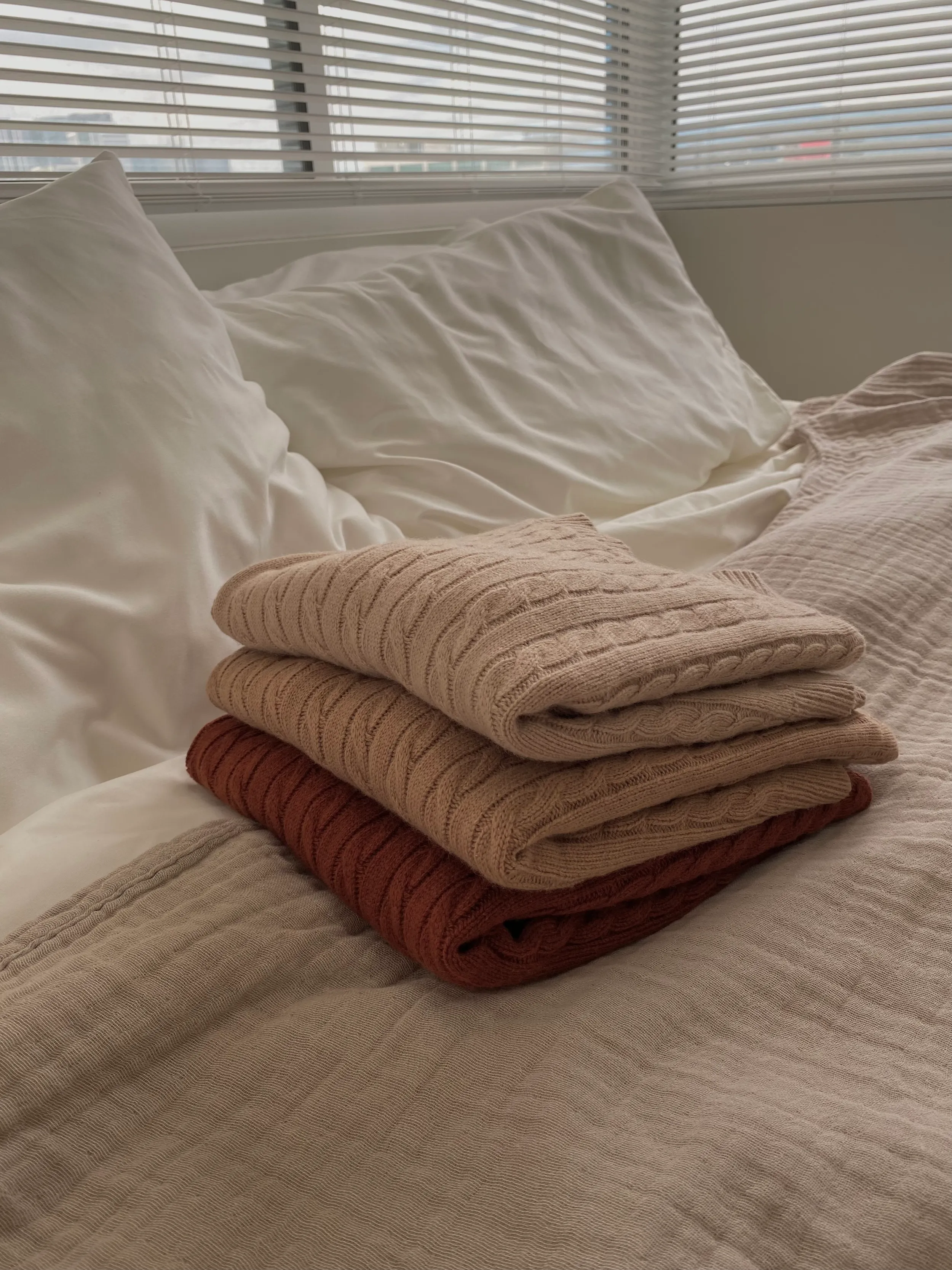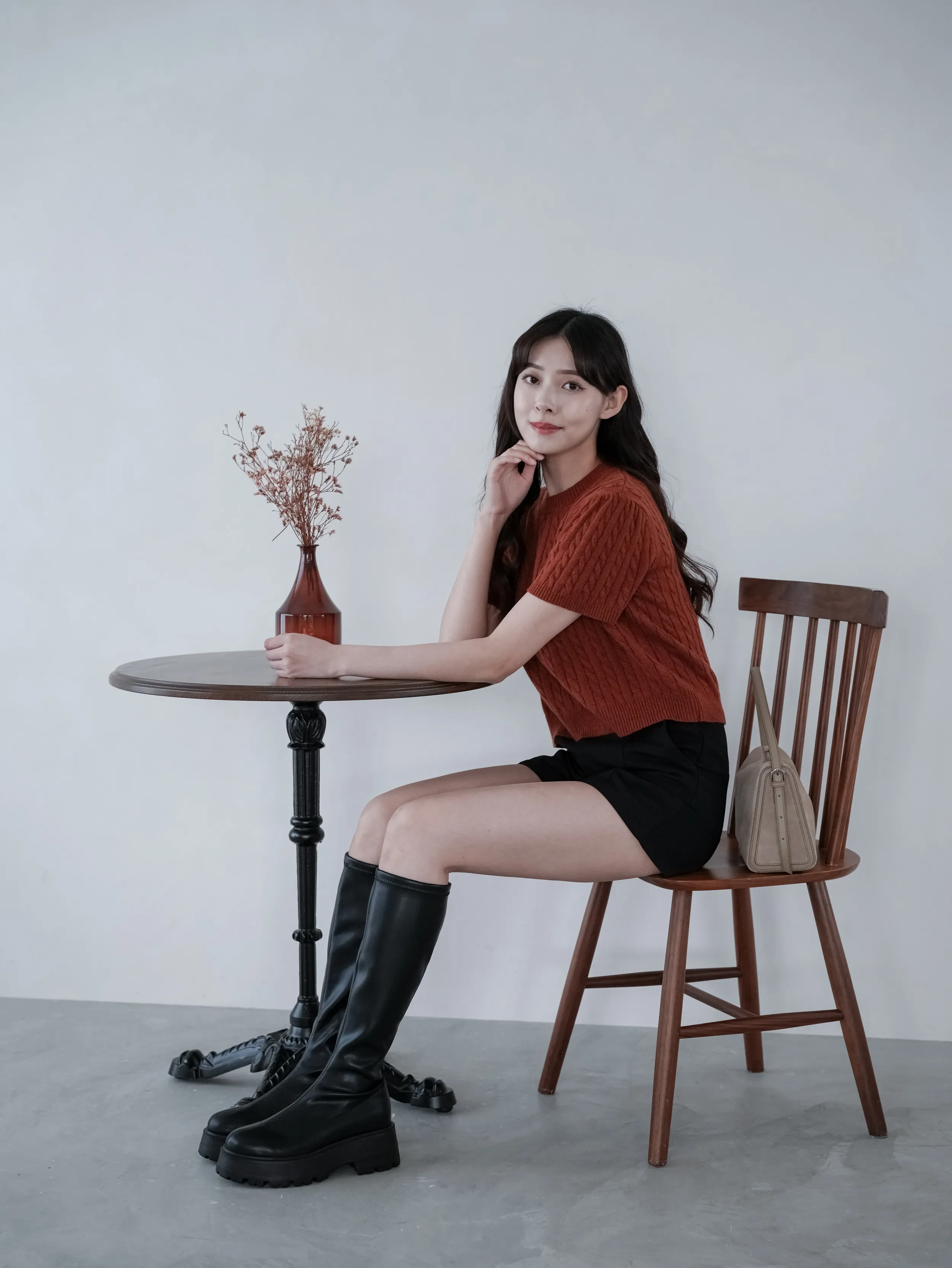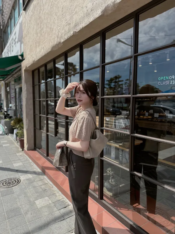 #海雲台日落 Cashmere喀什米爾 25%羊毛麻花編織微公主袖上衣