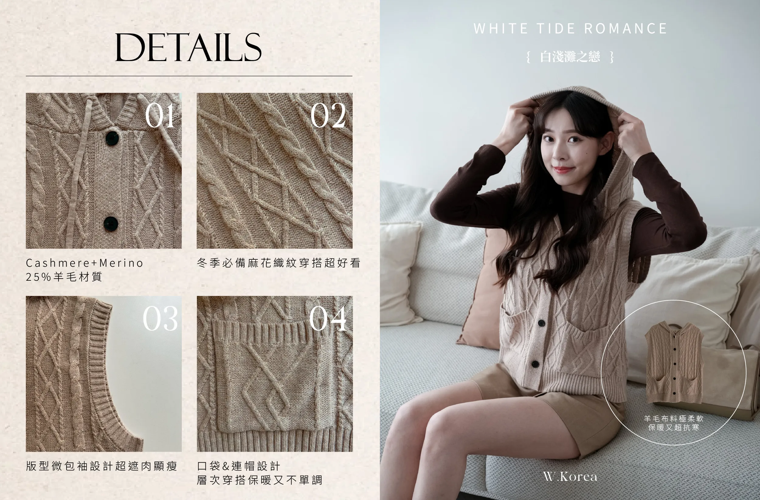材質:Cashmere+Merino25%羊毛-Cashmere+Merino25%羊毛材質-羊毛布料極柔軟 保暖又超抗寒-冬季必備麻花織紋穿搭超好看-版型微包袖設計 超遮肉顯瘦-口袋&連帽設計 層次穿搭保暖又不單調-經典琥珀釦設計質感再加分 身形指南 身高 體重 鞋碼 麻糬媽 160 50 24.5 逸歡 168 48 25 彭彭 165 47 23.5