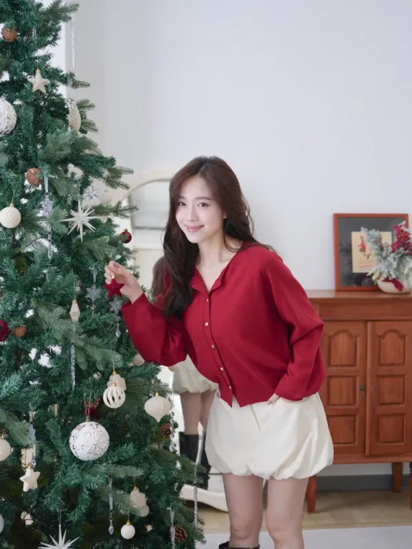 Y01 #熱銷新色限定 60%羊毛金釦圓領澎袖上衣(微瑕疵不退換)